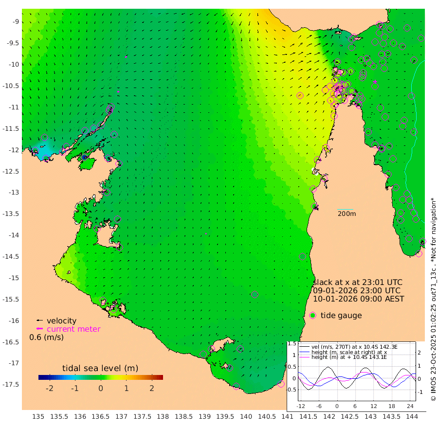 17cm/s -96T +3cm/s rms + 7cm/s -42T. ARA-GOC87 57m 11cm/s 19T +3cm/s rms + 2cm/s -2T. ARA-GOC87 60m 17cm/s -120T +2cm/s rms + 3cm/s 61T. ARA-GOC87 47m -10cm Daru -14cm Bobo Island -7cm Meer Island Barge -10cm Bramble Cay 0cm Unnamed Cay -11cm Pearce Cay -5cm Stephens Island -1cm Merrie England Shoals -1cm Mutacomal Reef -9cm Darnley Island Barge -11cm East Cay -6cm Yorke Island Barge 1cm Rennel Island -7cm Aureed Island 4cm Dungeness Reef -1cm Zagai Island 7cm Yam Island -11cm Dauan Island -11cm Saibai Island -10cm Phipi Reef -14cm Warrior Reef - West 25cm Mabuiag Island Barge 4cm Half Way Island 4cm Coconut Island 9cm Dugong Islet 10cm Poll Island 14cm Kirkcaldie Reef 30cm Suarji Island 7cm Sue Islet 62cm Hawkesbury Island 36cm Alert Patches 29cm Twin Island 52cm Badu Island 28cm St Pauls (Moa Island) 51cm Kubin (Moa Island) 40cm Ince Point 49cm Thursday Island 47cm Nardana Patches 54cm Turtle Head 62cm Round Island 71cm Goods Island 90cm Booby Island 90cm White Rocks Area 101cm Carpentaria 28cm Papou Point 106cm Bampfield Head 67cm Crab Island 79cm Red Wallis Island 54cm Packe Island 12cm Harrington Reef 71cm Herald Camp 4cm Sharp Point 40cm Red Island Point 46cm Possession Island 23cm Alpha Rock 17cm Frederick Point 1cm Wyborn Reef Light 3cm Tetley Island -8cm Triangle Reef 13cm Turtle Head Island 0cm Maclennan Cay -5cm Raine Island -4cm Mcsweeny Reef -6cm Collette Reef -7cm Shadwell Reef -7cm Hannibal Island -11cm Round Point 69cm Vrilya Point -1cm Cape Grenville -6cm Hicks Island -5cm Sir Charles Hardy Island -1cm Harvey Island -3cm Kay Reef -7cm Rocky Island -12cm Chapman Island -8cm Ham Reef -6cm Jubilee Reef -6cm Night Island -8cm Unnamed Reef No. 3 -5cm Morris Island 6cm 1st 3 Mile Opening -3cm Creech Reef -22cm Fife Island -9cm Eden Reef -2cm Stanley Island -8cm Normanby River -34cm Yabooma Island -43cm Hutchison River -35cm Elcho Island -36cm North West Crocodile Island -43cm Cape Wessel -52cm Stevens Island -62cm Guluwuru Island -48cm Hopeful Bay -37cm Auster Point -46cm Two Island Bay -90cm Cadell Strait -186cm Mallison Island -57cm Melville Bay (Gove Harbour) -57cm Truant Island -42cm Cape Arnhem -22cm Cape Grey -25cm Hawk Island -2cm Milner Bay (Groote Eylandt) -2cm Cape Beatrice 17cm West Island 22cm Centre Island -32cm Mornington Island -23cm West Wellesley Islands -38cm Bountiful Island -51cm Albert River Mouth -57cm Sweers Island -59cm Karumba -40cm Nassau River Offshore -24cm Christmas Creek 6cm Archer River 26cm Boyd Point 26cm Weipa (Humbug Point) 36cm Pennefather River 54cm Cullen Point
