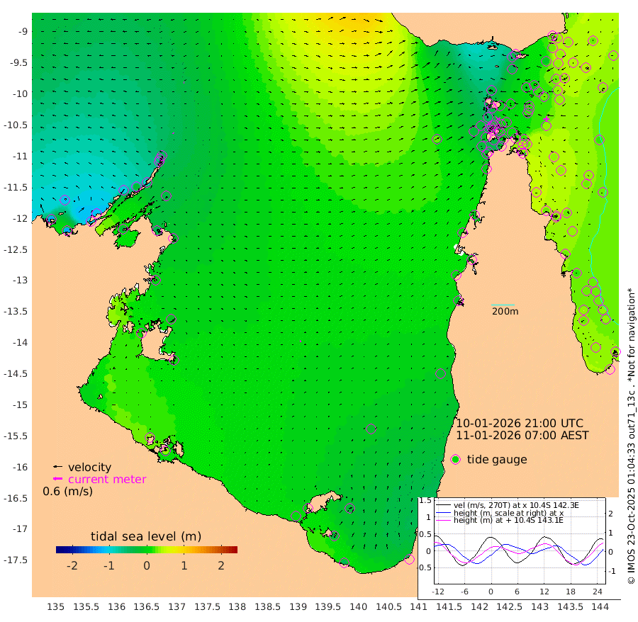 4cm/s -43T +3cm/s rms + 7cm/s -42T. ARA-GOC87 57m 8cm/s 67T +3cm/s rms + 2cm/s -2T. ARA-GOC87 60m 4cm/s -95T +2cm/s rms + 3cm/s 61T. ARA-GOC87 47m 23cm Daru 33cm Bobo Island 32cm Meer Island Barge 30cm Bramble Cay 31cm Unnamed Cay 33cm Pearce Cay 38cm Stephens Island 34cm Merrie England Shoals 23cm Mutacomal Reef 39cm Darnley Island Barge 32cm East Cay 35cm Yorke Island Barge 29cm Rennel Island 37cm Aureed Island 20cm Dungeness Reef 3cm Zagai Island -5cm Yam Island -50cm Dauan Island -35cm Saibai Island -40cm Phipi Reef -11cm Warrior Reef - West -28cm Mabuiag Island Barge 34cm Half Way Island 29cm Coconut Island 31cm Dugong Islet 13cm Poll Island 19cm Kirkcaldie Reef 12cm Suarji Island 16cm Sue Islet -49cm Hawkesbury Island 7cm Alert Patches 7cm Twin Island -43cm Badu Island -1cm St Pauls (Moa Island) -34cm Kubin (Moa Island) -8cm Ince Point -11cm Thursday Island -12cm Nardana Patches -23cm Turtle Head -34cm Round Island -31cm Goods Island -24cm Booby Island -24cm White Rocks Area 25cm Carpentaria 1cm Papou Point -15cm Bampfield Head -22cm Crab Island -26cm Red Wallis Island -32cm Packe Island 41cm Harrington Reef -44cm Herald Camp 0cm Sharp Point -20cm Red Island Point -3cm Possession Island 8cm Alpha Rock 18cm Frederick Point 23cm Wyborn Reef Light 19cm Tetley Island 22cm Triangle Reef 34cm Turtle Head Island 31cm Maclennan Cay 24cm Raine Island 34cm Mcsweeny Reef 33cm Collette Reef 26cm Shadwell Reef 38cm Hannibal Island 29cm Round Point -5cm Vrilya Point 35cm Cape Grenville 29cm Hicks Island 29cm Sir Charles Hardy Island 11cm Harvey Island 35cm Kay Reef 27cm Rocky Island 22cm Chapman Island 26cm Ham Reef 28cm Jubilee Reef 27cm Night Island 29cm Unnamed Reef No. 3 31cm Morris Island 31cm 1st 3 Mile Opening 33cm Creech Reef 26cm Fife Island 35cm Eden Reef 33cm Stanley Island 34cm Normanby River -124cm Yabooma Island -122cm Hutchison River -108cm Elcho Island -112cm North West Crocodile Island -49cm Cape Wessel -100cm Stevens Island -29cm Guluwuru Island -92cm Hopeful Bay -65cm Auster Point -74cm Two Island Bay -105cm Cadell Strait -26cm Mallison Island -39cm Melville Bay (Gove Harbour) -37cm Truant Island -17cm Cape Arnhem -3cm Cape Grey -9cm Hawk Island 8cm Milner Bay (Groote Eylandt) 8cm Cape Beatrice 31cm West Island 35cm Centre Island -1cm Mornington Island 3cm West Wellesley Islands -24cm Bountiful Island -44cm Albert River Mouth -34cm Sweers Island -48cm Karumba -22cm Nassau River Offshore -19cm Christmas Creek -13cm Archer River -5cm Boyd Point -19cm Weipa (Humbug Point) 1cm Pennefather River -15cm Cullen Point