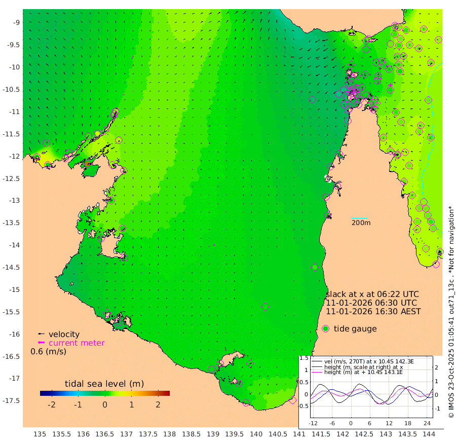 8cm/s 9T +3cm/s rms + 7cm/s -42T. ARA-GOC87 57m 11cm/s -174T +3cm/s rms + 2cm/s -2T. ARA-GOC87 60m 10cm/s -5T +2cm/s rms + 3cm/s 61T. ARA-GOC87 47m 23cm Daru 24cm Bobo Island 26cm Meer Island Barge 28cm Bramble Cay 23cm Unnamed Cay 15cm Pearce Cay 24cm Stephens Island 21cm Merrie England Shoals 21cm Mutacomal Reef 27cm Darnley Island Barge 31cm East Cay 23cm Yorke Island Barge 18cm Rennel Island 20cm Aureed Island 7cm Dungeness Reef 14cm Zagai Island 13cm Yam Island 15cm Dauan Island 23cm Saibai Island 0cm Phipi Reef 23cm Warrior Reef - West -14cm Mabuiag Island Barge 12cm Half Way Island 10cm Coconut Island 11cm Dugong Islet 4cm Poll Island 2cm Kirkcaldie Reef -11cm Suarji Island 8cm Sue Islet -45cm Hawkesbury Island -23cm Alert Patches -14cm Twin Island -45cm Badu Island -15cm St Pauls (Moa Island) -29cm Kubin (Moa Island) -23cm Ince Point -33cm Thursday Island -30cm Nardana Patches -36cm Turtle Head -32cm Round Island -49cm Goods Island -62cm Booby Island -61cm White Rocks Area -51cm Carpentaria -13cm Papou Point -50cm Bampfield Head -53cm Crab Island -51cm Red Wallis Island -30cm Packe Island 6cm Harrington Reef -25cm Herald Camp -2cm Sharp Point -34cm Red Island Point -28cm Possession Island 1cm Alpha Rock -1cm Frederick Point 17cm Wyborn Reef Light 16cm Tetley Island 24cm Triangle Reef -4cm Turtle Head Island 24cm Maclennan Cay 22cm Raine Island 21cm Mcsweeny Reef 24cm Collette Reef 24cm Shadwell Reef 25cm Hannibal Island 27cm Round Point -60cm Vrilya Point 25cm Cape Grenville 27cm Hicks Island 41cm Sir Charles Hardy Island 8cm Harvey Island 29cm Kay Reef 28cm Rocky Island 30cm Chapman Island 31cm Ham Reef 27cm Jubilee Reef 24cm Night Island 29cm Unnamed Reef No. 3 27cm Morris Island 17cm 1st 3 Mile Opening 24cm Creech Reef 36cm Fife Island 31cm Eden Reef 26cm Stanley Island 31cm Normanby River 0cm Yabooma Island 4cm Hutchison River 0cm Elcho Island -2cm North West Crocodile Island 33cm Cape Wessel 15cm Stevens Island 53cm Guluwuru Island 17cm Hopeful Bay 13cm Auster Point 23cm Two Island Bay 32cm Cadell Strait 179cm Mallison Island 40cm Melville Bay (Gove Harbour) 43cm Truant Island 32cm Cape Arnhem 11cm Cape Grey 11cm Hawk Island -9cm Milner Bay (Groote Eylandt) -7cm Cape Beatrice -20cm West Island -25cm Centre Island 9cm Mornington Island 6cm West Wellesley Islands 13cm Bountiful Island 6cm Albert River Mouth -8cm Sweers Island 6cm Karumba 15cm Nassau River Offshore 16cm Christmas Creek -9cm Archer River -12cm Boyd Point -13cm Weipa (Humbug Point) -45cm Pennefather River -32cm Cullen Point