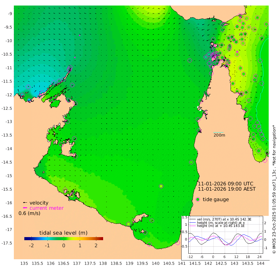 16cm/s -52T +3cm/s rms + 7cm/s -42T. ARA-GOC87 57m 5cm/s 164T +3cm/s rms + 2cm/s -2T. ARA-GOC87 60m 17cm/s -60T +2cm/s rms + 3cm/s 61T. ARA-GOC87 47m 19cm Daru 23cm Bobo Island 14cm Meer Island Barge 19cm Bramble Cay 21cm Unnamed Cay 17cm Pearce Cay 24cm Stephens Island 25cm Merrie England Shoals 24cm Mutacomal Reef 23cm Darnley Island Barge 20cm East Cay 21cm Yorke Island Barge 19cm Rennel Island 22cm Aureed Island 11cm Dungeness Reef 0cm Zagai Island 9cm Yam Island -32cm Dauan Island -21cm Saibai Island -27cm Phipi Reef 1cm Warrior Reef - West -34cm Mabuiag Island Barge 25cm Half Way Island 12cm Coconut Island 23cm Dugong Islet 8cm Poll Island 16cm Kirkcaldie Reef -10cm Suarji Island 8cm Sue Islet -52cm Hawkesbury Island -17cm Alert Patches -5cm Twin Island -67cm Badu Island -11cm St Pauls (Moa Island) -35cm Kubin (Moa Island) -21cm Ince Point -28cm Thursday Island -28cm Nardana Patches -43cm Turtle Head -40cm Round Island -59cm Goods Island -63cm Booby Island -61cm White Rocks Area -32cm Carpentaria -7cm Papou Point -64cm Bampfield Head -48cm Crab Island -48cm Red Wallis Island -31cm Packe Island 24cm Harrington Reef -29cm Herald Camp 5cm Sharp Point -29cm Red Island Point -20cm Possession Island 4cm Alpha Rock 7cm Frederick Point 15cm Wyborn Reef Light 13cm Tetley Island 11cm Triangle Reef 8cm Turtle Head Island 16cm Maclennan Cay 4cm Raine Island 18cm Mcsweeny Reef 17cm Collette Reef 10cm Shadwell Reef 21cm Hannibal Island 19cm Round Point -38cm Vrilya Point 24cm Cape Grenville 18cm Hicks Island 20cm Sir Charles Hardy Island 8cm Harvey Island 19cm Kay Reef 11cm Rocky Island 7cm Chapman Island 11cm Ham Reef 9cm Jubilee Reef 15cm Night Island 12cm Unnamed Reef No. 3 12cm Morris Island 0cm 1st 3 Mile Opening 11cm Creech Reef 15cm Fife Island 13cm Eden Reef 15cm Stanley Island 22cm Normanby River -96cm Yabooma Island -114cm Hutchison River -96cm Elcho Island -87cm North West Crocodile Island -47cm Cape Wessel -82cm Stevens Island -44cm Guluwuru Island -71cm Hopeful Bay -67cm Auster Point -51cm Two Island Bay -80cm Cadell Strait 13cm Mallison Island -47cm Melville Bay (Gove Harbour) -50cm Truant Island -30cm Cape Arnhem -25cm Cape Grey -10cm Hawk Island 1cm Milner Bay (Groote Eylandt) 9cm Cape Beatrice 33cm West Island 35cm Centre Island 36cm Mornington Island 31cm West Wellesley Islands 20cm Bountiful Island 14cm Albert River Mouth 8cm Sweers Island 24cm Karumba 32cm Nassau River Offshore 21cm Christmas Creek -11cm Archer River -16cm Boyd Point -24cm Weipa (Humbug Point) -26cm Pennefather River -23cm Cullen Point