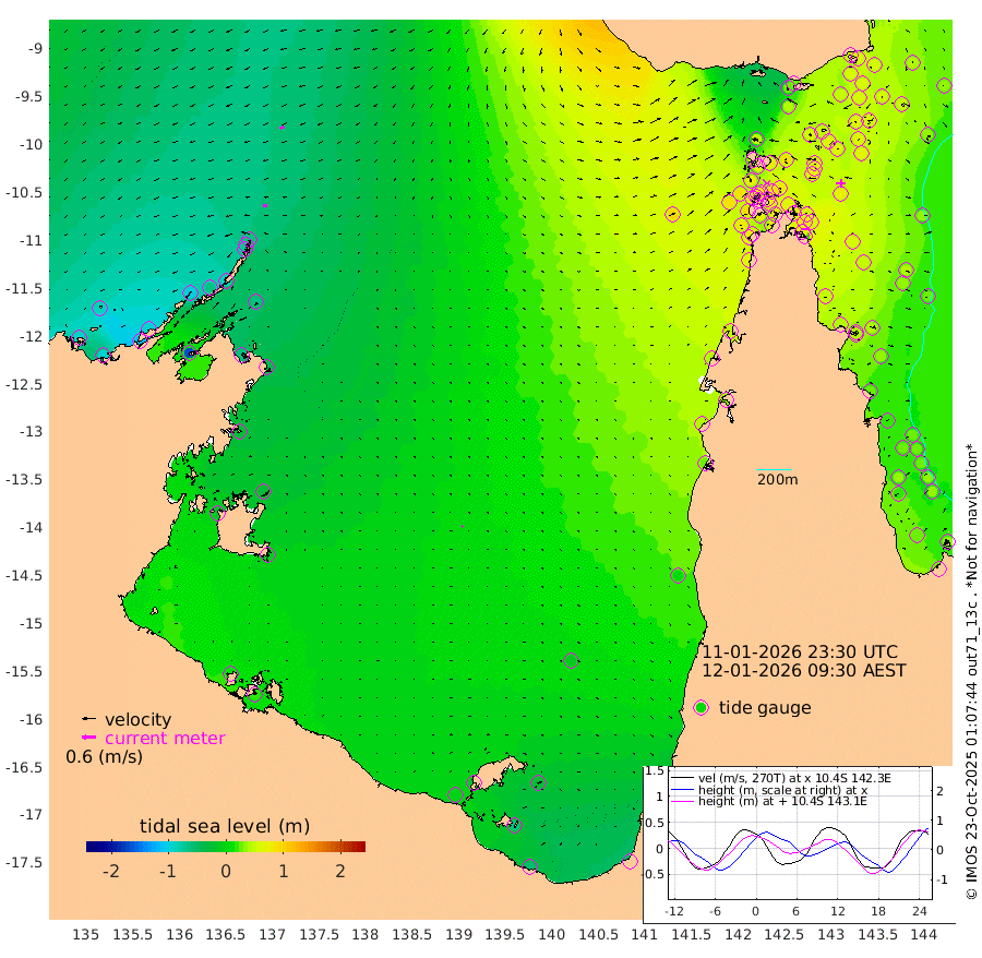 16cm/s -97T +3cm/s rms + 7cm/s -42T. ARA-GOC87 57m 6cm/s 126T +3cm/s rms + 2cm/s -2T. ARA-GOC87 60m 19cm/s -112T +2cm/s rms + 3cm/s 61T. ARA-GOC87 47m 54cm Daru 54cm Bobo Island 33cm Meer Island Barge 38cm Bramble Cay 55cm Unnamed Cay 58cm Pearce Cay 54cm Stephens Island 53cm Merrie England Shoals 58cm Mutacomal Reef 48cm Darnley Island Barge 34cm East Cay 54cm Yorke Island Barge 62cm Rennel Island 61cm Aureed Island 67cm Dungeness Reef 52cm Zagai Island 58cm Yam Island 29cm Dauan Island 27cm Saibai Island 39cm Phipi Reef 46cm Warrior Reef - West 50cm Mabuiag Island Barge 65cm Half Way Island 66cm Coconut Island 73cm Dugong Islet 67cm Poll Island 72cm Kirkcaldie Reef 86cm Suarji Island 62cm Sue Islet 68cm Hawkesbury Island 84cm Alert Patches 80cm Twin Island 63cm Badu Island 76cm St Pauls (Moa Island) 67cm Kubin (Moa Island) 76cm Ince Point 78cm Thursday Island 77cm Nardana Patches 76cm Turtle Head 67cm Round Island 78cm Goods Island 85cm Booby Island 89cm White Rocks Area 92cm Carpentaria 69cm Papou Point 94cm Bampfield Head 63cm Crab Island 79cm Red Wallis Island 70cm Packe Island 82cm Harrington Reef 70cm Herald Camp 18cm Sharp Point 66cm Red Island Point 77cm Possession Island 65cm Alpha Rock 75cm Frederick Point 59cm Wyborn Reef Light 59cm Tetley Island 32cm Triangle Reef 75cm Turtle Head Island 41cm Maclennan Cay 24cm Raine Island 53cm Mcsweeny Reef 46cm Collette Reef 30cm Shadwell Reef 48cm Hannibal Island 39cm Round Point 64cm Vrilya Point 43cm Cape Grenville 38cm Hicks Island 39cm Sir Charles Hardy Island 13cm Harvey Island 35cm Kay Reef 28cm Rocky Island 22cm Chapman Island 24cm Ham Reef 27cm Jubilee Reef 27cm Night Island 26cm Unnamed Reef No. 3 31cm Morris Island 36cm 1st 3 Mile Opening 33cm Creech Reef 19cm Fife Island 29cm Eden Reef 32cm Stanley Island 32cm Normanby River -90cm Yabooma Island -97cm Hutchison River -91cm Elcho Island -89cm North West Crocodile Island -65cm Cape Wessel -98cm Stevens Island -65cm Guluwuru Island -93cm Hopeful Bay -68cm Auster Point -80cm Two Island Bay -114cm Cadell Strait -166cm Mallison Island -65cm Melville Bay (Gove Harbour) -65cm Truant Island -44cm Cape Arnhem -25cm Cape Grey -29cm Hawk Island -16cm Milner Bay (Groote Eylandt) -10cm Cape Beatrice 11cm West Island 15cm Centre Island -16cm Mornington Island -6cm West Wellesley Islands -26cm Bountiful Island -58cm Albert River Mouth -65cm Sweers Island -57cm Karumba -12cm Nassau River Offshore 7cm Christmas Creek 24cm Archer River 39cm Boyd Point 35cm Weipa (Humbug Point) 40cm Pennefather River 51cm Cullen Point