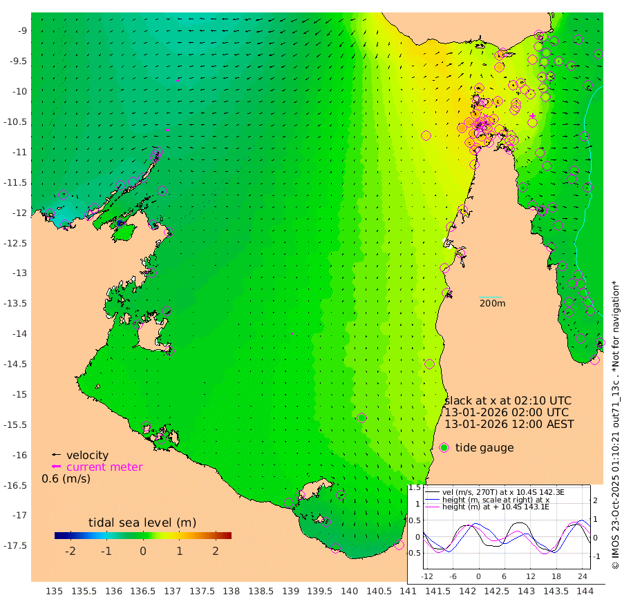21cm/s -97T +3cm/s rms + 7cm/s -42T. ARA-GOC87 57m 10cm/s -175T +3cm/s rms + 2cm/s -2T. ARA-GOC87 60m 23cm/s -106T +2cm/s rms + 3cm/s 61T. ARA-GOC87 47m 44cm Daru 32cm Bobo Island 3cm Meer Island Barge 5cm Bramble Cay 28cm Unnamed Cay 33cm Pearce Cay 23cm Stephens Island 16cm Merrie England Shoals 39cm Mutacomal Reef 16cm Darnley Island Barge 2cm East Cay 32cm Yorke Island Barge 43cm Rennel Island 39cm Aureed Island 65cm Dungeness Reef 77cm Zagai Island 86cm Yam Island 112cm Dauan Island 93cm Saibai Island 108cm Phipi Reef 86cm Warrior Reef - West 104cm Mabuiag Island Barge 41cm Half Way Island 54cm Coconut Island 57cm Dugong Islet 74cm Poll Island 75cm Kirkcaldie Reef 109cm Suarji Island 70cm Sue Islet 120cm Hawkesbury Island 105cm Alert Patches 97cm Twin Island 122cm Badu Island 108cm St Pauls (Moa Island) 114cm Kubin (Moa Island) 108cm Ince Point 112cm Thursday Island 112cm Nardana Patches 120cm Turtle Head 110cm Round Island 122cm Goods Island 122cm Booby Island 124cm White Rocks Area 89cm Carpentaria 92cm Papou Point 125cm Bampfield Head 95cm Crab Island 114cm Red Wallis Island 109cm Packe Island 60cm Harrington Reef 121cm Herald Camp 28cm Sharp Point 100cm Red Island Point 100cm Possession Island 76cm Alpha Rock 78cm Frederick Point 44cm Wyborn Reef Light 50cm Tetley Island 12cm Triangle Reef 54cm Turtle Head Island 15cm Maclennan Cay 1cm Raine Island 27cm Mcsweeny Reef 18cm Collette Reef 6cm Shadwell Reef 13cm Hannibal Island 5cm Round Point 79cm Vrilya Point 6cm Cape Grenville 9cm Hicks Island 14cm Sir Charles Hardy Island 3cm Harvey Island -4cm Kay Reef 0cm Rocky Island -4cm Chapman Island -4cm Ham Reef 0cm Jubilee Reef -1cm Night Island -4cm Unnamed Reef No. 3 -1cm Morris Island 11cm 1st 3 Mile Opening 3cm Creech Reef -7cm Fife Island -10cm Eden Reef -4cm Stanley Island -8cm Normanby River -39cm Yabooma Island -48cm Hutchison River -51cm Elcho Island -46cm North West Crocodile Island -56cm Cape Wessel -67cm Stevens Island -60cm Guluwuru Island -66cm Hopeful Bay -50cm Auster Point -59cm Two Island Bay -73cm Cadell Strait -190cm Mallison Island -53cm Melville Bay (Gove Harbour) -55cm Truant Island -39cm Cape Arnhem -22cm Cape Grey -28cm Hawk Island -23cm Milner Bay (Groote Eylandt) -14cm Cape Beatrice -3cm West Island -5cm Centre Island -4cm Mornington Island 6cm West Wellesley Islands 10cm Bountiful Island -15cm Albert River Mouth -33cm Sweers Island -12cm Karumba 14cm Nassau River Offshore 34cm Christmas Creek 43cm Archer River 57cm Boyd Point 64cm Weipa (Humbug Point) 46cm Pennefather River 73cm Cullen Point