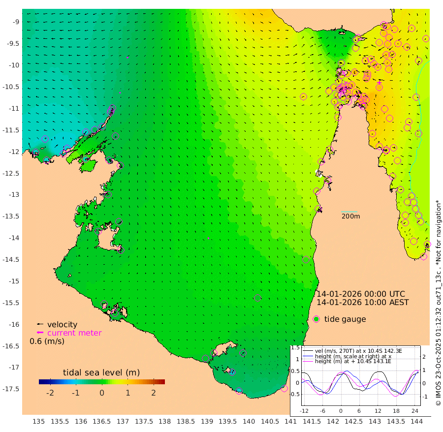10cm/s -115T +3cm/s rms + 7cm/s -42T. ARA-GOC87 57m 17cm/s 160T +3cm/s rms + 2cm/s -2T. ARA-GOC87 60m 15cm/s -114T +2cm/s rms + 3cm/s 61T. ARA-GOC87 47m 100cm Daru 105cm Bobo Island 64cm Meer Island Barge 79cm Bramble Cay 98cm Unnamed Cay 110cm Pearce Cay 97cm Stephens Island 97cm Merrie England Shoals 105cm Mutacomal Reef 89cm Darnley Island Barge 72cm East Cay 97cm Yorke Island Barge 106cm Rennel Island 109cm Aureed Island 109cm Dungeness Reef 90cm Zagai Island 92cm Yam Island 62cm Dauan Island 61cm Saibai Island 74cm Phipi Reef 90cm Warrior Reef - West 72cm Mabuiag Island Barge 104cm Half Way Island 112cm Coconut Island 113cm Dugong Islet 107cm Poll Island 109cm Kirkcaldie Reef 121cm Suarji Island 101cm Sue Islet 88cm Hawkesbury Island 117cm Alert Patches 114cm Twin Island 80cm Badu Island 108cm St Pauls (Moa Island) 86cm Kubin (Moa Island) 101cm Ince Point 99cm Thursday Island 98cm Nardana Patches 96cm Turtle Head 83cm Round Island 89cm Goods Island 87cm Booby Island 93cm White Rocks Area 84cm Carpentaria 96cm Papou Point 101cm Bampfield Head 64cm Crab Island 86cm Red Wallis Island 90cm Packe Island 127cm Harrington Reef 83cm Herald Camp 26cm Sharp Point 87cm Red Island Point 102cm Possession Island 99cm Alpha Rock 116cm Frederick Point 107cm Wyborn Reef Light 107cm Tetley Island 68cm Triangle Reef 119cm Turtle Head Island 72cm Maclennan Cay 50cm Raine Island 96cm Mcsweeny Reef 87cm Collette Reef 63cm Shadwell Reef 92cm Hannibal Island 85cm Round Point 61cm Vrilya Point 80cm Cape Grenville 73cm Hicks Island 77cm Sir Charles Hardy Island 24cm Harvey Island 70cm Kay Reef 59cm Rocky Island 58cm Chapman Island 54cm Ham Reef 56cm Jubilee Reef 55cm Night Island 59cm Unnamed Reef No. 3 61cm Morris Island 58cm 1st 3 Mile Opening 62cm Creech Reef 56cm Fife Island 63cm Eden Reef 61cm Stanley Island 67cm Normanby River -93cm Yabooma Island -95cm Hutchison River -96cm Elcho Island -96cm North West Crocodile Island -50cm Cape Wessel -91cm Stevens Island -43cm Guluwuru Island -84cm Hopeful Bay -59cm Auster Point -73cm Two Island Bay -93cm Cadell Strait -83cm Mallison Island -46cm Melville Bay (Gove Harbour) -43cm Truant Island -29cm Cape Arnhem -24cm Cape Grey -26cm Hawk Island -37cm Milner Bay (Groote Eylandt) -30cm Cape Beatrice -22cm West Island -18cm Centre Island -29cm Mornington Island -21cm West Wellesley Islands -43cm Bountiful Island -94cm Albert River Mouth -98cm Sweers Island -82cm Karumba -8cm Nassau River Offshore 21cm Christmas Creek 38cm Archer River 50cm Boyd Point 45cm Weipa (Humbug Point) 44cm Pennefather River 54cm Cullen Point