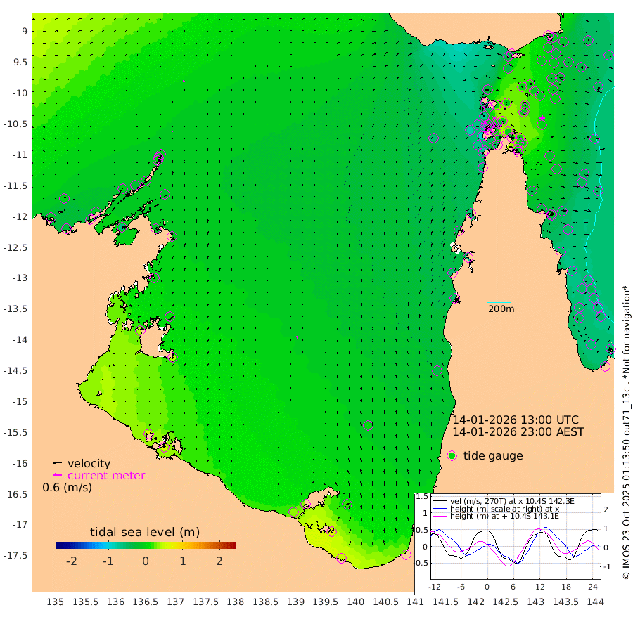 7cm/s 17T +3cm/s rms + 7cm/s -42T. ARA-GOC87 57m 20cm/s 2T +3cm/s rms + 2cm/s -2T. ARA-GOC87 60m 9cm/s 42T +2cm/s rms + 3cm/s 61T. ARA-GOC87 47m -14cm Daru -10cm Bobo Island -42cm Meer Island Barge -34cm Bramble Cay -24cm Unnamed Cay -13cm Pearce Cay -23cm Stephens Island -22cm Merrie England Shoals -9cm Mutacomal Reef -30cm Darnley Island Barge -42cm East Cay -20cm Yorke Island Barge -16cm Rennel Island -9cm Aureed Island -11cm Dungeness Reef -7cm Zagai Island -5cm Yam Island -35cm Dauan Island -35cm Saibai Island -36cm Phipi Reef -14cm Warrior Reef - West -29cm Mabuiag Island Barge -7cm Half Way Island -8cm Coconut Island -5cm Dugong Islet 1cm Poll Island -8cm Kirkcaldie Reef -2cm Suarji Island -11cm Sue Islet -73cm Hawkesbury Island -16cm Alert Patches -5cm Twin Island -69cm Badu Island -3cm St Pauls (Moa Island) -46cm Kubin (Moa Island) -20cm Ince Point -27cm Thursday Island -26cm Nardana Patches -50cm Turtle Head -59cm Round Island -72cm Goods Island -78cm Booby Island -63cm White Rocks Area -58cm Carpentaria -7cm Papou Point -93cm Bampfield Head -65cm Crab Island -61cm Red Wallis Island -48cm Packe Island 2cm Harrington Reef -76cm Herald Camp 6cm Sharp Point -45cm Red Island Point -27cm Possession Island -1cm Alpha Rock -4cm Frederick Point -9cm Wyborn Reef Light -6cm Tetley Island -34cm Triangle Reef -12cm Turtle Head Island -38cm Maclennan Cay -51cm Raine Island -22cm Mcsweeny Reef -30cm Collette Reef -44cm Shadwell Reef -30cm Hannibal Island -33cm Round Point -56cm Vrilya Point -35cm Cape Grenville -40cm Hicks Island -52cm Sir Charles Hardy Island -10cm Harvey Island -46cm Kay Reef -50cm Rocky Island -53cm Chapman Island -53cm Ham Reef -51cm Jubilee Reef -38cm Night Island -50cm Unnamed Reef No. 3 -50cm Morris Island -55cm 1st 3 Mile Opening -50cm Creech Reef -42cm Fife Island -58cm Eden Reef -51cm Stanley Island -45cm Normanby River -10cm Yabooma Island -24cm Hutchison River -11cm Elcho Island -4cm North West Crocodile Island -1cm Cape Wessel -2cm Stevens Island -30cm Guluwuru Island -9cm Hopeful Bay -5cm Auster Point 2cm Two Island Bay -15cm Cadell Strait -67cm Mallison Island -19cm Melville Bay (Gove Harbour) -19cm Truant Island -12cm Cape Arnhem -3cm Cape Grey 11cm Hawk Island 42cm Milner Bay (Groote Eylandt) 39cm Cape Beatrice 64cm West Island 65cm Centre Island 32cm Mornington Island 36cm West Wellesley Islands 21cm Bountiful Island 49cm Albert River Mouth 62cm Sweers Island 41cm Karumba 3cm Nassau River Offshore -31cm Christmas Creek -56cm Archer River -59cm Boyd Point -68cm Weipa (Humbug Point) -45cm Pennefather River -56cm Cullen Point