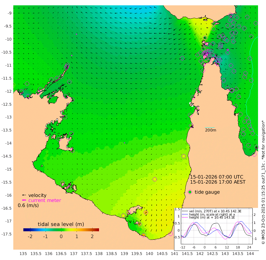 19cm/s -68T +3cm/s rms + 7cm/s -42T. ARA-GOC87 57m 12cm/s -111T +3cm/s rms + 2cm/s -2T. ARA-GOC87 60m 17cm/s -68T +2cm/s rms + 3cm/s 61T. ARA-GOC87 47m -40cm Daru -49cm Bobo Island -14cm Meer Island Barge -25cm Bramble Cay -37cm Unnamed Cay -52cm Pearce Cay -38cm Stephens Island -40cm Merrie England Shoals -47cm Mutacomal Reef -31cm Darnley Island Barge -15cm East Cay -38cm Yorke Island Barge -44cm Rennel Island -49cm Aureed Island -42cm Dungeness Reef -34cm Zagai Island -29cm Yam Island 4cm Dauan Island 2cm Saibai Island 8cm Phipi Reef -23cm Warrior Reef - West -19cm Mabuiag Island Barge -47cm Half Way Island -54cm Coconut Island -49cm Dugong Islet -51cm Poll Island -40cm Kirkcaldie Reef -51cm Suarji Island -41cm Sue Islet -21cm Hawkesbury Island -51cm Alert Patches -54cm Twin Island -13cm Badu Island -50cm St Pauls (Moa Island) -28cm Kubin (Moa Island) -41cm Ince Point -39cm Thursday Island -38cm Nardana Patches -25cm Turtle Head -23cm Round Island -19cm Goods Island -21cm Booby Island -29cm White Rocks Area -41cm Carpentaria -43cm Papou Point -35cm Bampfield Head -12cm Crab Island -28cm Red Wallis Island -30cm Packe Island -64cm Harrington Reef -8cm Herald Camp -10cm Sharp Point -17cm Red Island Point -43cm Possession Island -51cm Alpha Rock -57cm Frederick Point -57cm Wyborn Reef Light -59cm Tetley Island -22cm Triangle Reef -67cm Turtle Head Island -15cm Maclennan Cay -1cm Raine Island -40cm Mcsweeny Reef -31cm Collette Reef -12cm Shadwell Reef -34cm Hannibal Island -32cm Round Point -22cm Vrilya Point -24cm Cape Grenville -16cm Hicks Island -8cm Sir Charles Hardy Island -6cm Harvey Island -14cm Kay Reef -4cm Rocky Island -6cm Chapman Island -3cm Ham Reef -4cm Jubilee Reef -11cm Night Island -7cm Unnamed Reef No. 3 -7cm Morris Island -4cm 1st 3 Mile Opening -7cm Creech Reef -11cm Fife Island -5cm Eden Reef -7cm Stanley Island -11cm Normanby River 4cm Yabooma Island 4cm Hutchison River 4cm Elcho Island 10cm North West Crocodile Island -29cm Cape Wessel -13cm Stevens Island -11cm Guluwuru Island -6cm Hopeful Bay -24cm Auster Point -20cm Two Island Bay -4cm Cadell Strait -12cm Mallison Island -12cm Melville Bay (Gove Harbour) -23cm Truant Island -12cm Cape Arnhem 5cm Cape Grey 4cm Hawk Island 12cm Milner Bay (Groote Eylandt) 22cm Cape Beatrice 26cm West Island 22cm Centre Island 75cm Mornington Island 70cm West Wellesley Islands 114cm Bountiful Island 134cm Albert River Mouth 117cm Sweers Island 133cm Karumba 75cm Nassau River Offshore 59cm Christmas Creek 29cm Archer River 10cm Boyd Point 24cm Weipa (Humbug Point) -11cm Pennefather River -9cm Cullen Point