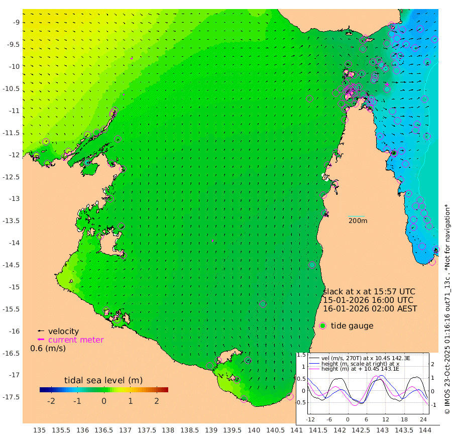11cm/s 98T +3cm/s rms + 7cm/s -42T. ARA-GOC87 57m 23cm/s 11T +3cm/s rms + 2cm/s -2T. ARA-GOC87 60m 15cm/s 101T +2cm/s rms + 3cm/s 61T. ARA-GOC87 47m -95cm Daru -96cm Bobo Island -87cm Meer Island Barge -107cm Bramble Cay -110cm Unnamed Cay -99cm Pearce Cay -102cm Stephens Island -116cm Merrie England Shoals -107cm Mutacomal Reef -99cm Darnley Island Barge -100cm East Cay -94cm Yorke Island Barge -98cm Rennel Island -91cm Aureed Island -84cm Dungeness Reef -54cm Zagai Island -60cm Yam Island -33cm Dauan Island -40cm Saibai Island -57cm Phipi Reef -63cm Warrior Reef - West -25cm Mabuiag Island Barge -89cm Half Way Island -86cm Coconut Island -89cm Dugong Islet -67cm Poll Island -78cm Kirkcaldie Reef -56cm Suarji Island -69cm Sue Islet -40cm Hawkesbury Island -57cm Alert Patches -54cm Twin Island -33cm Badu Island -40cm St Pauls (Moa Island) -32cm Kubin (Moa Island) -40cm Ince Point -34cm Thursday Island -35cm Nardana Patches -41cm Turtle Head -36cm Round Island -36cm Goods Island -22cm Booby Island -26cm White Rocks Area -2cm Carpentaria -40cm Papou Point -33cm Bampfield Head -14cm Crab Island -22cm Red Wallis Island -39cm Packe Island -90cm Harrington Reef -41cm Herald Camp -9cm Sharp Point -45cm Red Island Point -42cm Possession Island -56cm Alpha Rock -69cm Frederick Point -93cm Wyborn Reef Light -86cm Tetley Island -80cm Triangle Reef -84cm Turtle Head Island -87cm Maclennan Cay -80cm Raine Island -97cm Mcsweeny Reef -102cm Collette Reef -90cm Shadwell Reef -112cm Hannibal Island -109cm Round Point -4cm Vrilya Point -104cm Cape Grenville -96cm Hicks Island -109cm Sir Charles Hardy Island -30cm Harvey Island -108cm Kay Reef -93cm Rocky Island -94cm Chapman Island -88cm Ham Reef -88cm Jubilee Reef -78cm Night Island -90cm Unnamed Reef No. 3 -94cm Morris Island -82cm 1st 3 Mile Opening -89cm Creech Reef -84cm Fife Island -106cm Eden Reef -97cm Stanley Island -104cm Normanby River 39cm Yabooma Island 29cm Hutchison River 39cm Elcho Island 39cm North West Crocodile Island 25cm Cape Wessel 35cm Stevens Island -5cm Guluwuru Island 24cm Hopeful Bay 31cm Auster Point 41cm Two Island Bay 30cm Cadell Strait -78cm Mallison Island 6cm Melville Bay (Gove Harbour) 10cm Truant Island 6cm Cape Arnhem 4cm Cape Grey 3cm Hawk Island 28cm Milner Bay (Groote Eylandt) 16cm Cape Beatrice 24cm West Island 23cm Centre Island -30cm Mornington Island -30cm West Wellesley Islands -47cm Bountiful Island -18cm Albert River Mouth -2cm Sweers Island -29cm Karumba -55cm Nassau River Offshore -68cm Christmas Creek -56cm Archer River -40cm Boyd Point -48cm Weipa (Humbug Point) -15cm Pennefather River -15cm Cullen Point