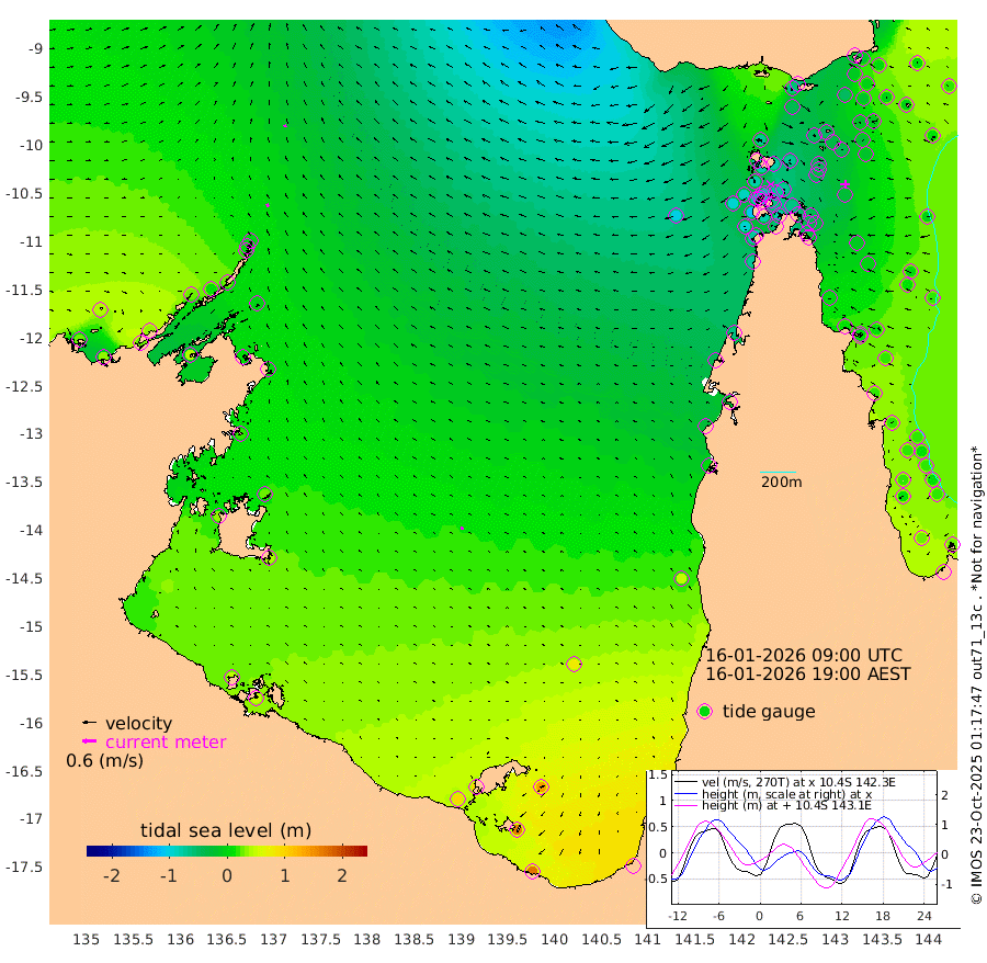 13cm/s -38T +3cm/s rms + 7cm/s -42T. ARA-GOC87 57m 13cm/s -69T +3cm/s rms + 2cm/s -2T. ARA-GOC87 60m 11cm/s -18T +2cm/s rms + 3cm/s 61T. ARA-GOC87 47m -20cm Daru -20cm Bobo Island 12cm Meer Island Barge 13cm Bramble Cay -2cm Unnamed Cay -19cm Pearce Cay -4cm Stephens Island 5cm Merrie England Shoals -14cm Mutacomal Reef -1cm Darnley Island Barge 15cm East Cay -14cm Yorke Island Barge -19cm Rennel Island -26cm Aureed Island -32cm Dungeness Reef -51cm Zagai Island -47cm Yam Island -62cm Dauan Island -53cm Saibai Island -39cm Phipi Reef -49cm Warrior Reef - West -70cm Mabuiag Island Barge -20cm Half Way Island -38cm Coconut Island -30cm Dugong Islet -50cm Poll Island -37cm Kirkcaldie Reef -73cm Suarji Island -45cm Sue Islet -82cm Hawkesbury Island -74cm Alert Patches -73cm Twin Island -77cm Badu Island -80cm St Pauls (Moa Island) -82cm Kubin (Moa Island) -78cm Ince Point -82cm Thursday Island -81cm Nardana Patches -78cm Turtle Head -79cm Round Island -80cm Goods Island -91cm Booby Island -88cm White Rocks Area -100cm Carpentaria -66cm Papou Point -108cm Bampfield Head -71cm Crab Island -90cm Red Wallis Island -82cm Packe Island -41cm Harrington Reef -81cm Herald Camp -18cm Sharp Point -57cm Red Island Point -75cm Possession Island -60cm Alpha Rock -59cm Frederick Point -33cm Wyborn Reef Light -41cm Tetley Island -4cm Triangle Reef -44cm Turtle Head Island 5cm Maclennan Cay 17cm Raine Island -12cm Mcsweeny Reef 0cm Collette Reef 11cm Shadwell Reef 5cm Hannibal Island 8cm Round Point -73cm Vrilya Point 12cm Cape Grenville 11cm Hicks Island 13cm Sir Charles Hardy Island 3cm Harvey Island 22cm Kay Reef 19cm Rocky Island 18cm Chapman Island 17cm Ham Reef 17cm Jubilee Reef 11cm Night Island 16cm Unnamed Reef No. 3 20cm Morris Island 12cm 1st 3 Mile Opening 15cm Creech Reef 11cm Fife Island 29cm Eden Reef 23cm Stanley Island 26cm Normanby River 30cm Yabooma Island 36cm Hutchison River 34cm Elcho Island 39cm North West Crocodile Island -4cm Cape Wessel 24cm Stevens Island 12cm Guluwuru Island 29cm Hopeful Bay 2cm Auster Point 4cm Two Island Bay 27cm Cadell Strait 44cm Mallison Island 9cm Melville Bay (Gove Harbour) -3cm Truant Island 0cm Cape Arnhem 19cm Cape Grey 23cm Hawk Island 35cm Milner Bay (Groote Eylandt) 43cm Cape Beatrice 47cm West Island 46cm Centre Island 96cm Mornington Island 92cm West Wellesley Islands 136cm Bountiful Island 170cm Albert River Mouth 163cm Sweers Island 163cm Karumba 82cm Nassau River Offshore 47cm Christmas Creek 5cm Archer River -28cm Boyd Point -17cm Weipa (Humbug Point) -40cm Pennefather River -61cm Cullen Point