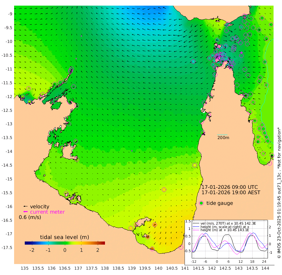 15cm/s -57T +3cm/s rms + 7cm/s -42T. ARA-GOC87 57m 15cm/s -75T +3cm/s rms + 2cm/s -2T. ARA-GOC87 60m 12cm/s -42T +2cm/s rms + 3cm/s 61T. ARA-GOC87 47m -32cm Daru -32cm Bobo Island 9cm Meer Island Barge 4cm Bramble Cay -13cm Unnamed Cay -28cm Pearce Cay -13cm Stephens Island -8cm Merrie England Shoals -30cm Mutacomal Reef -8cm Darnley Island Barge 11cm East Cay -23cm Yorke Island Barge -28cm Rennel Island -36cm Aureed Island -38cm Dungeness Reef -61cm Zagai Island -55cm Yam Island -61cm Dauan Island -59cm Saibai Island -32cm Phipi Reef -57cm Warrior Reef - West -69cm Mabuiag Island Barge -28cm Half Way Island -50cm Coconut Island -38cm Dugong Islet -59cm Poll Island -43cm Kirkcaldie Reef -77cm Suarji Island -54cm Sue Islet -61cm Hawkesbury Island -75cm Alert Patches -77cm Twin Island -62cm Badu Island -83cm St Pauls (Moa Island) -69cm Kubin (Moa Island) -76cm Ince Point -76cm Thursday Island -76cm Nardana Patches -65cm Turtle Head -61cm Round Island -60cm Goods Island -67cm Booby Island -69cm White Rocks Area -87cm Carpentaria -68cm Papou Point -84cm Bampfield Head -50cm Crab Island -72cm Red Wallis Island -68cm Packe Island -52cm Harrington Reef -55cm Herald Camp -20cm Sharp Point -44cm Red Island Point -67cm Possession Island -72cm Alpha Rock -67cm Frederick Point -49cm Wyborn Reef Light -56cm Tetley Island -9cm Triangle Reef -50cm Turtle Head Island 3cm Maclennan Cay 17cm Raine Island -22cm Mcsweeny Reef -10cm Collette Reef 7cm Shadwell Reef -5cm Hannibal Island -1cm Round Point -53cm Vrilya Point 5cm Cape Grenville 8cm Hicks Island 8cm Sir Charles Hardy Island 2cm Harvey Island 16cm Kay Reef 18cm Rocky Island 15cm Chapman Island 15cm Ham Reef 16cm Jubilee Reef 9cm Night Island 13cm Unnamed Reef No. 3 18cm Morris Island 15cm 1st 3 Mile Opening 15cm Creech Reef 7cm Fife Island 28cm Eden Reef 21cm Stanley Island 23cm Normanby River 32cm Yabooma Island 36cm Hutchison River 33cm Elcho Island 40cm North West Crocodile Island -20cm Cape Wessel 13cm Stevens Island -8cm Guluwuru Island 22cm Hopeful Bay -5cm Auster Point -2cm Two Island Bay 20cm Cadell Strait -24cm Mallison Island -6cm Melville Bay (Gove Harbour) -20cm Truant Island -12cm Cape Arnhem 12cm Cape Grey 19cm Hawk Island 31cm Milner Bay (Groote Eylandt) 40cm Cape Beatrice 47cm West Island 48cm Centre Island 103cm Mornington Island 96cm West Wellesley Islands 147cm Bountiful Island 178cm Albert River Mouth 175cm Sweers Island 179cm Karumba 92cm Nassau River Offshore 58cm Christmas Creek 20cm Archer River -15cm Boyd Point 0cm Weipa (Humbug Point) -24cm Pennefather River -43cm Cullen Point