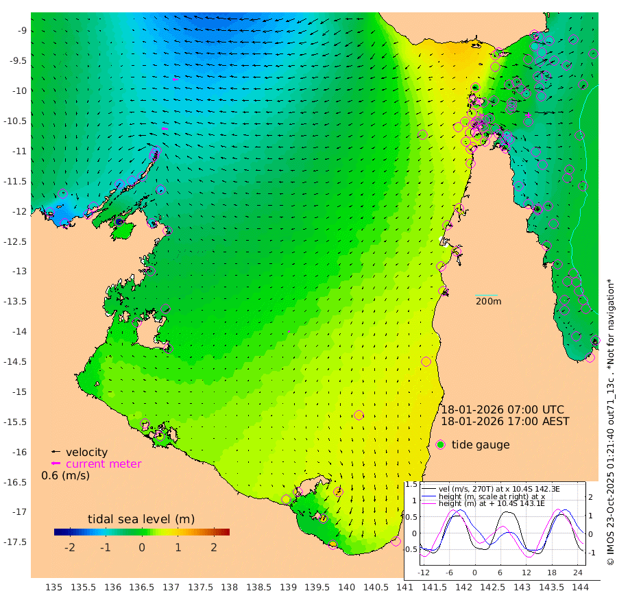 40cm/s -83T +3cm/s rms + 7cm/s -42T. ARA-GOC87 57m 15cm/s -137T +3cm/s rms + 2cm/s -2T. ARA-GOC87 60m 39cm/s -88T +2cm/s rms + 3cm/s 61T. ARA-GOC87 47m -68cm Daru -75cm Bobo Island -35cm Meer Island Barge -62cm Bramble Cay -75cm Unnamed Cay -74cm Pearce Cay -65cm Stephens Island -83cm Merrie England Shoals -84cm Mutacomal Reef -58cm Darnley Island Barge -38cm East Cay -63cm Yorke Island Barge -67cm Rennel Island -65cm Aureed Island -51cm Dungeness Reef -38cm Zagai Island -29cm Yam Island 25cm Dauan Island 14cm Saibai Island 34cm Phipi Reef -21cm Warrior Reef - West 5cm Mabuiag Island Barge -68cm Half Way Island -70cm Coconut Island -65cm Dugong Islet -55cm Poll Island -44cm Kirkcaldie Reef -32cm Suarji Island -48cm Sue Islet 38cm Hawkesbury Island -30cm Alert Patches -38cm Twin Island 30cm Badu Island -29cm St Pauls (Moa Island) 19cm Kubin (Moa Island) -12cm Ince Point -1cm Thursday Island -3cm Nardana Patches 21cm Turtle Head 33cm Round Island 39cm Goods Island 51cm Booby Island 31cm White Rocks Area 28cm Carpentaria -26cm Papou Point 41cm Bampfield Head 51cm Crab Island 40cm Red Wallis Island 27cm Packe Island -78cm Harrington Reef 72cm Herald Camp -5cm Sharp Point 27cm Red Island Point -2cm Possession Island -53cm Alpha Rock -56cm Frederick Point -89cm Wyborn Reef Light -85cm Tetley Island -36cm Triangle Reef -86cm Turtle Head Island -30cm Maclennan Cay -18cm Raine Island -69cm Mcsweeny Reef -62cm Collette Reef -36cm Shadwell Reef -71cm Hannibal Island -65cm Round Point 43cm Vrilya Point -51cm Cape Grenville -38cm Hicks Island -33cm Sir Charles Hardy Island -12cm Harvey Island -45cm Kay Reef -25cm Rocky Island -25cm Chapman Island -20cm Ham Reef -26cm Jubilee Reef -25cm Night Island -25cm Unnamed Reef No. 3 -29cm Morris Island -20cm 1st 3 Mile Opening -23cm Creech Reef -31cm Fife Island -31cm Eden Reef -30cm Stanley Island -39cm Normanby River -86cm Yabooma Island -106cm Hutchison River -89cm Elcho Island -77cm North West Crocodile Island -111cm Cape Wessel -120cm Stevens Island -112cm Guluwuru Island -93cm Hopeful Bay -102cm Auster Point -95cm Two Island Bay -114cm Cadell Strait -205cm Mallison Island -96cm Melville Bay (Gove Harbour) -109cm Truant Island -70cm Cape Arnhem -40cm Cape Grey -24cm Hawk Island -9cm Milner Bay (Groote Eylandt) 7cm Cape Beatrice 34cm West Island 39cm Centre Island 84cm Mornington Island 73cm West Wellesley Islands 110cm Bountiful Island 110cm Albert River Mouth 101cm Sweers Island 132cm Karumba 95cm Nassau River Offshore 89cm Christmas Creek 66cm Archer River 53cm Boyd Point 69cm Weipa (Humbug Point) 36cm Pennefather River 56cm Cullen Point