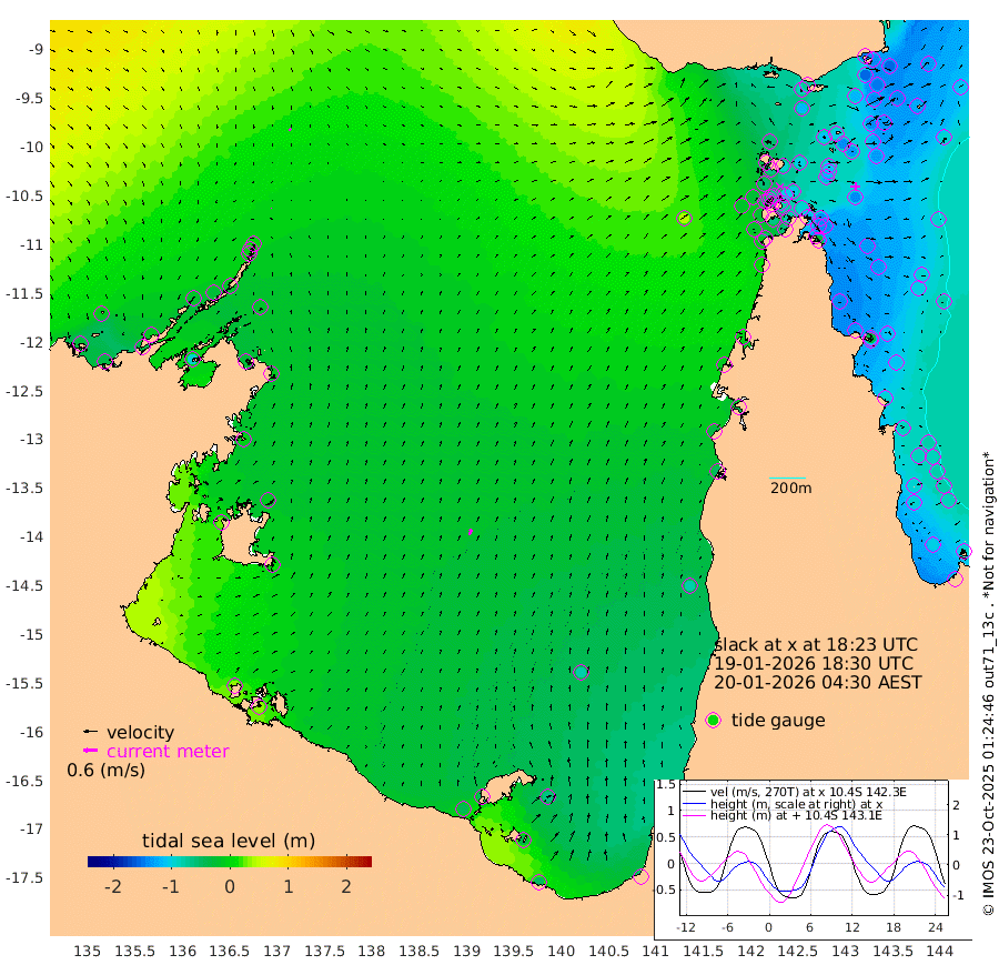 2cm/s 54T +3cm/s rms + 7cm/s -42T. ARA-GOC87 57m 28cm/s 18T +3cm/s rms + 2cm/s -2T. ARA-GOC87 60m 8cm/s 127T +2cm/s rms + 3cm/s 61T. ARA-GOC87 47m -146cm Daru -136cm Bobo Island -96cm Meer Island Barge -128cm Bramble Cay -148cm Unnamed Cay -140cm Pearce Cay -135cm Stephens Island -152cm Merrie England Shoals -156cm Mutacomal Reef -124cm Darnley Island Barge -108cm East Cay -129cm Yorke Island Barge -141cm Rennel Island -127cm Aureed Island -136cm Dungeness Reef -100cm Zagai Island -110cm Yam Island -88cm Dauan Island -69cm Saibai Island -118cm Phipi Reef -118cm Warrior Reef - West -54cm Mabuiag Island Barge -134cm Half Way Island -128cm Coconut Island -137cm Dugong Islet -119cm Poll Island -127cm Kirkcaldie Reef -102cm Suarji Island -109cm Sue Islet -59cm Hawkesbury Island -100cm Alert Patches -99cm Twin Island -51cm Badu Island -92cm St Pauls (Moa Island) -66cm Kubin (Moa Island) -78cm Ince Point -66cm Thursday Island -70cm Nardana Patches -69cm Turtle Head -62cm Round Island -47cm Goods Island -15cm Booby Island -26cm White Rocks Area 42cm Carpentaria -77cm Papou Point -25cm Bampfield Head -10cm Crab Island -21cm Red Wallis Island -65cm Packe Island -138cm Harrington Reef -58cm Herald Camp -24cm Sharp Point -57cm Red Island Point -78cm Possession Island -96cm Alpha Rock -116cm Frederick Point -142cm Wyborn Reef Light -136cm Tetley Island -91cm Triangle Reef -140cm Turtle Head Island -94cm Maclennan Cay -77cm Raine Island -131cm Mcsweeny Reef -128cm Collette Reef -100cm Shadwell Reef -140cm Hannibal Island -134cm Round Point 9cm Vrilya Point -119cm Cape Grenville -111cm Hicks Island -112cm Sir Charles Hardy Island -36cm Harvey Island -108cm Kay Reef -92cm Rocky Island -87cm Chapman Island -78cm Ham Reef -85cm Jubilee Reef -83cm Night Island -80cm Unnamed Reef No. 3 -93cm Morris Island -81cm 1st 3 Mile Opening -86cm Creech Reef -91cm Fife Island -101cm Eden Reef -97cm Stanley Island -106cm Normanby River -24cm Yabooma Island -34cm Hutchison River -12cm Elcho Island -13cm North West Crocodile Island 4cm Cape Wessel -21cm Stevens Island -27cm Guluwuru Island -21cm Hopeful Bay -7cm Auster Point -6cm Two Island Bay -37cm Cadell Strait -92cm Mallison Island -24cm Melville Bay (Gove Harbour) -20cm Truant Island -12cm Cape Arnhem -3cm Cape Grey -12cm Hawk Island 24cm Milner Bay (Groote Eylandt) 12cm Cape Beatrice 33cm West Island 34cm Centre Island -45cm Mornington Island -43cm West Wellesley Islands -63cm Bountiful Island -52cm Albert River Mouth -37cm Sweers Island -67cm Karumba -77cm Nassau River Offshore -81cm Christmas Creek -51cm Archer River -30cm Boyd Point -42cm Weipa (Humbug Point) -12cm Pennefather River -6cm Cullen Point