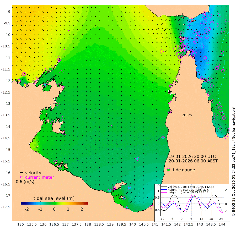 11cm/s 144T +3cm/s rms + 7cm/s -42T. ARA-GOC87 57m 20cm/s 21T +3cm/s rms + 2cm/s -2T. ARA-GOC87 60m 18cm/s 142T +2cm/s rms + 3cm/s 61T. ARA-GOC87 47m -137cm Daru -124cm Bobo Island -47cm Meer Island Barge -83cm Bramble Cay -115cm Unnamed Cay -112cm Pearce Cay -98cm Stephens Island -115cm Merrie England Shoals -140cm Mutacomal Reef -88cm Darnley Island Barge -57cm East Cay -107cm Yorke Island Barge -117cm Rennel Island -113cm Aureed Island -126cm Dungeness Reef -125cm Zagai Island -126cm Yam Island -119cm Dauan Island -109cm Saibai Island -143cm Phipi Reef -144cm Warrior Reef - West -73cm Mabuiag Island Barge -108cm Half Way Island -125cm Coconut Island -119cm Dugong Islet -124cm Poll Island -123cm Kirkcaldie Reef -122cm Suarji Island -120cm Sue Islet -5cm Hawkesbury Island -106cm Alert Patches -107cm Twin Island -20cm Badu Island -111cm St Pauls (Moa Island) -33cm Kubin (Moa Island) -78cm Ince Point -57cm Thursday Island -64cm Nardana Patches -41cm Turtle Head -25cm Round Island 9cm Goods Island 49cm Booby Island 35cm White Rocks Area 86cm Carpentaria -86cm Papou Point 42cm Bampfield Head 40cm Crab Island 34cm Red Wallis Island -23cm Packe Island -127cm Harrington Reef -1cm Herald Camp -41cm Sharp Point -35cm Red Island Point -69cm Possession Island -107cm Alpha Rock -119cm Frederick Point -133cm Wyborn Reef Light -134cm Tetley Island -57cm Triangle Reef -115cm Turtle Head Island -47cm Maclennan Cay -24cm Raine Island -104cm Mcsweeny Reef -96cm Collette Reef -57cm Shadwell Reef -102cm Hannibal Island -86cm Round Point 55cm Vrilya Point -71cm Cape Grenville -62cm Hicks Island -60cm Sir Charles Hardy Island -22cm Harvey Island -53cm Kay Reef -39cm Rocky Island -35cm Chapman Island -26cm Ham Reef -32cm Jubilee Reef -37cm Night Island -29cm Unnamed Reef No. 3 -36cm Morris Island -22cm 1st 3 Mile Opening -31cm Creech Reef -45cm Fife Island -30cm Eden Reef -36cm Stanley Island -42cm Normanby River 62cm Yabooma Island 63cm Hutchison River 69cm Elcho Island 62cm North West Crocodile Island 41cm Cape Wessel 40cm Stevens Island 7cm Guluwuru Island 38cm Hopeful Bay 43cm Auster Point 48cm Two Island Bay 30cm Cadell Strait -103cm Mallison Island 4cm Melville Bay (Gove Harbour) 10cm Truant Island -1cm Cape Arnhem -5cm Cape Grey -23cm Hawk Island -6cm Milner Bay (Groote Eylandt) -17cm Cape Beatrice -20cm West Island -18cm Centre Island -90cm Mornington Island -87cm West Wellesley Islands -105cm Bountiful Island -101cm Albert River Mouth -103cm Sweers Island -116cm Karumba -95cm Nassau River Offshore -76cm Christmas Creek -23cm Archer River 1cm Boyd Point 0cm Weipa (Humbug Point) 20cm Pennefather River 35cm Cullen Point