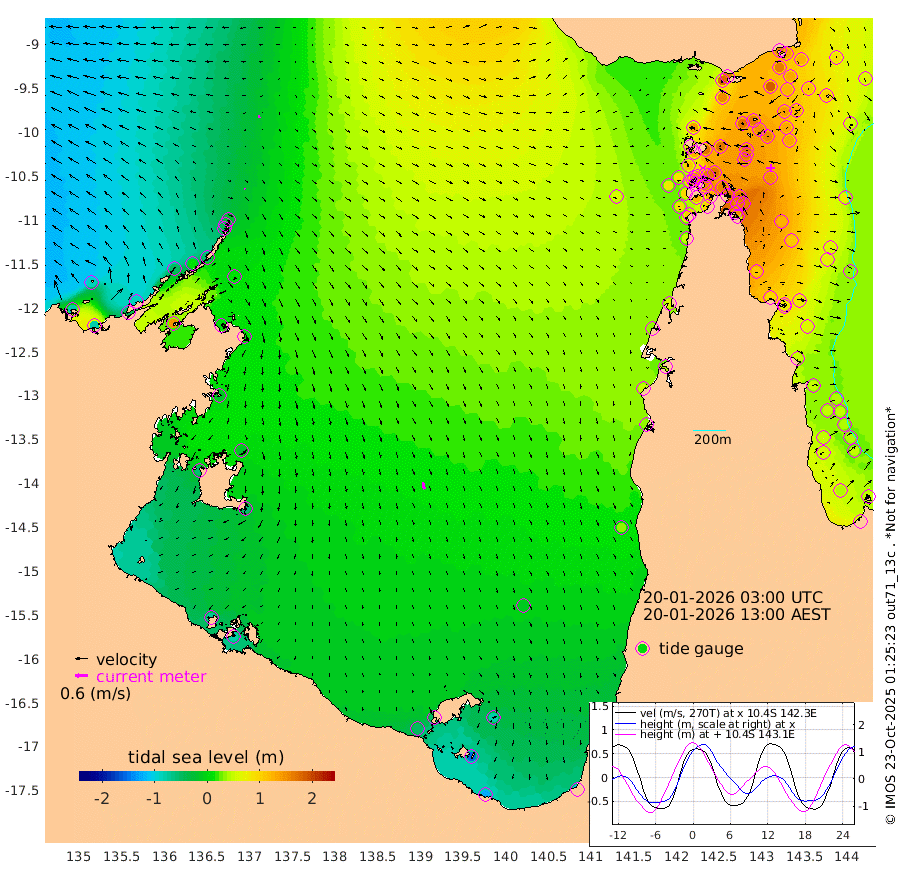 5cm/s 156T +3cm/s rms + 7cm/s -42T. ARA-GOC87 57m 35cm/s 167T +3cm/s rms + 2cm/s -2T. ARA-GOC87 60m 10cm/s -99T +2cm/s rms + 3cm/s 61T. ARA-GOC87 47m 155cm Daru 139cm Bobo Island 58cm Meer Island Barge 90cm Bramble Cay 129cm Unnamed Cay 126cm Pearce Cay 112cm Stephens Island 124cm Merrie England Shoals 158cm Mutacomal Reef 102cm Darnley Island Barge 66cm East Cay 125cm Yorke Island Barge 138cm Rennel Island 132cm Aureed Island 148cm Dungeness Reef 164cm Zagai Island 167cm Yam Island 173cm Dauan Island 163cm Saibai Island 157cm Phipi Reef 180cm Warrior Reef - West 139cm Mabuiag Island Barge 129cm Half Way Island 154cm Coconut Island 147cm Dugong Islet 161cm Poll Island 156cm Kirkcaldie Reef 168cm Suarji Island 158cm Sue Islet 112cm Hawkesbury Island 164cm Alert Patches 166cm Twin Island 116cm Badu Island 172cm St Pauls (Moa Island) 127cm Kubin (Moa Island) 150cm Ince Point 138cm Thursday Island 142cm Nardana Patches 128cm Turtle Head 113cm Round Island 98cm Goods Island 77cm Booby Island 83cm White Rocks Area 57cm Carpentaria 143cm Papou Point 97cm Bampfield Head 60cm Crab Island 89cm Red Wallis Island 124cm Packe Island 157cm Harrington Reef 108cm Herald Camp 50cm Sharp Point 100cm Red Island Point 129cm Possession Island 163cm Alpha Rock 165cm Frederick Point 164cm Wyborn Reef Light 170cm Tetley Island 77cm Triangle Reef 149cm Turtle Head Island 66cm Maclennan Cay 37cm Raine Island 122cm Mcsweeny Reef 108cm Collette Reef 69cm Shadwell Reef 110cm Hannibal Island 95cm Round Point 47cm Vrilya Point 81cm Cape Grenville 72cm Hicks Island 82cm Sir Charles Hardy Island 24cm Harvey Island 63cm Kay Reef 48cm Rocky Island 46cm Chapman Island 42cm Ham Reef 46cm Jubilee Reef 48cm Night Island 45cm Unnamed Reef No. 3 47cm Morris Island 40cm 1st 3 Mile Opening 45cm Creech Reef 57cm Fife Island 38cm Eden Reef 46cm Stanley Island 47cm Normanby River -78cm Yabooma Island -79cm Hutchison River -87cm Elcho Island -89cm North West Crocodile Island -17cm Cape Wessel -51cm Stevens Island 15cm Guluwuru Island -58cm Hopeful Bay -38cm Auster Point -41cm Two Island Bay -42cm Cadell Strait 149cm Mallison Island 3cm Melville Bay (Gove Harbour) 11cm Truant Island 10cm Cape Arnhem -18cm Cape Grey -20cm Hawk Island -59cm Milner Bay (Groote Eylandt) -53cm Cape Beatrice -69cm West Island -75cm Centre Island -51cm Mornington Island -46cm West Wellesley Islands -79cm Bountiful Island -123cm Albert River Mouth -150cm Sweers Island -113cm Karumba -10cm Nassau River Offshore 31cm Christmas Creek 34cm Archer River 52cm Boyd Point 45cm Weipa (Humbug Point) 33cm Pennefather River 54cm Cullen Point