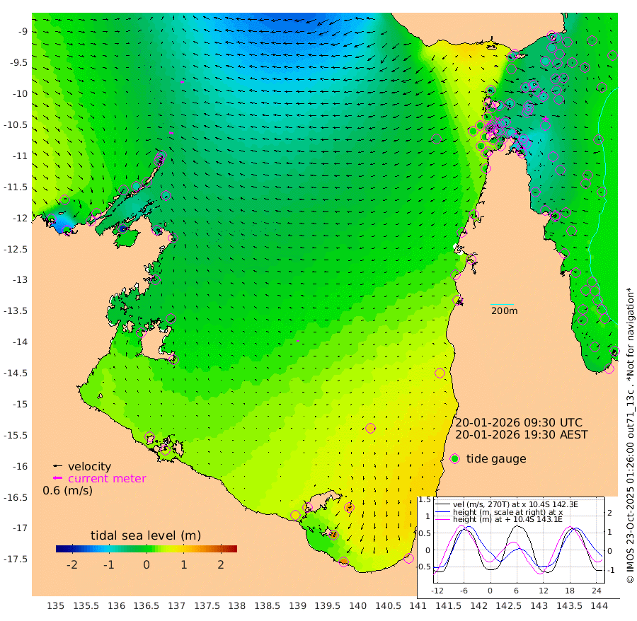27cm/s -85T +3cm/s rms + 7cm/s -42T. ARA-GOC87 57m 16cm/s -92T +3cm/s rms + 2cm/s -2T. ARA-GOC87 60m 23cm/s -87T +2cm/s rms + 3cm/s 61T. ARA-GOC87 47m -70cm Daru -68cm Bobo Island -8cm Meer Island Barge -26cm Bramble Cay -52cm Unnamed Cay -53cm Pearce Cay -41cm Stephens Island -49cm Merrie England Shoals -72cm Mutacomal Reef -38cm Darnley Island Barge -7cm East Cay -56cm Yorke Island Barge -57cm Rennel Island -60cm Aureed Island -59cm Dungeness Reef -85cm Zagai Island -75cm Yam Island -61cm Dauan Island -74cm Saibai Island -31cm Phipi Reef -77cm Warrior Reef - West -65cm Mabuiag Island Barge -54cm Half Way Island -77cm Coconut Island -64cm Dugong Islet -77cm Poll Island -65cm Kirkcaldie Reef -80cm Suarji Island -82cm Sue Islet -6cm Hawkesbury Island -73cm Alert Patches -79cm Twin Island -23cm Badu Island -84cm St Pauls (Moa Island) -26cm Kubin (Moa Island) -61cm Ince Point -50cm Thursday Island -53cm Nardana Patches -25cm Turtle Head -10cm Round Island 0cm Goods Island 9cm Booby Island -1cm White Rocks Area -23cm Carpentaria -71cm Papou Point -6cm Bampfield Head 15cm Crab Island 0cm Red Wallis Island -10cm Packe Island -78cm Harrington Reef 20cm Herald Camp -26cm Sharp Point -14cm Red Island Point -42cm Possession Island -88cm Alpha Rock -81cm Frederick Point -87cm Wyborn Reef Light -92cm Tetley Island -21cm Triangle Reef -78cm Turtle Head Island -9cm Maclennan Cay 9cm Raine Island -53cm Mcsweeny Reef -41cm Collette Reef -12cm Shadwell Reef -41cm Hannibal Island -27cm Round Point 10cm Vrilya Point -17cm Cape Grenville -9cm Hicks Island -13cm Sir Charles Hardy Island -4cm Harvey Island -7cm Kay Reef 5cm Rocky Island 6cm Chapman Island 5cm Ham Reef 1cm Jubilee Reef 3cm Night Island 3cm Unnamed Reef No. 3 4cm Morris Island 7cm 1st 3 Mile Opening 5cm Creech Reef -4cm Fife Island 15cm Eden Reef 7cm Stanley Island 6cm Normanby River 9cm Yabooma Island 1cm Hutchison River 7cm Elcho Island 15cm North West Crocodile Island -61cm Cape Wessel -31cm Stevens Island -77cm Guluwuru Island -8cm Hopeful Bay -38cm Auster Point -32cm Two Island Bay -33cm Cadell Strait -184cm Mallison Island -59cm Melville Bay (Gove Harbour) -73cm Truant Island -50cm Cape Arnhem -25cm Cape Grey -3cm Hawk Island 12cm Milner Bay (Groote Eylandt) 25cm Cape Beatrice 41cm West Island 49cm Centre Island 99cm Mornington Island 87cm West Wellesley Islands 131cm Bountiful Island 157cm Albert River Mouth 157cm Sweers Island 172cm Karumba 103cm Nassau River Offshore 80cm Christmas Creek 54cm Archer River 24cm Boyd Point 46cm Weipa (Humbug Point) 20cm Pennefather River 20cm Cullen Point