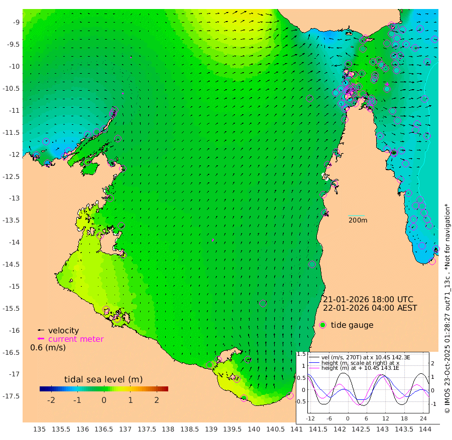 12cm/s -3T +3cm/s rms + 7cm/s -42T. ARA-GOC87 57m 26cm/s 20T +3cm/s rms + 2cm/s -2T. ARA-GOC87 60m 9cm/s 15T +2cm/s rms + 3cm/s 61T. ARA-GOC87 47m -75cm Daru -72cm Bobo Island -83cm Meer Island Barge -94cm Bramble Cay -89cm Unnamed Cay -91cm Pearce Cay -92cm Stephens Island -92cm Merrie England Shoals -79cm Mutacomal Reef -82cm Darnley Island Barge -92cm East Cay -73cm Yorke Island Barge -86cm Rennel Island -70cm Aureed Island -78cm Dungeness Reef -31cm Zagai Island -50cm Yam Island -41cm Dauan Island -10cm Saibai Island -54cm Phipi Reef -46cm Warrior Reef - West -22cm Mabuiag Island Barge -86cm Half Way Island -62cm Coconut Island -83cm Dugong Islet -58cm Poll Island -68cm Kirkcaldie Reef -38cm Suarji Island -39cm Sue Islet -104cm Hawkesbury Island -49cm Alert Patches -49cm Twin Island -79cm Badu Island -40cm St Pauls (Moa Island) -89cm Kubin (Moa Island) -53cm Ince Point -58cm Thursday Island -56cm Nardana Patches -83cm Turtle Head -82cm Round Island -102cm Goods Island -93cm Booby Island -96cm White Rocks Area -28cm Carpentaria -39cm Papou Point -86cm Bampfield Head -76cm Crab Island -92cm Red Wallis Island -102cm Packe Island -73cm Harrington Reef -108cm Herald Camp 2cm Sharp Point -67cm Red Island Point -53cm Possession Island -36cm Alpha Rock -56cm Frederick Point -67cm Wyborn Reef Light -61cm Tetley Island -71cm Triangle Reef -82cm Turtle Head Island -84cm Maclennan Cay -81cm Raine Island -80cm Mcsweeny Reef -78cm Collette Reef -77cm Shadwell Reef -88cm Hannibal Island -98cm Round Point -56cm Vrilya Point -89cm Cape Grenville -92cm Hicks Island -96cm Sir Charles Hardy Island -28cm Harvey Island -88cm Kay Reef -85cm Rocky Island -83cm Chapman Island -77cm Ham Reef -81cm Jubilee Reef -78cm Night Island -79cm Unnamed Reef No. 3 -89cm Morris Island -87cm 1st 3 Mile Opening -86cm Creech Reef -84cm Fife Island -105cm Eden Reef -92cm Stanley Island -102cm Normanby River -115cm Yabooma Island -128cm Hutchison River -99cm Elcho Island -98cm North West Crocodile Island -35cm Cape Wessel -76cm Stevens Island -36cm Guluwuru Island -71cm Hopeful Bay -53cm Auster Point -63cm Two Island Bay -99cm Cadell Strait 18cm Mallison Island -32cm Melville Bay (Gove Harbour) -31cm Truant Island -10cm Cape Arnhem 13cm Cape Grey 13cm Hawk Island 51cm Milner Bay (Groote Eylandt) 39cm Cape Beatrice 74cm West Island 75cm Centre Island 15cm Mornington Island 14cm West Wellesley Islands 3cm Bountiful Island 4cm Albert River Mouth 43cm Sweers Island -4cm Karumba -40cm Nassau River Offshore -66cm Christmas Creek -66cm Archer River -58cm Boyd Point -79cm Weipa (Humbug Point) -45cm Pennefather River -60cm Cullen Point