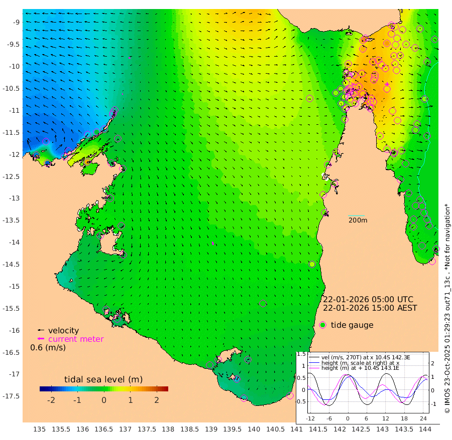8cm/s -72T +3cm/s rms + 7cm/s -42T. ARA-GOC87 57m 31cm/s 165T +3cm/s rms + 2cm/s -2T. ARA-GOC87 60m 19cm/s -83T +2cm/s rms + 3cm/s 61T. ARA-GOC87 47m 97cm Daru 78cm Bobo Island 15cm Meer Island Barge 34cm Bramble Cay 66cm Unnamed Cay 57cm Pearce Cay 52cm Stephens Island 60cm Merrie England Shoals 94cm Mutacomal Reef 49cm Darnley Island Barge 18cm East Cay 71cm Yorke Island Barge 75cm Rennel Island 73cm Aureed Island 89cm Dungeness Reef 124cm Zagai Island 128cm Yam Island 146cm Dauan Island 145cm Saibai Island 123cm Phipi Reef 141cm Warrior Reef - West 110cm Mabuiag Island Barge 71cm Half Way Island 94cm Coconut Island 87cm Dugong Islet 107cm Poll Island 107cm Kirkcaldie Reef 112cm Suarji Island 113cm Sue Islet 63cm Hawkesbury Island 109cm Alert Patches 113cm Twin Island 72cm Badu Island 124cm St Pauls (Moa Island) 81cm Kubin (Moa Island) 105cm Ince Point 94cm Thursday Island 97cm Nardana Patches 80cm Turtle Head 65cm Round Island 50cm Goods Island 36cm Booby Island 34cm White Rocks Area 41cm Carpentaria 102cm Papou Point 40cm Bampfield Head 36cm Crab Island 50cm Red Wallis Island 76cm Packe Island 92cm Harrington Reef 68cm Herald Camp 45cm Sharp Point 65cm Red Island Point 79cm Possession Island 115cm Alpha Rock 108cm Frederick Point 97cm Wyborn Reef Light 106cm Tetley Island 33cm Triangle Reef 76cm Turtle Head Island 23cm Maclennan Cay 1cm Raine Island 63cm Mcsweeny Reef 53cm Collette Reef 26cm Shadwell Reef 50cm Hannibal Island 33cm Round Point 32cm Vrilya Point 29cm Cape Grenville 23cm Hicks Island 35cm Sir Charles Hardy Island 10cm Harvey Island 15cm Kay Reef 7cm Rocky Island 3cm Chapman Island 6cm Ham Reef 8cm Jubilee Reef 10cm Night Island 7cm Unnamed Reef No. 3 4cm Morris Island 0cm 1st 3 Mile Opening 6cm Creech Reef 15cm Fife Island -9cm Eden Reef 3cm Stanley Island -1cm Normanby River -145cm Yabooma Island -158cm Hutchison River -148cm Elcho Island -143cm North West Crocodile Island -62cm Cape Wessel -111cm Stevens Island -23cm Guluwuru Island -113cm Hopeful Bay -92cm Auster Point -86cm Two Island Bay -99cm Cadell Strait 131cm Mallison Island -36cm Melville Bay (Gove Harbour) -33cm Truant Island -15cm Cape Arnhem -29cm Cape Grey -29cm Hawk Island -46cm Milner Bay (Groote Eylandt) -36cm Cape Beatrice -32cm West Island -38cm Centre Island -18cm Mornington Island -17cm West Wellesley Islands -48cm Bountiful Island -78cm Albert River Mouth -110cm Sweers Island -69cm Karumba 10cm Nassau River Offshore 38cm Christmas Creek 25cm Archer River 40cm Boyd Point 28cm Weipa (Humbug Point) 22cm Pennefather River 40cm Cullen Point