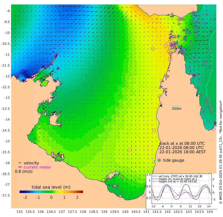 43cm/s -86T +3cm/s rms + 7cm/s -42T. ARA-GOC87 57m 15cm/s -171T +3cm/s rms + 2cm/s -2T. ARA-GOC87 60m 47cm/s -95T +2cm/s rms + 3cm/s 61T. ARA-GOC87 47m -64cm Daru -74cm Bobo Island -55cm Meer Island Barge -70cm Bramble Cay -75cm Unnamed Cay -79cm Pearce Cay -73cm Stephens Island -74cm Merrie England Shoals -64cm Mutacomal Reef -69cm Darnley Island Barge -56cm East Cay -68cm Yorke Island Barge -65cm Rennel Island -64cm Aureed Island -52cm Dungeness Reef -26cm Zagai Island -14cm Yam Island 25cm Dauan Island 23cm Saibai Island 18cm Phipi Reef -12cm Warrior Reef - West 22cm Mabuiag Island Barge -63cm Half Way Island -55cm Coconut Island -59cm Dugong Islet -37cm Poll Island -33cm Kirkcaldie Reef -18cm Suarji Island -35cm Sue Islet 54cm Hawkesbury Island -8cm Alert Patches -11cm Twin Island 44cm Badu Island -6cm St Pauls (Moa Island) 38cm Kubin (Moa Island) 14cm Ince Point 26cm Thursday Island 23cm Nardana Patches 39cm Turtle Head 45cm Round Island 55cm Goods Island 76cm Booby Island 61cm White Rocks Area 82cm Carpentaria -8cm Papou Point 59cm Bampfield Head 77cm Crab Island 82cm Red Wallis Island 63cm Packe Island -64cm Harrington Reef 84cm Herald Camp 7cm Sharp Point 39cm Red Island Point 8cm Possession Island -17cm Alpha Rock -34cm Frederick Point -70cm Wyborn Reef Light -62cm Tetley Island -41cm Triangle Reef -86cm Turtle Head Island -45cm Maclennan Cay -38cm Raine Island -69cm Mcsweeny Reef -64cm Collette Reef -48cm Shadwell Reef -74cm Hannibal Island -70cm Round Point 81cm Vrilya Point -55cm Cape Grenville -57cm Hicks Island -48cm Sir Charles Hardy Island -17cm Harvey Island -53cm Kay Reef -45cm Rocky Island -39cm Chapman Island -36cm Ham Reef -44cm Jubilee Reef -36cm Night Island -34cm Unnamed Reef No. 3 -48cm Morris Island -46cm 1st 3 Mile Opening -42cm Creech Reef -46cm Fife Island -57cm Eden Reef -47cm Stanley Island -59cm Normanby River -176cm Yabooma Island -213cm Hutchison River -175cm Elcho Island -161cm North West Crocodile Island -148cm Cape Wessel -181cm Stevens Island -162cm Guluwuru Island -155cm Hopeful Bay -160cm Auster Point -155cm Two Island Bay -205cm Cadell Strait -160cm Mallison Island -146cm Melville Bay (Gove Harbour) -155cm Truant Island -101cm Cape Arnhem -81cm Cape Grey -52cm Hawk Island -27cm Milner Bay (Groote Eylandt) -8cm Cape Beatrice 33cm West Island 40cm Centre Island 52cm Mornington Island 45cm West Wellesley Islands 36cm Bountiful Island 37cm Albert River Mouth 13cm Sweers Island 54cm Karumba 73cm Nassau River Offshore 80cm Christmas Creek 69cm Archer River 64cm Boyd Point 71cm Weipa (Humbug Point) 61cm Pennefather River 87cm Cullen Point