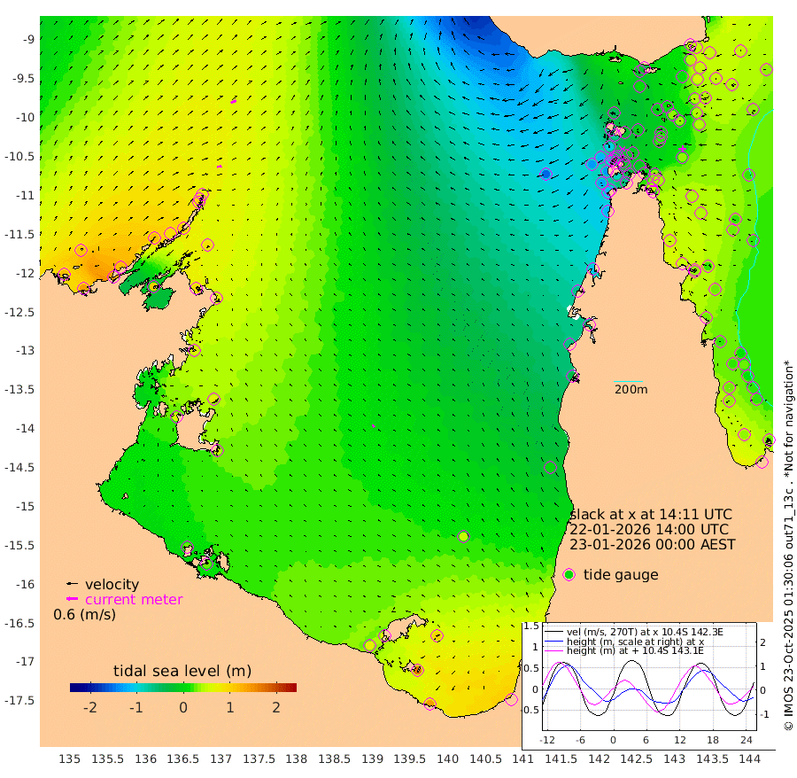 26cm/s 84T +3cm/s rms + 7cm/s -42T. ARA-GOC87 57m 15cm/s -41T +3cm/s rms + 2cm/s -2T. ARA-GOC87 60m 32cm/s 68T +2cm/s rms + 3cm/s 61T. ARA-GOC87 47m 48cm Daru 51cm Bobo Island 33cm Meer Island Barge 47cm Bramble Cay 49cm Unnamed Cay 56cm Pearce Cay 49cm Stephens Island 51cm Merrie England Shoals 43cm Mutacomal Reef 44cm Darnley Island Barge 34cm East Cay 43cm Yorke Island Barge 41cm Rennel Island 43cm Aureed Island 37cm Dungeness Reef 11cm Zagai Island -1cm Yam Island -19cm Dauan Island -34cm Saibai Island 13cm Phipi Reef 11cm Warrior Reef - West -48cm Mabuiag Island Barge 40cm Half Way Island 31cm Coconut Island 33cm Dugong Islet 18cm Poll Island 15cm Kirkcaldie Reef -2cm Suarji Island 9cm Sue Islet -100cm Hawkesbury Island -17cm Alert Patches -15cm Twin Island -81cm Badu Island -17cm St Pauls (Moa Island) -71cm Kubin (Moa Island) -40cm Ince Point -56cm Thursday Island -51cm Nardana Patches -66cm Turtle Head -75cm Round Island -97cm Goods Island -128cm Booby Island -116cm White Rocks Area -157cm Carpentaria -22cm Papou Point -128cm Bampfield Head -107cm Crab Island -127cm Red Wallis Island -87cm Packe Island 35cm Harrington Reef -112cm Herald Camp -5cm Sharp Point -64cm Red Island Point -31cm Possession Island -14cm Alpha Rock 7cm Frederick Point 39cm Wyborn Reef Light 31cm Tetley Island 20cm Triangle Reef 47cm Turtle Head Island 20cm Maclennan Cay 19cm Raine Island 44cm Mcsweeny Reef 42cm Collette Reef 29cm Shadwell Reef 51cm Hannibal Island 48cm Round Point -114cm Vrilya Point 34cm Cape Grenville 36cm Hicks Island 17cm Sir Charles Hardy Island 11cm Harvey Island 27cm Kay Reef 24cm Rocky Island 19cm Chapman Island 11cm Ham Reef 20cm Jubilee Reef 23cm Night Island 12cm Unnamed Reef No. 3 26cm Morris Island 21cm 1st 3 Mile Opening 20cm Creech Reef 32cm Fife Island 32cm Eden Reef 25cm Stanley Island 34cm Normanby River 113cm Yabooma Island 138cm Hutchison River 114cm Elcho Island 109cm North West Crocodile Island 68cm Cape Wessel 119cm Stevens Island 87cm Guluwuru Island 107cm Hopeful Bay 92cm Auster Point 90cm Two Island Bay 142cm Cadell Strait 102cm Mallison Island 91cm Melville Bay (Gove Harbour) 88cm Truant Island 63cm Cape Arnhem 60cm Cape Grey 64cm Hawk Island 54cm Milner Bay (Groote Eylandt) 47cm Cape Beatrice 28cm West Island 27cm Centre Island 75cm Mornington Island 69cm West Wellesley Islands 102cm Bountiful Island 139cm Albert River Mouth 171cm Sweers Island 136cm Karumba 47cm Nassau River Offshore 3cm Christmas Creek -37cm Archer River -66cm Boyd Point -62cm Weipa (Humbug Point) -61cm Pennefather River -106cm Cullen Point
