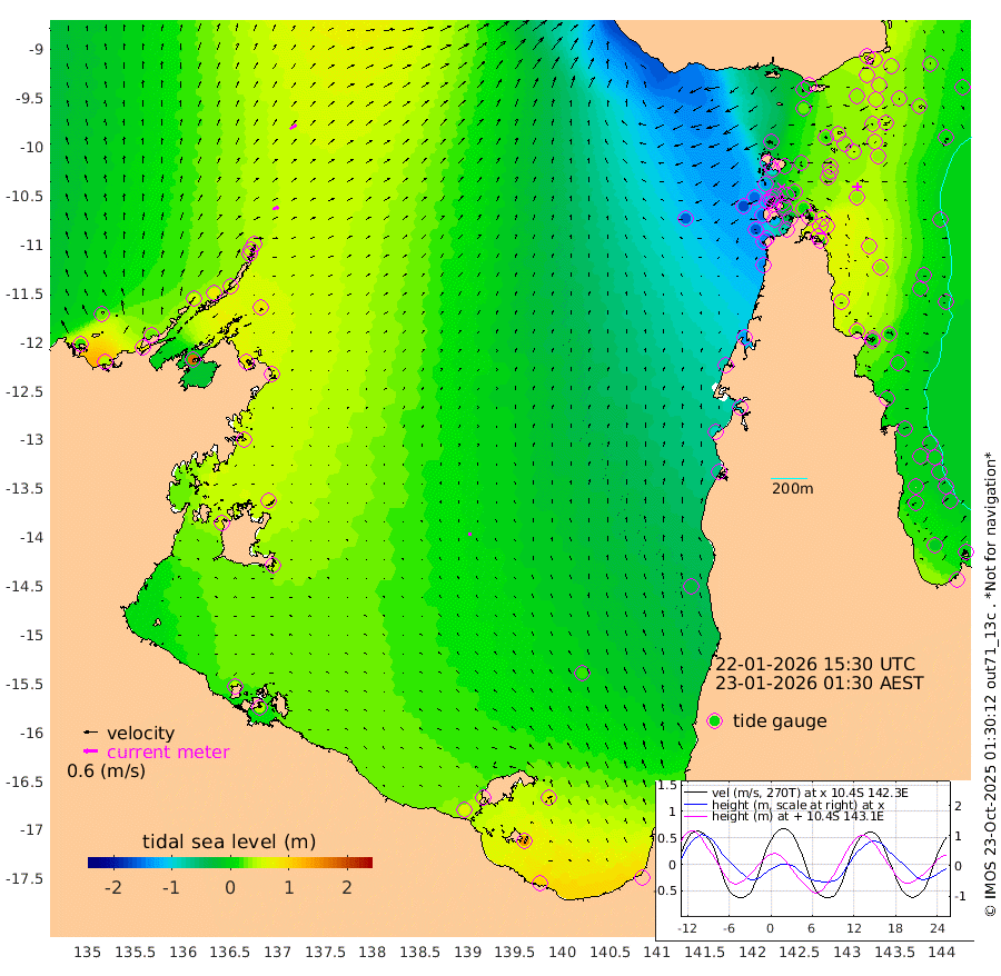 28cm/s 71T +3cm/s rms + 7cm/s -42T. ARA-GOC87 57m 15cm/s -8T +3cm/s rms + 2cm/s -2T. ARA-GOC87 60m 33cm/s 59T +2cm/s rms + 3cm/s 61T. ARA-GOC87 47m 55cm Daru 54cm Bobo Island 10cm Meer Island Barge 27cm Bramble Cay 42cm Unnamed Cay 43cm Pearce Cay 35cm Stephens Island 42cm Merrie England Shoals 47cm Mutacomal Reef 35cm Darnley Island Barge 8cm East Cay 44cm Yorke Island Barge 36cm Rennel Island 44cm Aureed Island 37cm Dungeness Reef 39cm Zagai Island 18cm Yam Island 2cm Dauan Island 4cm Saibai Island 23cm Phipi Reef 35cm Warrior Reef - West -26cm Mabuiag Island Barge 34cm Half Way Island 42cm Coconut Island 32cm Dugong Islet 30cm Poll Island 23cm Kirkcaldie Reef 18cm Suarji Island 34cm Sue Islet -135cm Hawkesbury Island -2cm Alert Patches 0cm Twin Island -101cm Badu Island 5cm St Pauls (Moa Island) -91cm Kubin (Moa Island) -33cm Ince Point -56cm Thursday Island -49cm Nardana Patches -84cm Turtle Head -96cm Round Island -135cm Goods Island -167cm Booby Island -157cm White Rocks Area -161cm Carpentaria -7cm Papou Point -157cm Bampfield Head -140cm Crab Island -163cm Red Wallis Island -118cm Packe Island 41cm Harrington Reef -148cm Herald Camp 10cm Sharp Point -80cm Red Island Point -30cm Possession Island 10cm Alpha Rock 21cm Frederick Point 50cm Wyborn Reef Light 47cm Tetley Island 6cm Triangle Reef 47cm Turtle Head Island -2cm Maclennan Cay -10cm Raine Island 39cm Mcsweeny Reef 35cm Collette Reef 12cm Shadwell Reef 40cm Hannibal Island 25cm Round Point -137cm Vrilya Point 13cm Cape Grenville 11cm Hicks Island -5cm Sir Charles Hardy Island 5cm Harvey Island 3cm Kay Reef -3cm Rocky Island -11cm Chapman Island -13cm Ham Reef -5cm Jubilee Reef -2cm Night Island -15cm Unnamed Reef No. 3 -4cm Morris Island -9cm 1st 3 Mile Opening -8cm Creech Reef 6cm Fife Island -8cm Eden Reef -6cm Stanley Island -2cm Normanby River 21cm Yabooma Island 40cm Hutchison River 29cm Elcho Island 23cm North West Crocodile Island 44cm Cape Wessel 58cm Stevens Island 81cm Guluwuru Island 47cm Hopeful Bay 49cm Auster Point 45cm Two Island Bay 77cm Cadell Strait 179cm Mallison Island 78cm Melville Bay (Gove Harbour) 78cm Truant Island 64cm Cape Arnhem 66cm Cape Grey 66cm Hawk Island 65cm Milner Bay (Groote Eylandt) 52cm Cape Beatrice 47cm West Island 45cm Centre Island 66cm Mornington Island 61cm West Wellesley Islands 78cm Bountiful Island 102cm Albert River Mouth 146cm Sweers Island 97cm Karumba 19cm Nassau River Offshore -26cm Christmas Creek -67cm Archer River -86cm Boyd Point -97cm Weipa (Humbug Point) -80cm Pennefather River -130cm Cullen Point