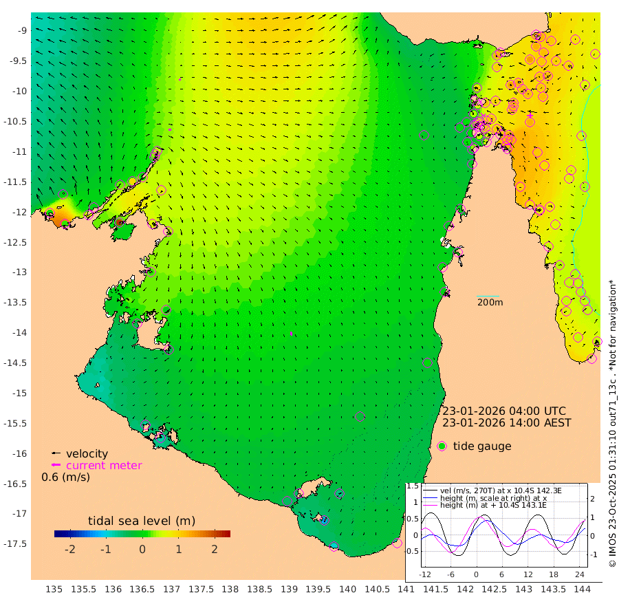 19cm/s 95T +3cm/s rms + 7cm/s -42T. ARA-GOC87 57m 25cm/s 167T +3cm/s rms + 2cm/s -2T. ARA-GOC87 60m 11cm/s 72T +2cm/s rms + 3cm/s 61T. ARA-GOC87 47m 132cm Daru 122cm Bobo Island 64cm Meer Island Barge 87cm Bramble Cay 114cm Unnamed Cay 110cm Pearce Cay 105cm Stephens Island 107cm Merrie England Shoals 127cm Mutacomal Reef 99cm Darnley Island Barge 69cm East Cay 113cm Yorke Island Barge 116cm Rennel Island 110cm Aureed Island 118cm Dungeness Reef 125cm Zagai Island 128cm Yam Island 122cm Dauan Island 116cm Saibai Island 103cm Phipi Reef 137cm Warrior Reef - West 84cm Mabuiag Island Barge 113cm Half Way Island 118cm Coconut Island 123cm Dugong Islet 120cm Poll Island 122cm Kirkcaldie Reef 105cm Suarji Island 122cm Sue Islet 44cm Hawkesbury Island 98cm Alert Patches 107cm Twin Island 51cm Badu Island 113cm St Pauls (Moa Island) 65cm Kubin (Moa Island) 87cm Ince Point 72cm Thursday Island 77cm Nardana Patches 60cm Turtle Head 42cm Round Island 30cm Goods Island 4cm Booby Island 10cm White Rocks Area -8cm Carpentaria 98cm Papou Point 10cm Bampfield Head 2cm Crab Island 13cm Red Wallis Island 47cm Packe Island 124cm Harrington Reef 33cm Herald Camp 33cm Sharp Point 48cm Red Island Point 66cm Possession Island 109cm Alpha Rock 117cm Frederick Point 130cm Wyborn Reef Light 131cm Tetley Island 66cm Triangle Reef 125cm Turtle Head Island 65cm Maclennan Cay 42cm Raine Island 106cm Mcsweeny Reef 94cm Collette Reef 65cm Shadwell Reef 99cm Hannibal Island 86cm Round Point -9cm Vrilya Point 73cm Cape Grenville 73cm Hicks Island 82cm Sir Charles Hardy Island 24cm Harvey Island 61cm Kay Reef 51cm Rocky Island 42cm Chapman Island 44cm Ham Reef 52cm Jubilee Reef 46cm Night Island 44cm Unnamed Reef No. 3 51cm Morris Island 46cm 1st 3 Mile Opening 49cm Creech Reef 59cm Fife Island 49cm Eden Reef 50cm Stanley Island 57cm Normanby River 8cm Yabooma Island 22cm Hutchison River 0cm Elcho Island -2cm North West Crocodile Island 46cm Cape Wessel 28cm Stevens Island 91cm Guluwuru Island 8cm Hopeful Bay 28cm Auster Point 37cm Two Island Bay 68cm Cadell Strait 209cm Mallison Island 65cm Melville Bay (Gove Harbour) 73cm Truant Island 50cm Cape Arnhem 19cm Cape Grey -2cm Hawk Island -42cm Milner Bay (Groote Eylandt) -40cm Cape Beatrice -70cm West Island -82cm Centre Island -54cm Mornington Island -49cm West Wellesley Islands -66cm Bountiful Island -93cm Albert River Mouth -124cm Sweers Island -94cm Karumba -26cm Nassau River Offshore 3cm Christmas Creek -4cm Archer River 11cm Boyd Point 2cm Weipa (Humbug Point) -10cm Pennefather River -3cm Cullen Point