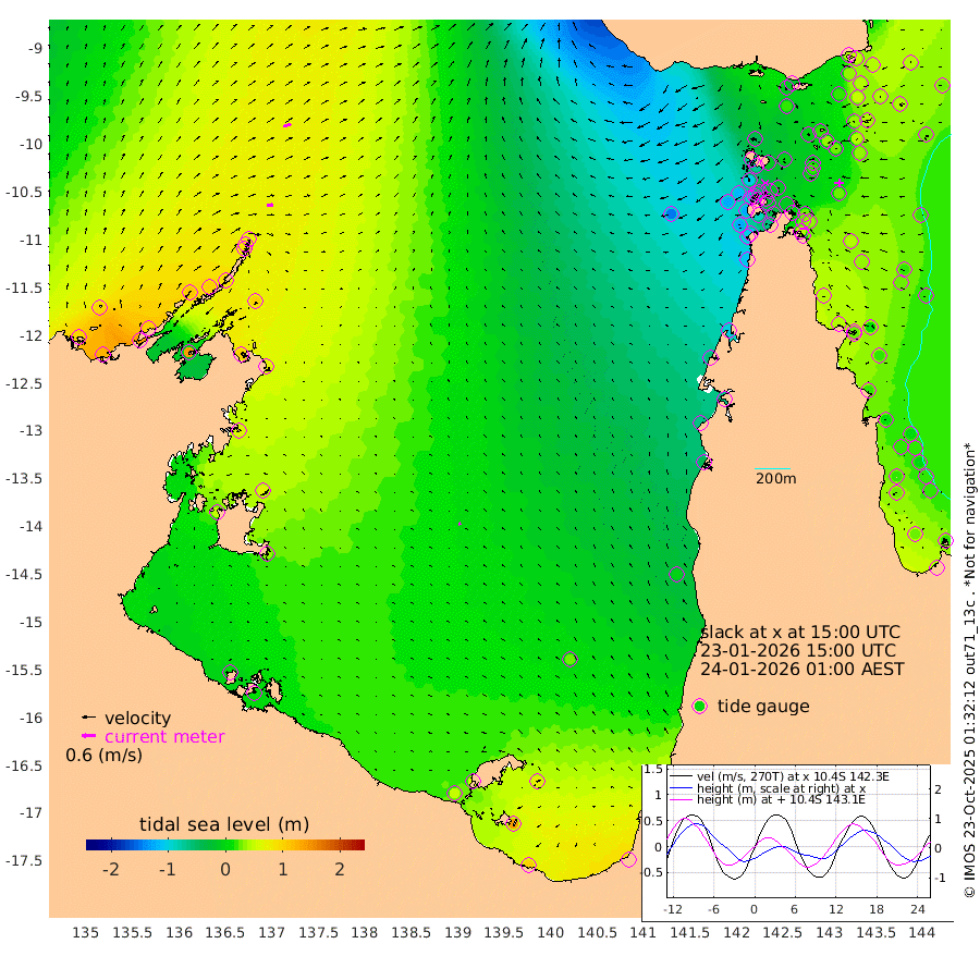 30cm/s 88T +3cm/s rms + 7cm/s -42T. ARA-GOC87 57m 11cm/s -38T +3cm/s rms + 2cm/s -2T. ARA-GOC87 60m 34cm/s 72T +2cm/s rms + 3cm/s 61T. ARA-GOC87 47m 44cm Daru 47cm Bobo Island 29cm Meer Island Barge 38cm Bramble Cay 40cm Unnamed Cay 48cm Pearce Cay 42cm Stephens Island 40cm Merrie England Shoals 33cm Mutacomal Reef 40cm Darnley Island Barge 27cm East Cay 40cm Yorke Island Barge 35cm Rennel Island 40cm Aureed Island 33cm Dungeness Reef 16cm Zagai Island 0cm Yam Island -8cm Dauan Island -22cm Saibai Island 16cm Phipi Reef 16cm Warrior Reef - West -41cm Mabuiag Island Barge 34cm Half Way Island 29cm Coconut Island 27cm Dugong Islet 17cm Poll Island 11cm Kirkcaldie Reef -1cm Suarji Island 10cm Sue Islet -103cm Hawkesbury Island -16cm Alert Patches -14cm Twin Island -77cm Badu Island -13cm St Pauls (Moa Island) -68cm Kubin (Moa Island) -38cm Ince Point -53cm Thursday Island -48cm Nardana Patches -64cm Turtle Head -75cm Round Island -96cm Goods Island -124cm Booby Island -117cm White Rocks Area -144cm Carpentaria -20cm Papou Point -122cm Bampfield Head -103cm Crab Island -124cm Red Wallis Island -86cm Packe Island 30cm Harrington Reef -112cm Herald Camp -4cm Sharp Point -67cm Red Island Point -31cm Possession Island -13cm Alpha Rock 6cm Frederick Point 34cm Wyborn Reef Light 28cm Tetley Island 18cm Triangle Reef 42cm Turtle Head Island 16cm Maclennan Cay 15cm Raine Island 38cm Mcsweeny Reef 36cm Collette Reef 25cm Shadwell Reef 43cm Hannibal Island 38cm Round Point -108cm Vrilya Point 25cm Cape Grenville 29cm Hicks Island 12cm Sir Charles Hardy Island 9cm Harvey Island 18cm Kay Reef 19cm Rocky Island 13cm Chapman Island 7cm Ham Reef 16cm Jubilee Reef 20cm Night Island 7cm Unnamed Reef No. 3 20cm Morris Island 18cm 1st 3 Mile Opening 16cm Creech Reef 29cm Fife Island 25cm Eden Reef 18cm Stanley Island 24cm Normanby River 96cm Yabooma Island 123cm Hutchison River 101cm Elcho Island 92cm North West Crocodile Island 71cm Cape Wessel 110cm Stevens Island 99cm Guluwuru Island 96cm Hopeful Bay 89cm Auster Point 89cm Two Island Bay 140cm Cadell Strait 139cm Mallison Island 99cm Melville Bay (Gove Harbour) 98cm Truant Island 73cm Cape Arnhem 62cm Cape Grey 61cm Hawk Island 47cm Milner Bay (Groote Eylandt) 37cm Cape Beatrice 15cm West Island 13cm Centre Island 55cm Mornington Island 48cm West Wellesley Islands 71cm Bountiful Island 104cm Albert River Mouth 136cm Sweers Island 100cm Karumba 29cm Nassau River Offshore -7cm Christmas Creek -41cm Archer River -63cm Boyd Point -62cm Weipa (Humbug Point) -57cm Pennefather River -101cm Cullen Point