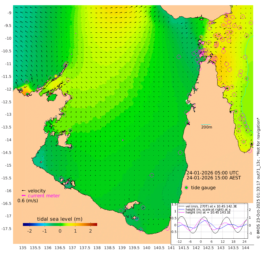 14cm/s 76T +3cm/s rms + 7cm/s -42T. ARA-GOC87 57m 21cm/s 166T +3cm/s rms + 2cm/s -2T. ARA-GOC87 60m 10cm/s 42T +2cm/s rms + 3cm/s 61T. ARA-GOC87 47m 100cm Daru 91cm Bobo Island 47cm Meer Island Barge 62cm Bramble Cay 83cm Unnamed Cay 76cm Pearce Cay 77cm Stephens Island 77cm Merrie England Shoals 93cm Mutacomal Reef 75cm Darnley Island Barge 50cm East Cay 86cm Yorke Island Barge 84cm Rennel Island 80cm Aureed Island 84cm Dungeness Reef 96cm Zagai Island 98cm Yam Island 92cm Dauan Island 94cm Saibai Island 75cm Phipi Reef 106cm Warrior Reef - West 55cm Mabuiag Island Barge 82cm Half Way Island 84cm Coconut Island 90cm Dugong Islet 85cm Poll Island 90cm Kirkcaldie Reef 68cm Suarji Island 92cm Sue Islet 5cm Hawkesbury Island 60cm Alert Patches 70cm Twin Island 11cm Badu Island 76cm St Pauls (Moa Island) 27cm Kubin (Moa Island) 51cm Ince Point 36cm Thursday Island 40cm Nardana Patches 20cm Turtle Head 6cm Round Island -10cm Goods Island -33cm Booby Island -31cm White Rocks Area -31cm Carpentaria 67cm Papou Point -31cm Bampfield Head -26cm Crab Island -24cm Red Wallis Island 7cm Packe Island 88cm Harrington Reef 0cm Herald Camp 26cm Sharp Point 19cm Red Island Point 33cm Possession Island 76cm Alpha Rock 81cm Frederick Point 93cm Wyborn Reef Light 94cm Tetley Island 46cm Triangle Reef 87cm Turtle Head Island 46cm Maclennan Cay 27cm Raine Island 77cm Mcsweeny Reef 69cm Collette Reef 46cm Shadwell Reef 72cm Hannibal Island 59cm Round Point -31cm Vrilya Point 51cm Cape Grenville 52cm Hicks Island 61cm Sir Charles Hardy Island 18cm Harvey Island 42cm Kay Reef 35cm Rocky Island 26cm Chapman Island 31cm Ham Reef 37cm Jubilee Reef 31cm Night Island 29cm Unnamed Reef No. 3 35cm Morris Island 29cm 1st 3 Mile Opening 33cm Creech Reef 42cm Fife Island 32cm Eden Reef 34cm Stanley Island 39cm Normanby River -21cm Yabooma Island -12cm Hutchison River -26cm Elcho Island -25cm North West Crocodile Island 27cm Cape Wessel 1cm Stevens Island 75cm Guluwuru Island -13cm Hopeful Bay 6cm Auster Point 19cm Two Island Bay 42cm Cadell Strait 200cm Mallison Island 49cm Melville Bay (Gove Harbour) 54cm Truant Island 40cm Cape Arnhem 18cm Cape Grey 0cm Hawk Island -28cm Milner Bay (Groote Eylandt) -26cm Cape Beatrice -44cm West Island -56cm Centre Island -29cm Mornington Island -27cm West Wellesley Islands -39cm Bountiful Island -59cm Albert River Mouth -85cm Sweers Island -59cm Karumba -13cm Nassau River Offshore 4cm Christmas Creek -13cm Archer River -3cm Boyd Point -14cm Weipa (Humbug Point) -25cm Pennefather River -22cm Cullen Point