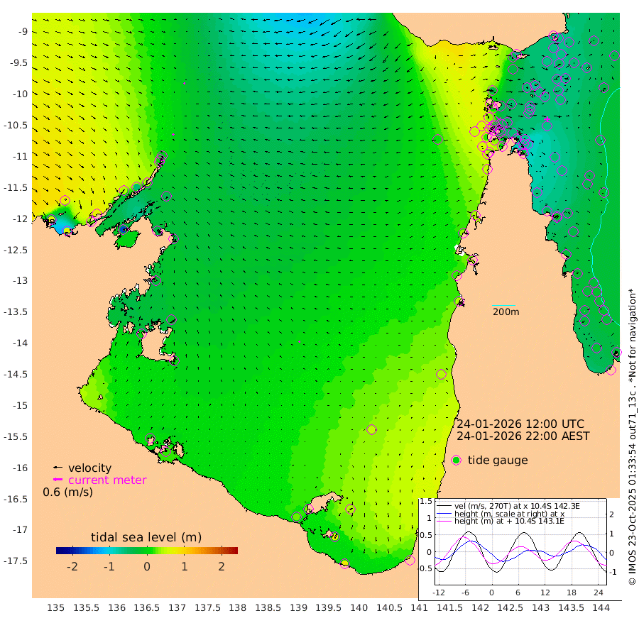 12cm/s -137T +3cm/s rms + 7cm/s -42T. ARA-GOC87 57m 11cm/s -60T +3cm/s rms + 2cm/s -2T. ARA-GOC87 60m 11cm/s -158T +2cm/s rms + 3cm/s 61T. ARA-GOC87 47m -70cm Daru -66cm Bobo Island -35cm Meer Island Barge -43cm Bramble Cay -62cm Unnamed Cay -48cm Pearce Cay -54cm Stephens Island -57cm Merrie England Shoals -65cm Mutacomal Reef -59cm Darnley Island Barge -33cm East Cay -67cm Yorke Island Barge -57cm Rennel Island -60cm Aureed Island -54cm Dungeness Reef -69cm Zagai Island -59cm Yam Island -43cm Dauan Island -62cm Saibai Island -31cm Phipi Reef -63cm Warrior Reef - West -33cm Mabuiag Island Barge -53cm Half Way Island -62cm Coconut Island -60cm Dugong Islet -55cm Poll Island -57cm Kirkcaldie Reef -53cm Suarji Island -73cm Sue Islet 31cm Hawkesbury Island -43cm Alert Patches -45cm Twin Island 23cm Badu Island -48cm St Pauls (Moa Island) 11cm Kubin (Moa Island) -25cm Ince Point -10cm Thursday Island -15cm Nardana Patches 11cm Turtle Head 13cm Round Island 40cm Goods Island 52cm Booby Island 53cm White Rocks Area 15cm Carpentaria -42cm Papou Point 21cm Bampfield Head 51cm Crab Island 53cm Red Wallis Island 35cm Packe Island -65cm Harrington Reef 29cm Herald Camp -19cm Sharp Point 11cm Red Island Point -23cm Possession Island -57cm Alpha Rock -56cm Frederick Point -72cm Wyborn Reef Light -72cm Tetley Island -32cm Triangle Reef -66cm Turtle Head Island -31cm Maclennan Cay -16cm Raine Island -58cm Mcsweeny Reef -54cm Collette Reef -36cm Shadwell Reef -56cm Hannibal Island -38cm Round Point 46cm Vrilya Point -39cm Cape Grenville -35cm Hicks Island -44cm Sir Charles Hardy Island -13cm Harvey Island -34cm Kay Reef -25cm Rocky Island -16cm Chapman Island -24cm Ham Reef -27cm Jubilee Reef -19cm Night Island -19cm Unnamed Reef No. 3 -24cm Morris Island -22cm 1st 3 Mile Opening -23cm Creech Reef -23cm Fife Island -20cm Eden Reef -25cm Stanley Island -24cm Normanby River 73cm Yabooma Island 67cm Hutchison River 68cm Elcho Island 74cm North West Crocodile Island -8cm Cape Wessel 39cm Stevens Island -54cm Guluwuru Island 41cm Hopeful Bay 14cm Auster Point 15cm Two Island Bay 25cm Cadell Strait -168cm Mallison Island -31cm Melville Bay (Gove Harbour) -38cm Truant Island -33cm Cape Arnhem -29cm Cape Grey -11cm Hawk Island 1cm Milner Bay (Groote Eylandt) 8cm Cape Beatrice 10cm West Island 16cm Centre Island 33cm Mornington Island 30cm West Wellesley Islands 42cm Bountiful Island 81cm Albert River Mouth 72cm Sweers Island 83cm Karumba 51cm Nassau River Offshore 38cm Christmas Creek 39cm Archer River 21cm Boyd Point 40cm Weipa (Humbug Point) 37cm Pennefather River 39cm Cullen Point
