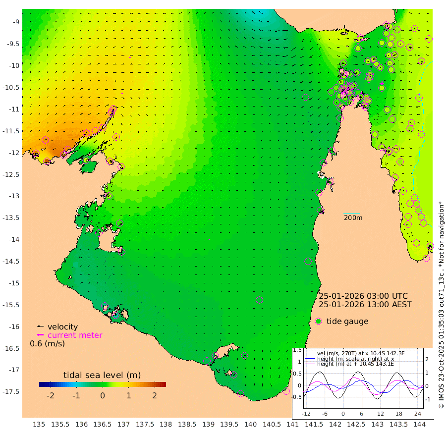 15cm/s 103T +3cm/s rms + 7cm/s -42T. ARA-GOC87 57m 9cm/s -149T +3cm/s rms + 2cm/s -2T. ARA-GOC87 60m 16cm/s 86T +2cm/s rms + 3cm/s 61T. ARA-GOC87 47m 43cm Daru 47cm Bobo Island 43cm Meer Island Barge 44cm Bramble Cay 41cm Unnamed Cay 54cm Pearce Cay 48cm Stephens Island 31cm Merrie England Shoals 33cm Mutacomal Reef 44cm Darnley Island Barge 48cm East Cay 44cm Yorke Island Barge 46cm Rennel Island 44cm Aureed Island 44cm Dungeness Reef 38cm Zagai Island 40cm Yam Island 55cm Dauan Island 42cm Saibai Island 43cm Phipi Reef 47cm Warrior Reef - West 30cm Mabuiag Island Barge 38cm Half Way Island 35cm Coconut Island 42cm Dugong Islet 36cm Poll Island 32cm Kirkcaldie Reef 35cm Suarji Island 31cm Sue Islet 44cm Hawkesbury Island 23cm Alert Patches 27cm Twin Island 39cm Badu Island 30cm St Pauls (Moa Island) 41cm Kubin (Moa Island) 26cm Ince Point 23cm Thursday Island 25cm Nardana Patches 33cm Turtle Head 33cm Round Island 36cm Goods Island 21cm Booby Island 28cm White Rocks Area -18cm Carpentaria 31cm Papou Point 31cm Bampfield Head 6cm Crab Island 17cm Red Wallis Island 26cm Packe Island 37cm Harrington Reef 37cm Herald Camp -3cm Sharp Point 27cm Red Island Point 26cm Possession Island 20cm Alpha Rock 32cm Frederick Point 38cm Wyborn Reef Light 36cm Tetley Island 38cm Triangle Reef 46cm Turtle Head Island 44cm Maclennan Cay 39cm Raine Island 41cm Mcsweeny Reef 36cm Collette Reef 35cm Shadwell Reef 38cm Hannibal Island 45cm Round Point -18cm Vrilya Point 34cm Cape Grenville 47cm Hicks Island 54cm Sir Charles Hardy Island 13cm Harvey Island 35cm Kay Reef 43cm Rocky Island 41cm Chapman Island 40cm Ham Reef 41cm Jubilee Reef 32cm Night Island 36cm Unnamed Reef No. 3 42cm Morris Island 43cm 1st 3 Mile Opening 40cm Creech Reef 45cm Fife Island 49cm Eden Reef 37cm Stanley Island 48cm Normanby River 167cm Yabooma Island 194cm Hutchison River 154cm Elcho Island 149cm North West Crocodile Island 113cm Cape Wessel 136cm Stevens Island 115cm Guluwuru Island 122cm Hopeful Bay 120cm Auster Point 126cm Two Island Bay 174cm Cadell Strait 51cm Mallison Island 103cm Melville Bay (Gove Harbour) 109cm Truant Island 66cm Cape Arnhem 41cm Cape Grey 18cm Hawk Island -20cm Milner Bay (Groote Eylandt) -24cm Cape Beatrice -68cm West Island -78cm Centre Island -47cm Mornington Island -42cm West Wellesley Islands -17cm Bountiful Island -29cm Albert River Mouth -44cm Sweers Island -33cm Karumba -27cm Nassau River Offshore -12cm Christmas Creek -6cm Archer River 3cm Boyd Point 12cm Weipa (Humbug Point) -27cm Pennefather River -6cm Cullen Point
