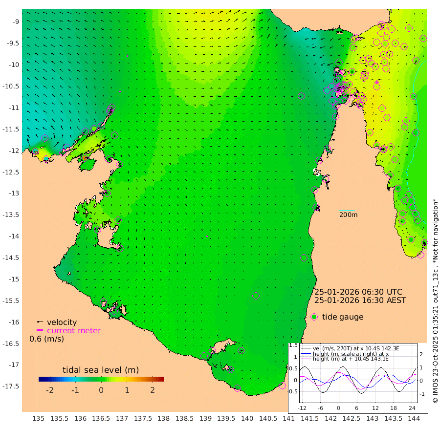 10cm/s 23T +3cm/s rms + 7cm/s -42T. ARA-GOC87 57m 13cm/s 160T +3cm/s rms + 2cm/s -2T. ARA-GOC87 60m 11cm/s -8T +2cm/s rms + 3cm/s 61T. ARA-GOC87 47m 60cm Daru 53cm Bobo Island 26cm Meer Island Barge 35cm Bramble Cay 49cm Unnamed Cay 36cm Pearce Cay 44cm Stephens Island 47cm Merrie England Shoals 56cm Mutacomal Reef 46cm Darnley Island Barge 28cm East Cay 53cm Yorke Island Barge 46cm Rennel Island 44cm Aureed Island 42cm Dungeness Reef 53cm Zagai Island 56cm Yam Island 39cm Dauan Island 51cm Saibai Island 27cm Phipi Reef 58cm Warrior Reef - West 14cm Mabuiag Island Barge 48cm Half Way Island 44cm Coconut Island 52cm Dugong Islet 42cm Poll Island 53cm Kirkcaldie Reef 21cm Suarji Island 55cm Sue Islet -39cm Hawkesbury Island 16cm Alert Patches 26cm Twin Island -37cm Badu Island 29cm St Pauls (Moa Island) -19cm Kubin (Moa Island) 8cm Ince Point -6cm Thursday Island -2cm Nardana Patches -25cm Turtle Head -34cm Round Island -54cm Goods Island -69cm Booby Island -71cm White Rocks Area -45cm Carpentaria 28cm Papou Point -72cm Bampfield Head -51cm Crab Island -58cm Red Wallis Island -34cm Packe Island 48cm Harrington Reef -36cm Herald Camp 18cm Sharp Point -13cm Red Island Point -5cm Possession Island 38cm Alpha Rock 38cm Frederick Point 51cm Wyborn Reef Light 51cm Tetley Island 21cm Triangle Reef 42cm Turtle Head Island 24cm Maclennan Cay 10cm Raine Island 43cm Mcsweeny Reef 40cm Collette Reef 25cm Shadwell Reef 43cm Hannibal Island 30cm Round Point -46cm Vrilya Point 30cm Cape Grenville 28cm Hicks Island 36cm Sir Charles Hardy Island 11cm Harvey Island 25cm Kay Reef 17cm Rocky Island 8cm Chapman Island 16cm Ham Reef 19cm Jubilee Reef 15cm Night Island 13cm Unnamed Reef No. 3 16cm Morris Island 9cm 1st 3 Mile Opening 16cm Creech Reef 20cm Fife Island 14cm Eden Reef 18cm Stanley Island 21cm Normanby River -80cm Yabooma Island -83cm Hutchison River -79cm Elcho Island -74cm North West Crocodile Island -15cm Cape Wessel -51cm Stevens Island 29cm Guluwuru Island -55cm Hopeful Bay -40cm Auster Point -24cm Two Island Bay -23cm Cadell Strait 164cm Mallison Island 5cm Melville Bay (Gove Harbour) 7cm Truant Island 10cm Cape Arnhem 5cm Cape Grey -4cm Hawk Island -11cm Milner Bay (Groote Eylandt) -7cm Cape Beatrice -4cm West Island -11cm Centre Island 5cm Mornington Island 3cm West Wellesley Islands -8cm Bountiful Island -20cm Albert River Mouth -39cm Sweers Island -18cm Karumba 5cm Nassau River Offshore 8cm Christmas Creek -19cm Archer River -17cm Boyd Point -30cm Weipa (Humbug Point) -32cm Pennefather River -36cm Cullen Point