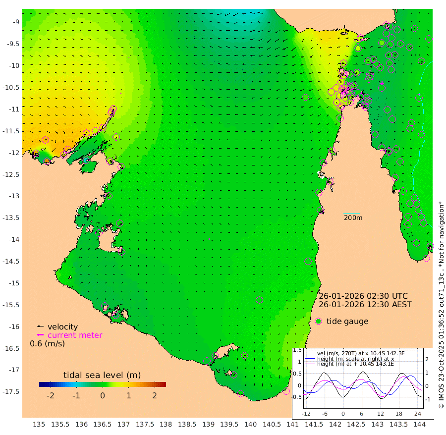 6cm/s -111T +3cm/s rms + 7cm/s -42T. ARA-GOC87 57m 8cm/s -105T +3cm/s rms + 2cm/s -2T. ARA-GOC87 60m 2cm/s -133T +2cm/s rms + 3cm/s 61T. ARA-GOC87 47m -7cm Daru -4cm Bobo Island 3cm Meer Island Barge -3cm Bramble Cay -9cm Unnamed Cay 4cm Pearce Cay -4cm Stephens Island -20cm Merrie England Shoals -14cm Mutacomal Reef -7cm Darnley Island Barge 7cm East Cay -6cm Yorke Island Barge 1cm Rennel Island 0cm Aureed Island 7cm Dungeness Reef 14cm Zagai Island 16cm Yam Island 55cm Dauan Island 41cm Saibai Island 46cm Phipi Reef 25cm Warrior Reef - West 41cm Mabuiag Island Barge -10cm Half Way Island -2cm Coconut Island -3cm Dugong Islet 7cm Poll Island -2cm Kirkcaldie Reef 30cm Suarji Island 1cm Sue Islet 73cm Hawkesbury Island 19cm Alert Patches 16cm Twin Island 68cm Badu Island 21cm St Pauls (Moa Island) 58cm Kubin (Moa Island) 30cm Ince Point 35cm Thursday Island 35cm Nardana Patches 54cm Turtle Head 63cm Round Island 69cm Goods Island 65cm Booby Island 70cm White Rocks Area 19cm Carpentaria 21cm Papou Point 79cm Bampfield Head 41cm Crab Island 58cm Red Wallis Island 53cm Packe Island -7cm Harrington Reef 75cm Herald Camp -5cm Sharp Point 44cm Red Island Point 35cm Possession Island 4cm Alpha Rock 7cm Frederick Point -7cm Wyborn Reef Light -5cm Tetley Island 8cm Triangle Reef -5cm Turtle Head Island 9cm Maclennan Cay 11cm Raine Island -6cm Mcsweeny Reef -8cm Collette Reef 0cm Shadwell Reef -12cm Hannibal Island -1cm Round Point 13cm Vrilya Point -6cm Cape Grenville 6cm Hicks Island 14cm Sir Charles Hardy Island -1cm Harvey Island -4cm Kay Reef 10cm Rocky Island 15cm Chapman Island 11cm Ham Reef 7cm Jubilee Reef 2cm Night Island 8cm Unnamed Reef No. 3 7cm Morris Island 12cm 1st 3 Mile Opening 7cm Creech Reef 8cm Fife Island 9cm Eden Reef 1cm Stanley Island 6cm Normanby River 139cm Yabooma Island 154cm Hutchison River 127cm Elcho Island 125cm North West Crocodile Island 69cm Cape Wessel 96cm Stevens Island 45cm Guluwuru Island 93cm Hopeful Bay 83cm Auster Point 80cm Two Island Bay 104cm Cadell Strait -83cm Mallison Island 51cm Melville Bay (Gove Harbour) 53cm Truant Island 28cm Cape Arnhem 19cm Cape Grey 9cm Hawk Island -13cm Milner Bay (Groote Eylandt) -14cm Cape Beatrice -41cm West Island -46cm Centre Island -21cm Mornington Island -18cm West Wellesley Islands 18cm Bountiful Island 8cm Albert River Mouth 0cm Sweers Island 8cm Karumba -7cm Nassau River Offshore 4cm Christmas Creek 15cm Archer River 22cm Boyd Point 38cm Weipa (Humbug Point) -7cm Pennefather River 27cm Cullen Point
