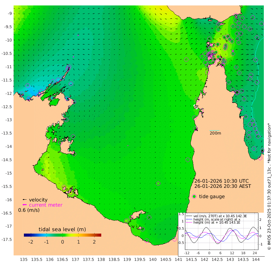 16cm/s -72T +3cm/s rms + 7cm/s -42T. ARA-GOC87 57m 9cm/s 20T +3cm/s rms + 2cm/s -2T. ARA-GOC87 60m 15cm/s -92T +2cm/s rms + 3cm/s 61T. ARA-GOC87 47m -24cm Daru -30cm Bobo Island -45cm Meer Island Barge -35cm Bramble Cay -26cm Unnamed Cay -35cm Pearce Cay -35cm Stephens Island -17cm Merrie England Shoals -8cm Mutacomal Reef -40cm Darnley Island Barge -42cm East Cay -33cm Yorke Island Barge -25cm Rennel Island -33cm Aureed Island -24cm Dungeness Reef -19cm Zagai Island -4cm Yam Island -32cm Dauan Island -19cm Saibai Island -31cm Phipi Reef -23cm Warrior Reef - West -2cm Mabuiag Island Barge -17cm Half Way Island -18cm Coconut Island -16cm Dugong Islet -10cm Poll Island -2cm Kirkcaldie Reef -16cm Suarji Island -9cm Sue Islet 4cm Hawkesbury Island -3cm Alert Patches 1cm Twin Island -8cm Badu Island -2cm St Pauls (Moa Island) -5cm Kubin (Moa Island) 2cm Ince Point 5cm Thursday Island 2cm Nardana Patches -7cm Turtle Head -9cm Round Island -8cm Goods Island 2cm Booby Island 7cm White Rocks Area 21cm Carpentaria 2cm Papou Point -23cm Bampfield Head 13cm Crab Island 14cm Red Wallis Island 5cm Packe Island -13cm Harrington Reef -5cm Herald Camp 10cm Sharp Point 11cm Red Island Point -9cm Possession Island 7cm Alpha Rock -6cm Frederick Point -16cm Wyborn Reef Light -12cm Tetley Island -36cm Triangle Reef -25cm Turtle Head Island -39cm Maclennan Cay -44cm Raine Island -31cm Mcsweeny Reef -31cm Collette Reef -39cm Shadwell Reef -33cm Hannibal Island -35cm Round Point 28cm Vrilya Point -29cm Cape Grenville -41cm Hicks Island -46cm Sir Charles Hardy Island -11cm Harvey Island -33cm Kay Reef -44cm Rocky Island -44cm Chapman Island -42cm Ham Reef -43cm Jubilee Reef -37cm Night Island -38cm Unnamed Reef No. 3 -45cm Morris Island -51cm 1st 3 Mile Opening -44cm Creech Reef -48cm Fife Island -54cm Eden Reef -40cm Stanley Island -41cm Normanby River -89cm Yabooma Island -122cm Hutchison River -94cm Elcho Island -78cm North West Crocodile Island -74cm Cape Wessel -82cm Stevens Island -100cm Guluwuru Island -79cm Hopeful Bay -82cm Auster Point -78cm Two Island Bay -113cm Cadell Strait -91cm Mallison Island -92cm Melville Bay (Gove Harbour) -97cm Truant Island -68cm Cape Arnhem -45cm Cape Grey -30cm Hawk Island 6cm Milner Bay (Groote Eylandt) 13cm Cape Beatrice 50cm West Island 53cm Centre Island 20cm Mornington Island 23cm West Wellesley Islands 2cm Bountiful Island 12cm Albert River Mouth 4cm Sweers Island 16cm Karumba 17cm Nassau River Offshore 6cm Christmas Creek 0cm Archer River -6cm Boyd Point -11cm Weipa (Humbug Point) 17cm Pennefather River 15cm Cullen Point