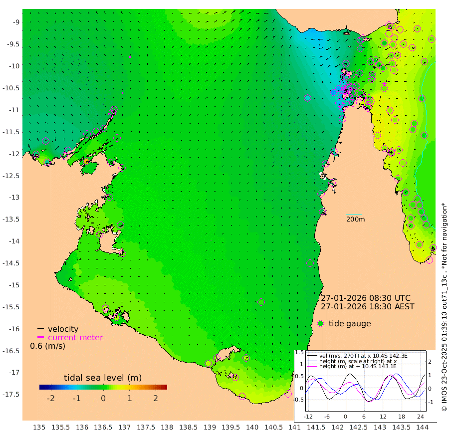 15cm/s 5T +3cm/s rms + 7cm/s -42T. ARA-GOC87 57m 5cm/s 9T +3cm/s rms + 2cm/s -2T. ARA-GOC87 60m 16cm/s 5T +2cm/s rms + 3cm/s 61T. ARA-GOC87 47m 33cm Daru 35cm Bobo Island 26cm Meer Island Barge 36cm Bramble Cay 41cm Unnamed Cay 24cm Pearce Cay 37cm Stephens Island 46cm Merrie England Shoals 39cm Mutacomal Reef 39cm Darnley Island Barge 30cm East Cay 36cm Yorke Island Barge 28cm Rennel Island 25cm Aureed Island 12cm Dungeness Reef -3cm Zagai Island 2cm Yam Island -55cm Dauan Island -34cm Saibai Island -45cm Phipi Reef -9cm Warrior Reef - West -56cm Mabuiag Island Barge 35cm Half Way Island 14cm Coconut Island 30cm Dugong Islet 2cm Poll Island 17cm Kirkcaldie Reef -32cm Suarji Island 12cm Sue Islet -104cm Hawkesbury Island -37cm Alert Patches -26cm Twin Island -112cm Badu Island -33cm St Pauls (Moa Island) -84cm Kubin (Moa Island) -52cm Ince Point -66cm Thursday Island -64cm Nardana Patches -89cm Turtle Head -90cm Round Island -116cm Goods Island -129cm Booby Island -125cm White Rocks Area -93cm Carpentaria -23cm Papou Point -132cm Bampfield Head -103cm Crab Island -118cm Red Wallis Island -96cm Packe Island 26cm Harrington Reef -98cm Herald Camp 2cm Sharp Point -63cm Red Island Point -51cm Possession Island -6cm Alpha Rock -3cm Frederick Point 25cm Wyborn Reef Light 20cm Tetley Island 12cm Triangle Reef 20cm Turtle Head Island 21cm Maclennan Cay 10cm Raine Island 31cm Mcsweeny Reef 33cm Collette Reef 22cm Shadwell Reef 40cm Hannibal Island 31cm Round Point -89cm Vrilya Point 35cm Cape Grenville 28cm Hicks Island 29cm Sir Charles Hardy Island 12cm Harvey Island 33cm Kay Reef 20cm Rocky Island 10cm Chapman Island 17cm Ham Reef 20cm Jubilee Reef 17cm Night Island 15cm Unnamed Reef No. 3 20cm Morris Island 8cm 1st 3 Mile Opening 18cm Creech Reef 18cm Fife Island 24cm Eden Reef 26cm Stanley Island 35cm Normanby River -62cm Yabooma Island -70cm Hutchison River -61cm Elcho Island -53cm North West Crocodile Island -15cm Cape Wessel -38cm Stevens Island 12cm Guluwuru Island -36cm Hopeful Bay -31cm Auster Point -17cm Two Island Bay -26cm Cadell Strait 113cm Mallison Island -5cm Melville Bay (Gove Harbour) -7cm Truant Island -1cm Cape Arnhem 11cm Cape Grey 12cm Hawk Island 24cm Milner Bay (Groote Eylandt) 27cm Cape Beatrice 44cm West Island 43cm Centre Island 45cm Mornington Island 43cm West Wellesley Islands 42cm Bountiful Island 45cm Albert River Mouth 45cm Sweers Island 45cm Karumba 21cm Nassau River Offshore -3cm Christmas Creek -41cm Archer River -54cm Boyd Point -66cm Weipa (Humbug Point) -59cm Pennefather River -80cm Cullen Point