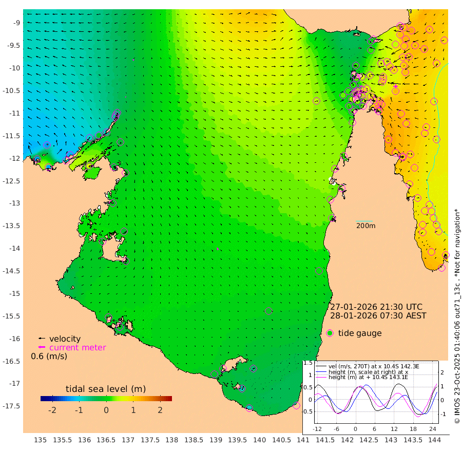 4cm/s 156T +3cm/s rms + 7cm/s -42T. ARA-GOC87 57m 21cm/s 154T +3cm/s rms + 2cm/s -2T. ARA-GOC87 60m 8cm/s -118T +2cm/s rms + 3cm/s 61T. ARA-GOC87 47m 108cm Daru 107cm Bobo Island 90cm Meer Island Barge 107cm Bramble Cay 123cm Unnamed Cay 109cm Pearce Cay 116cm Stephens Island 131cm Merrie England Shoals 119cm Mutacomal Reef 114cm Darnley Island Barge 92cm East Cay 111cm Yorke Island Barge 111cm Rennel Island 106cm Aureed Island 98cm Dungeness Reef 60cm Zagai Island 59cm Yam Island 3cm Dauan Island 8cm Saibai Island 21cm Phipi Reef 52cm Warrior Reef - West 15cm Mabuiag Island Barge 115cm Half Way Island 104cm Coconut Island 113cm Dugong Islet 84cm Poll Island 94cm Kirkcaldie Reef 68cm Suarji Island 84cm Sue Islet 17cm Hawkesbury Island 76cm Alert Patches 72cm Twin Island 11cm Badu Island 60cm St Pauls (Moa Island) 27cm Kubin (Moa Island) 52cm Ince Point 46cm Thursday Island 46cm Nardana Patches 38cm Turtle Head 26cm Round Island 26cm Goods Island 24cm Booby Island 22cm White Rocks Area 48cm Carpentaria 50cm Papou Point 42cm Bampfield Head 15cm Crab Island 21cm Red Wallis Island 33cm Packe Island 121cm Harrington Reef 20cm Herald Camp 15cm Sharp Point 23cm Red Island Point 54cm Possession Island 75cm Alpha Rock 90cm Frederick Point 113cm Wyborn Reef Light 106cm Tetley Island 78cm Triangle Reef 124cm Turtle Head Island 87cm Maclennan Cay 71cm Raine Island 114cm Mcsweeny Reef 111cm Collette Reef 90cm Shadwell Reef 124cm Hannibal Island 109cm Round Point 29cm Vrilya Point 109cm Cape Grenville 94cm Hicks Island 97cm Sir Charles Hardy Island 32cm Harvey Island 103cm Kay Reef 81cm Rocky Island 74cm Chapman Island 74cm Ham Reef 81cm Jubilee Reef 78cm Night Island 78cm Unnamed Reef No. 3 87cm Morris Island 84cm 1st 3 Mile Opening 86cm Creech Reef 78cm Fife Island 96cm Eden Reef 95cm Stanley Island 95cm Normanby River -128cm Yabooma Island -127cm Hutchison River -121cm Elcho Island -128cm North West Crocodile Island -57cm Cape Wessel -97cm Stevens Island -15cm Guluwuru Island -91cm Hopeful Bay -68cm Auster Point -76cm Two Island Bay -100cm Cadell Strait 82cm Mallison Island -29cm Melville Bay (Gove Harbour) -26cm Truant Island -13cm Cape Arnhem -13cm Cape Grey -15cm Hawk Island -26cm Milner Bay (Groote Eylandt) -21cm Cape Beatrice -14cm West Island -11cm Centre Island -22cm Mornington Island -18cm West Wellesley Islands -54cm Bountiful Island -93cm Albert River Mouth -93cm Sweers Island -89cm Karumba -12cm Nassau River Offshore 13cm Christmas Creek 22cm Archer River 30cm Boyd Point 19cm Weipa (Humbug Point) 36cm Pennefather River 20cm Cullen Point