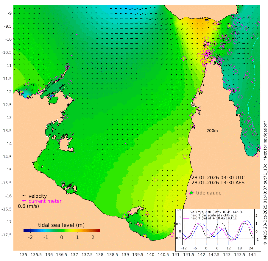 29cm/s -85T +3cm/s rms + 7cm/s -42T. ARA-GOC87 57m 13cm/s -118T +3cm/s rms + 2cm/s -2T. ARA-GOC87 60m 26cm/s -88T +2cm/s rms + 3cm/s 61T. ARA-GOC87 47m -38cm Daru -47cm Bobo Island -43cm Meer Island Barge -55cm Bramble Cay -56cm Unnamed Cay -48cm Pearce Cay -56cm Stephens Island -70cm Merrie England Shoals -50cm Mutacomal Reef -55cm Darnley Island Barge -43cm East Cay -47cm Yorke Island Barge -40cm Rennel Island -38cm Aureed Island -19cm Dungeness Reef 17cm Zagai Island 18cm Yam Island 95cm Dauan Island 77cm Saibai Island 83cm Phipi Reef 36cm Warrior Reef - West 66cm Mabuiag Island Barge -54cm Half Way Island -29cm Coconut Island -42cm Dugong Islet -7cm Poll Island -20cm Kirkcaldie Reef 36cm Suarji Island -10cm Sue Islet 77cm Hawkesbury Island 24cm Alert Patches 15cm Twin Island 84cm Badu Island 29cm St Pauls (Moa Island) 65cm Kubin (Moa Island) 40cm Ince Point 46cm Thursday Island 47cm Nardana Patches 67cm Turtle Head 77cm Round Island 78cm Goods Island 77cm Booby Island 75cm White Rocks Area 33cm Carpentaria 20cm Papou Point 89cm Bampfield Head 58cm Crab Island 71cm Red Wallis Island 66cm Packe Island -46cm Harrington Reef 94cm Herald Camp 6cm Sharp Point 50cm Red Island Point 41cm Possession Island 2cm Alpha Rock -9cm Frederick Point -42cm Wyborn Reef Light -34cm Tetley Island -26cm Triangle Reef -56cm Turtle Head Island -33cm Maclennan Cay -27cm Raine Island -49cm Mcsweeny Reef -49cm Collette Reef -37cm Shadwell Reef -61cm Hannibal Island -55cm Round Point 29cm Vrilya Point -53cm Cape Grenville -41cm Hicks Island -31cm Sir Charles Hardy Island -15cm Harvey Island -52cm Kay Reef -32cm Rocky Island -26cm Chapman Island -29cm Ham Reef -35cm Jubilee Reef -34cm Night Island -32cm Unnamed Reef No. 3 -38cm Morris Island -29cm 1st 3 Mile Opening -36cm Creech Reef -34cm Fife Island -47cm Eden Reef -46cm Stanley Island -52cm Normanby River 31cm Yabooma Island 30cm Hutchison River 24cm Elcho Island 27cm North West Crocodile Island -18cm Cape Wessel -5cm Stevens Island -37cm Guluwuru Island 6cm Hopeful Bay -8cm Auster Point -15cm Two Island Bay -15cm Cadell Strait -144cm Mallison Island -19cm Melville Bay (Gove Harbour) -24cm Truant Island -16cm Cape Arnhem -9cm Cape Grey -1cm Hawk Island -5cm Milner Bay (Groote Eylandt) 2cm Cape Beatrice 0cm West Island -2cm Centre Island 37cm Mornington Island 36cm West Wellesley Islands 76cm Bountiful Island 77cm Albert River Mouth 68cm Sweers Island 83cm Karumba 46cm Nassau River Offshore 48cm Christmas Creek 41cm Archer River 43cm Boyd Point 61cm Weipa (Humbug Point) 10cm Pennefather River 49cm Cullen Point