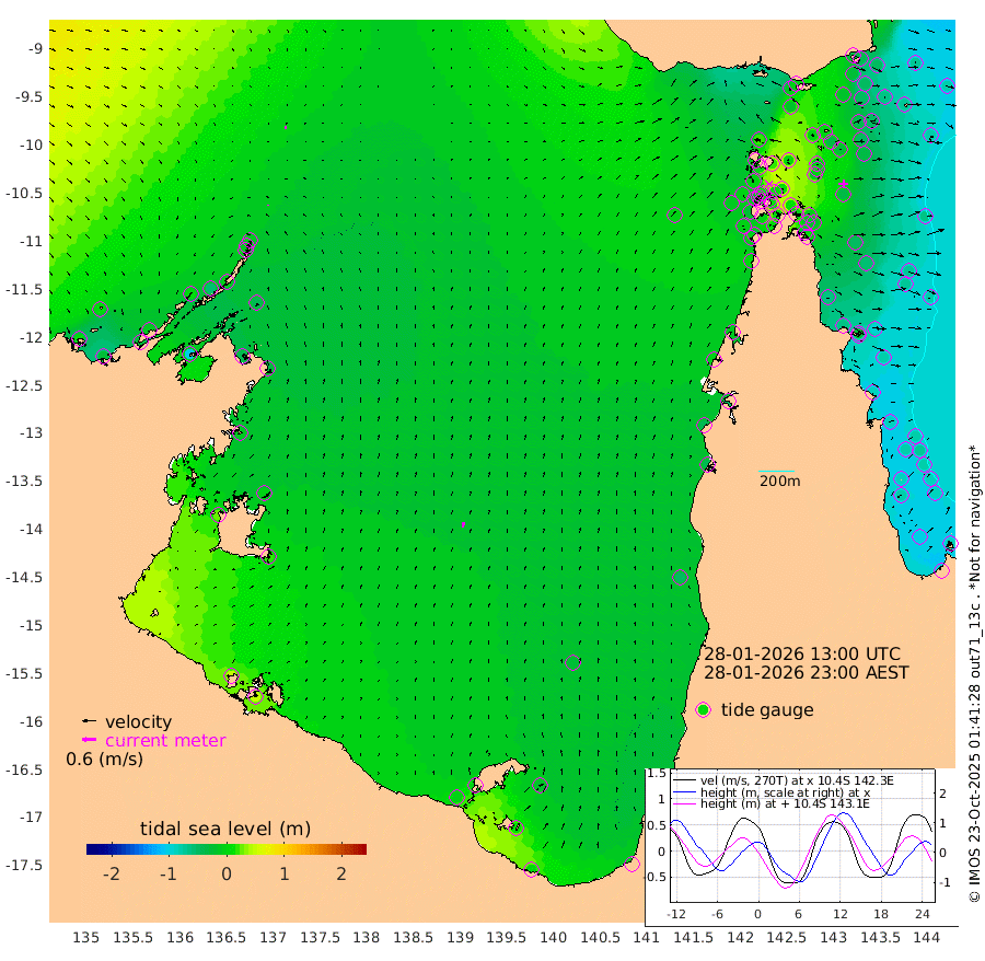 3cm/s 17T +3cm/s rms + 7cm/s -42T. ARA-GOC87 57m 25cm/s 11T +3cm/s rms + 2cm/s -2T. ARA-GOC87 60m 5cm/s 97T +2cm/s rms + 3cm/s 61T. ARA-GOC87 47m -36cm Daru -41cm Bobo Island -80cm Meer Island Barge -69cm Bramble Cay -52cm Unnamed Cay -50cm Pearce Cay -62cm Stephens Island -49cm Merrie England Shoals -26cm Mutacomal Reef -70cm Darnley Island Barge -80cm East Cay -52cm Yorke Island Barge -43cm Rennel Island -46cm Aureed Island -32cm Dungeness Reef -7cm Zagai Island 0cm Yam Island -12cm Dauan Island -4cm Saibai Island -18cm Phipi Reef -15cm Warrior Reef - West 18cm Mabuiag Island Barge -37cm Half Way Island -24cm Coconut Island -31cm Dugong Islet -6cm Poll Island -11cm Kirkcaldie Reef 1cm Suarji Island -8cm Sue Islet 0cm Hawkesbury Island 6cm Alert Patches 10cm Twin Island 0cm Badu Island 16cm St Pauls (Moa Island) -3cm Kubin (Moa Island) 10cm Ince Point 11cm Thursday Island 10cm Nardana Patches -9cm Turtle Head -8cm Round Island -17cm Goods Island -12cm Booby Island -1cm White Rocks Area -2cm Carpentaria 15cm Papou Point -30cm Bampfield Head -3cm Crab Island -2cm Red Wallis Island -7cm Packe Island -22cm Harrington Reef -24cm Herald Camp 14cm Sharp Point 6cm Red Island Point 0cm Possession Island 12cm Alpha Rock -4cm Frederick Point -21cm Wyborn Reef Light -13cm Tetley Island -62cm Triangle Reef -27cm Turtle Head Island -74cm Maclennan Cay -80cm Raine Island -52cm Mcsweeny Reef -58cm Collette Reef -72cm Shadwell Reef -64cm Hannibal Island -67cm Round Point 6cm Vrilya Point -69cm Cape Grenville -76cm Hicks Island -90cm Sir Charles Hardy Island -23cm Harvey Island -78cm Kay Reef -83cm Rocky Island -83cm Chapman Island -82cm Ham Reef -82cm Jubilee Reef -73cm Night Island -80cm Unnamed Reef No. 3 -86cm Morris Island -88cm 1st 3 Mile Opening -85cm Creech Reef -82cm Fife Island -104cm Eden Reef -87cm Stanley Island -87cm Normanby River 0cm Yabooma Island -24cm Hutchison River -8cm Elcho Island 5cm North West Crocodile Island -11cm Cape Wessel 4cm Stevens Island -55cm Guluwuru Island -7cm Hopeful Bay -8cm Auster Point -8cm Two Island Bay -27cm Cadell Strait -99cm Mallison Island -39cm Melville Bay (Gove Harbour) -40cm Truant Island -32cm Cape Arnhem -14cm Cape Grey -7cm Hawk Island 28cm Milner Bay (Groote Eylandt) 22cm Cape Beatrice 47cm West Island 47cm Centre Island -6cm Mornington Island -3cm West Wellesley Islands -18cm Bountiful Island 0cm Albert River Mouth 13cm Sweers Island -1cm Karumba -26cm Nassau River Offshore -46cm Christmas Creek -41cm Archer River -39cm Boyd Point -48cm Weipa (Humbug Point) -6cm Pennefather River -12cm Cullen Point