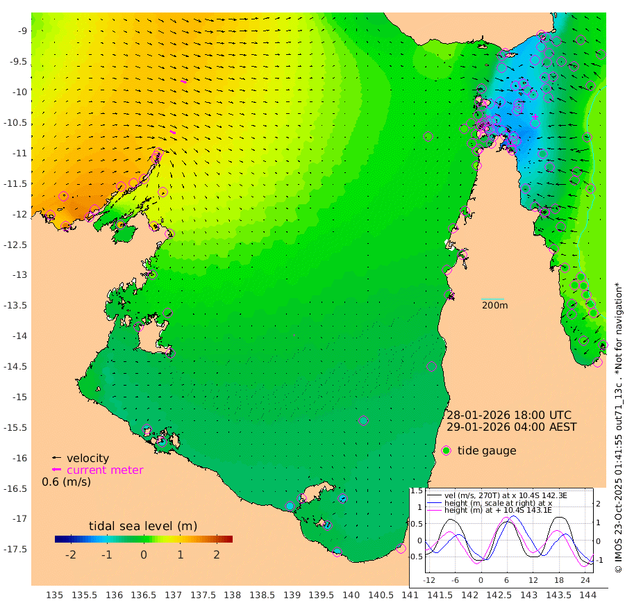 41cm/s 116T +3cm/s rms + 7cm/s -42T. ARA-GOC87 57m 4cm/s 106T +3cm/s rms + 2cm/s -2T. ARA-GOC87 60m 39cm/s 111T +2cm/s rms + 3cm/s 61T. ARA-GOC87 47m -81cm Daru -66cm Bobo Island -1cm Meer Island Barge -28cm Bramble Cay -66cm Unnamed Cay -52cm Pearce Cay -46cm Stephens Island -65cm Merrie England Shoals -93cm Mutacomal Reef -36cm Darnley Island Barge -9cm East Cay -57cm Yorke Island Barge -71cm Rennel Island -63cm Aureed Island -82cm Dungeness Reef -86cm Zagai Island -98cm Yam Island -70cm Dauan Island -71cm Saibai Island -87cm Phipi Reef -92cm Warrior Reef - West -65cm Mabuiag Island Barge -68cm Half Way Island -81cm Coconut Island -84cm Dugong Islet -91cm Poll Island -95cm Kirkcaldie Reef -109cm Suarji Island -90cm Sue Islet -15cm Hawkesbury Island -94cm Alert Patches -93cm Twin Island -13cm Badu Island -97cm St Pauls (Moa Island) -34cm Kubin (Moa Island) -74cm Ince Point -61cm Thursday Island -65cm Nardana Patches -40cm Turtle Head -36cm Round Island -3cm Goods Island 15cm Booby Island -1cm White Rocks Area 20cm Carpentaria -78cm Papou Point 2cm Bampfield Head 18cm Crab Island 4cm Red Wallis Island -26cm Packe Island -94cm Harrington Reef -26cm Herald Camp -40cm Sharp Point -38cm Red Island Point -70cm Possession Island -96cm Alpha Rock -92cm Frederick Point -86cm Wyborn Reef Light -90cm Tetley Island -13cm Triangle Reef -70cm Turtle Head Island -11cm Maclennan Cay 17cm Raine Island -54cm Mcsweeny Reef -46cm Collette Reef -11cm Shadwell Reef -47cm Hannibal Island -29cm Round Point 24cm Vrilya Point -30cm Cape Grenville -16cm Hicks Island -15cm Sir Charles Hardy Island -8cm Harvey Island -12cm Kay Reef 4cm Rocky Island 13cm Chapman Island 13cm Ham Reef 10cm Jubilee Reef 3cm Night Island 12cm Unnamed Reef No. 3 7cm Morris Island 14cm 1st 3 Mile Opening 9cm Creech Reef 10cm Fife Island 22cm Eden Reef 4cm Stanley Island 2cm Normanby River 133cm Yabooma Island 161cm Hutchison River 142cm Elcho Island 128cm North West Crocodile Island 106cm Cape Wessel 128cm Stevens Island 108cm Guluwuru Island 116cm Hopeful Bay 111cm Auster Point 118cm Two Island Bay 163cm Cadell Strait 121cm Mallison Island 94cm Melville Bay (Gove Harbour) 103cm Truant Island 65cm Cape Arnhem 26cm Cape Grey 3cm Hawk Island -26cm Milner Bay (Groote Eylandt) -38cm Cape Beatrice -84cm West Island -85cm Centre Island -92cm Mornington Island -98cm West Wellesley Islands -106cm Bountiful Island -95cm Albert River Mouth -98cm Sweers Island -104cm Karumba -71cm Nassau River Offshore -47cm Christmas Creek -5cm Archer River 4cm Boyd Point 7cm Weipa (Humbug Point) 17cm Pennefather River 11cm Cullen Point