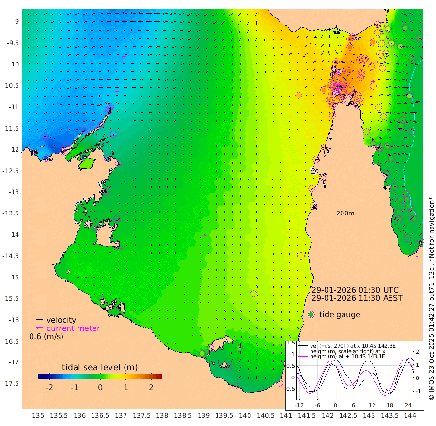 38cm/s -91T +3cm/s rms + 7cm/s -42T. ARA-GOC87 57m 20cm/s 179T +3cm/s rms + 2cm/s -2T. ARA-GOC87 60m 44cm/s -97T +2cm/s rms + 3cm/s 61T. ARA-GOC87 47m 83cm Daru 61cm Bobo Island -3cm Meer Island Barge 16cm Bramble Cay 56cm Unnamed Cay 53cm Pearce Cay 38cm Stephens Island 49cm Merrie England Shoals 87cm Mutacomal Reef 27cm Darnley Island Barge 1cm East Cay 53cm Yorke Island Barge 73cm Rennel Island 66cm Aureed Island 100cm Dungeness Reef 123cm Zagai Island 132cm Yam Island 161cm Dauan Island 143cm Saibai Island 161cm Phipi Reef 139cm Warrior Reef - West 151cm Mabuiag Island Barge 65cm Half Way Island 98cm Coconut Island 88cm Dugong Islet 120cm Poll Island 115cm Kirkcaldie Reef 165cm Suarji Island 114cm Sue Islet 150cm Hawkesbury Island 163cm Alert Patches 151cm Twin Island 155cm Badu Island 163cm St Pauls (Moa Island) 148cm Kubin (Moa Island) 158cm Ince Point 158cm Thursday Island 159cm Nardana Patches 160cm Turtle Head 150cm Round Island 147cm Goods Island 143cm Booby Island 148cm White Rocks Area 111cm Carpentaria 131cm Papou Point 157cm Bampfield Head 114cm Crab Island 144cm Red Wallis Island 153cm Packe Island 99cm Harrington Reef 154cm Herald Camp 50cm Sharp Point 128cm Red Island Point 145cm Possession Island 134cm Alpha Rock 128cm Frederick Point 93cm Wyborn Reef Light 103cm Tetley Island 23cm Triangle Reef 82cm Turtle Head Island 13cm Maclennan Cay -8cm Raine Island 53cm Mcsweeny Reef 41cm Collette Reef 13cm Shadwell Reef 35cm Hannibal Island 21cm Round Point 98cm Vrilya Point 19cm Cape Grenville 10cm Hicks Island 16cm Sir Charles Hardy Island 5cm Harvey Island 2cm Kay Reef -4cm Rocky Island -6cm Chapman Island -10cm Ham Reef -8cm Jubilee Reef -1cm Night Island -7cm Unnamed Reef No. 3 -7cm Morris Island -2cm 1st 3 Mile Opening -5cm Creech Reef -8cm Fife Island -25cm Eden Reef -9cm Stanley Island -18cm Normanby River -139cm Yabooma Island -160cm Hutchison River -148cm Elcho Island -141cm North West Crocodile Island -121cm Cape Wessel -145cm Stevens Island -123cm Guluwuru Island -135cm Hopeful Bay -122cm Auster Point -139cm Two Island Bay -179cm Cadell Strait -173cm Mallison Island -105cm Melville Bay (Gove Harbour) -109cm Truant Island -71cm Cape Arnhem -50cm Cape Grey -36cm Hawk Island -30cm Milner Bay (Groote Eylandt) -15cm Cape Beatrice 11cm West Island 12cm Centre Island 20cm Mornington Island 27cm West Wellesley Islands 19cm Bountiful Island -14cm Albert River Mouth -28cm Sweers Island -1cm Karumba 42cm Nassau River Offshore 64cm Christmas Creek 66cm Archer River 78cm Boyd Point 82cm Weipa (Humbug Point) 68cm Pennefather River 97cm Cullen Point