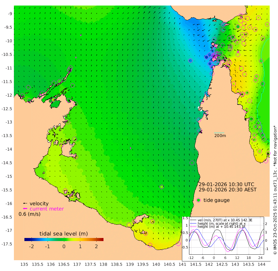 19cm/s 21T +3cm/s rms + 7cm/s -42T. ARA-GOC87 57m 20cm/s -7T +3cm/s rms + 2cm/s -2T. ARA-GOC87 60m 23cm/s 29T +2cm/s rms + 3cm/s 61T. ARA-GOC87 47m 50cm Daru 57cm Bobo Island 34cm Meer Island Barge 54cm Bramble Cay 63cm Unnamed Cay 51cm Pearce Cay 58cm Stephens Island 72cm Merrie England Shoals 62cm Mutacomal Reef 54cm Darnley Island Barge 40cm East Cay 52cm Yorke Island Barge 49cm Rennel Island 47cm Aureed Island 29cm Dungeness Reef -5cm Zagai Island -2cm Yam Island -87cm Dauan Island -70cm Saibai Island -61cm Phipi Reef -17cm Warrior Reef - West -80cm Mabuiag Island Barge 56cm Half Way Island 32cm Coconut Island 49cm Dugong Islet 15cm Poll Island 25cm Kirkcaldie Reef -21cm Suarji Island 15cm Sue Islet -143cm Hawkesbury Island -36cm Alert Patches -23cm Twin Island -148cm Badu Island -34cm St Pauls (Moa Island) -111cm Kubin (Moa Island) -62cm Ince Point -82cm Thursday Island -78cm Nardana Patches -113cm Turtle Head -116cm Round Island -151cm Goods Island -173cm Booby Island -155cm White Rocks Area -143cm Carpentaria -27cm Papou Point -171cm Bampfield Head -145cm Crab Island -160cm Red Wallis Island -125cm Packe Island 53cm Harrington Reef -142cm Herald Camp -1cm Sharp Point -87cm Red Island Point -55cm Possession Island -2cm Alpha Rock 8cm Frederick Point 48cm Wyborn Reef Light 39cm Tetley Island 17cm Triangle Reef 47cm Turtle Head Island 27cm Maclennan Cay 10cm Raine Island 50cm Mcsweeny Reef 50cm Collette Reef 28cm Shadwell Reef 62cm Hannibal Island 53cm Round Point -132cm Vrilya Point 50cm Cape Grenville 40cm Hicks Island 29cm Sir Charles Hardy Island 16cm Harvey Island 44cm Kay Reef 24cm Rocky Island 14cm Chapman Island 15cm Ham Reef 21cm Jubilee Reef 23cm Night Island 16cm Unnamed Reef No. 3 26cm Morris Island 11cm 1st 3 Mile Opening 20cm Creech Reef 24cm Fife Island 31cm Eden Reef 33cm Stanley Island 47cm Normanby River -13cm Yabooma Island -18cm Hutchison River -14cm Elcho Island -7cm North West Crocodile Island 11cm Cape Wessel 9cm Stevens Island 21cm Guluwuru Island 7cm Hopeful Bay 6cm Auster Point 14cm Two Island Bay 9cm Cadell Strait 80cm Mallison Island 15cm Melville Bay (Gove Harbour) 11cm Truant Island 11cm Cape Arnhem 29cm Cape Grey 37cm Hawk Island 58cm Milner Bay (Groote Eylandt) 56cm Cape Beatrice 77cm West Island 77cm Centre Island 73cm Mornington Island 74cm West Wellesley Islands 79cm Bountiful Island 96cm Albert River Mouth 117cm Sweers Island 92cm Karumba 27cm Nassau River Offshore -19cm Christmas Creek -68cm Archer River -89cm Boyd Point -102cm Weipa (Humbug Point) -87cm Pennefather River -123cm Cullen Point