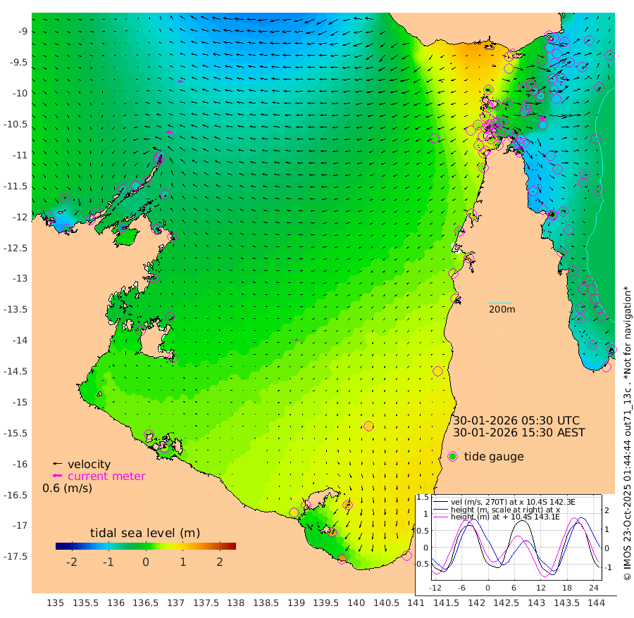 39cm/s -81T +3cm/s rms + 7cm/s -42T. ARA-GOC87 57m 16cm/s -119T +3cm/s rms + 2cm/s -2T. ARA-GOC87 60m 36cm/s -86T +2cm/s rms + 3cm/s 61T. ARA-GOC87 47m -91cm Daru -101cm Bobo Island -66cm Meer Island Barge -90cm Bramble Cay -104cm Unnamed Cay -105cm Pearce Cay -102cm Stephens Island -115cm Merrie England Shoals -105cm Mutacomal Reef -93cm Darnley Island Barge -70cm East Cay -93cm Yorke Island Barge -94cm Rennel Island -90cm Aureed Island -73cm Dungeness Reef -32cm Zagai Island -32cm Yam Island 60cm Dauan Island 47cm Saibai Island 52cm Phipi Reef -10cm Warrior Reef - West 25cm Mabuiag Island Barge -105cm Half Way Island -86cm Coconut Island -98cm Dugong Islet -65cm Poll Island -71cm Kirkcaldie Reef -27cm Suarji Island -61cm Sue Islet 34cm Hawkesbury Island -34cm Alert Patches -44cm Twin Island 46cm Badu Island -29cm St Pauls (Moa Island) 21cm Kubin (Moa Island) -11cm Ince Point -1cm Thursday Island 0cm Nardana Patches 26cm Turtle Head 36cm Round Island 43cm Goods Island 50cm Booby Island 37cm White Rocks Area 18cm Carpentaria -32cm Papou Point 46cm Bampfield Head 45cm Crab Island 43cm Red Wallis Island 30cm Packe Island -111cm Harrington Reef 64cm Herald Camp -5cm Sharp Point 16cm Red Island Point -10cm Possession Island -53cm Alpha Rock -70cm Frederick Point -104cm Wyborn Reef Light -97cm Tetley Island -53cm Triangle Reef -126cm Turtle Head Island -59cm Maclennan Cay -40cm Raine Island -96cm Mcsweeny Reef -87cm Collette Reef -58cm Shadwell Reef -102cm Hannibal Island -94cm Round Point 25cm Vrilya Point -83cm Cape Grenville -70cm Hicks Island -58cm Sir Charles Hardy Island -25cm Harvey Island -75cm Kay Reef -50cm Rocky Island -42cm Chapman Island -42cm Ham Reef -51cm Jubilee Reef -49cm Night Island -46cm Unnamed Reef No. 3 -57cm Morris Island -46cm 1st 3 Mile Opening -52cm Creech Reef -54cm Fife Island -63cm Eden Reef -62cm Stanley Island -76cm Normanby River -38cm Yabooma Island -46cm Hutchison River -35cm Elcho Island -30cm North West Crocodile Island -72cm Cape Wessel -66cm Stevens Island -78cm Guluwuru Island -45cm Hopeful Bay -66cm Auster Point -70cm Two Island Bay -76cm Cadell Strait -140cm Mallison Island -60cm Melville Bay (Gove Harbour) -71cm Truant Island -42cm Cape Arnhem -25cm Cape Grey -8cm Hawk Island 2cm Milner Bay (Groote Eylandt) 16cm Cape Beatrice 28cm West Island 31cm Centre Island 87cm Mornington Island 79cm West Wellesley Islands 124cm Bountiful Island 145cm Albert River Mouth 130cm Sweers Island 151cm Karumba 91cm Nassau River Offshore 82cm Christmas Creek 59cm Archer River 48cm Boyd Point 68cm Weipa (Humbug Point) 18cm Pennefather River 47cm Cullen Point