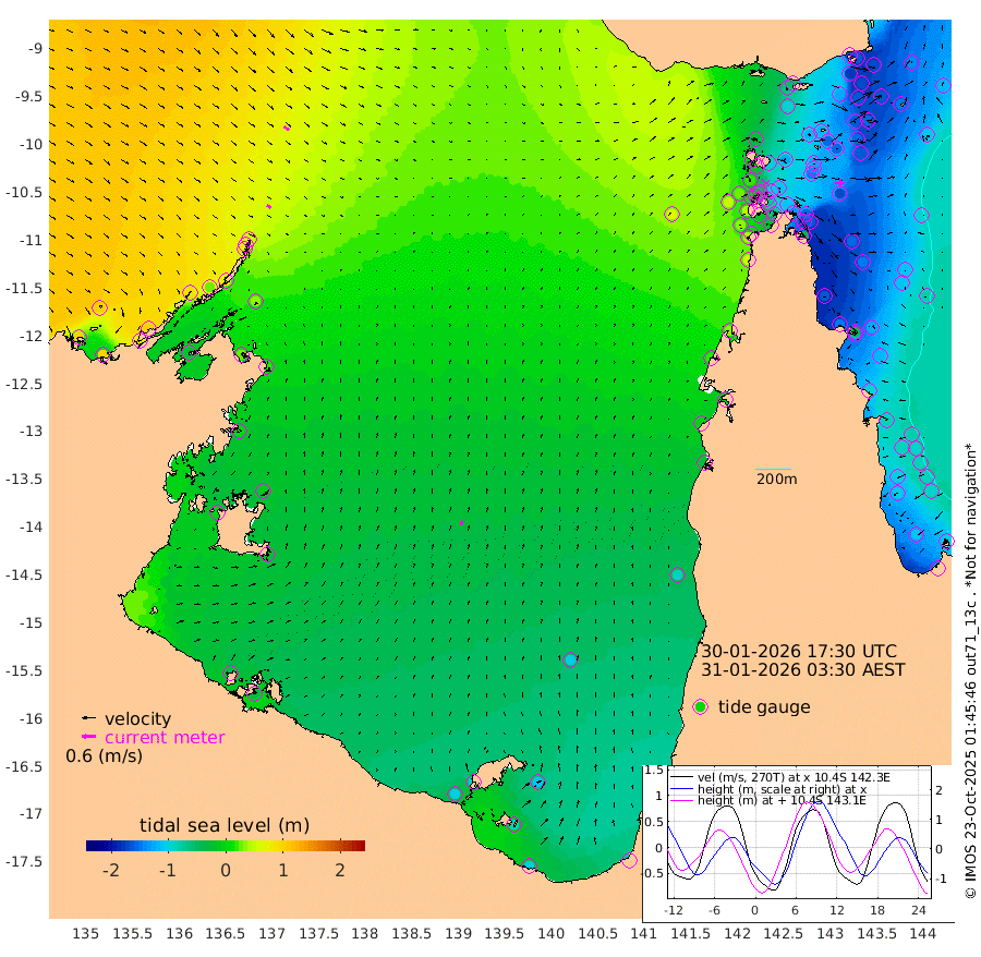 20cm/s 124T +3cm/s rms + 7cm/s -42T. ARA-GOC87 57m 22cm/s 20T +3cm/s rms + 2cm/s -2T. ARA-GOC87 60m 25cm/s 123T +2cm/s rms + 3cm/s 61T. ARA-GOC87 47m -167cm Daru -162cm Bobo Island -106cm Meer Island Barge -140cm Bramble Cay -167cm Unnamed Cay -162cm Pearce Cay -159cm Stephens Island -171cm Merrie England Shoals -175cm Mutacomal Reef -146cm Darnley Island Barge -119cm East Cay -153cm Yorke Island Barge -164cm Rennel Island -157cm Aureed Island -157cm Dungeness Reef -113cm Zagai Island -120cm Yam Island -62cm Dauan Island -51cm Saibai Island -97cm Phipi Reef -124cm Warrior Reef - West -30cm Mabuiag Island Barge -161cm Half Way Island -151cm Coconut Island -167cm Dugong Islet -137cm Poll Island -147cm Kirkcaldie Reef -123cm Suarji Island -126cm Sue Islet 15cm Hawkesbury Island -104cm Alert Patches -107cm Twin Island 13cm Badu Island -98cm St Pauls (Moa Island) -21cm Kubin (Moa Island) -68cm Ince Point -47cm Thursday Island -53cm Nardana Patches -34cm Turtle Head -9cm Round Island 11cm Goods Island 47cm Booby Island 29cm White Rocks Area 66cm Carpentaria -80cm Papou Point 38cm Bampfield Head 45cm Crab Island 34cm Red Wallis Island -18cm Packe Island -174cm Harrington Reef 4cm Herald Camp -31cm Sharp Point -24cm Red Island Point -65cm Possession Island -106cm Alpha Rock -133cm Frederick Point -158cm Wyborn Reef Light -151cm Tetley Island -96cm Triangle Reef -157cm Turtle Head Island -107cm Maclennan Cay -77cm Raine Island -153cm Mcsweeny Reef -144cm Collette Reef -105cm Shadwell Reef -159cm Hannibal Island -143cm Round Point 54cm Vrilya Point -134cm Cape Grenville -122cm Hicks Island -123cm Sir Charles Hardy Island -42cm Harvey Island -117cm Kay Reef -96cm Rocky Island -85cm Chapman Island -79cm Ham Reef -89cm Jubilee Reef -91cm Night Island -84cm Unnamed Reef No. 3 -99cm Morris Island -86cm 1st 3 Mile Opening -94cm Creech Reef -99cm Fife Island -106cm Eden Reef -104cm Stanley Island -116cm Normanby River 100cm Yabooma Island 99cm Hutchison River 103cm Elcho Island 99cm North West Crocodile Island 66cm Cape Wessel 87cm Stevens Island 24cm Guluwuru Island 80cm Hopeful Bay 72cm Auster Point 77cm Two Island Bay 77cm Cadell Strait -27cm Mallison Island 29cm Melville Bay (Gove Harbour) 36cm Truant Island 16cm Cape Arnhem 2cm Cape Grey -11cm Hawk Island -4cm Milner Bay (Groote Eylandt) -23cm Cape Beatrice -38cm West Island -37cm Centre Island -99cm Mornington Island -104cm West Wellesley Islands -111cm Bountiful Island -98cm Albert River Mouth -88cm Sweers Island -106cm Karumba -101cm Nassau River Offshore -86cm Christmas Creek -28cm Archer River -7cm Boyd Point -8cm Weipa (Humbug Point) 19cm Pennefather River 36cm Cullen Point