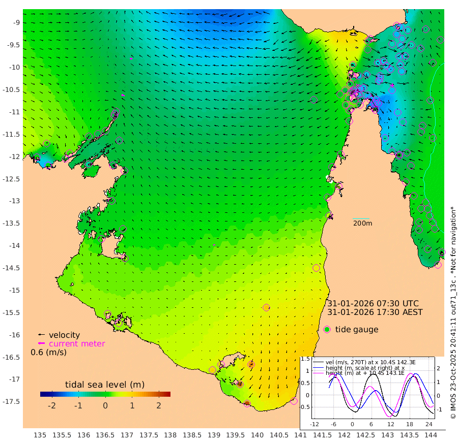 29cm/s -75T +3cm/s rms + 7cm/s -42T. ARA-GOC87 57m 18cm/s -91T +3cm/s rms + 2cm/s -2T. ARA-GOC87 60m 23cm/s -75T +2cm/s rms + 3cm/s 61T. ARA-GOC87 47m -108cm Daru -107cm Bobo Island -33cm Meer Island Barge -60cm Bramble Cay -95cm Unnamed Cay -100cm Pearce Cay -85cm Stephens Island -95cm Merrie England Shoals -114cm Mutacomal Reef -74cm Darnley Island Barge -35cm East Cay -94cm Yorke Island Barge -100cm Rennel Island -98cm Aureed Island -102cm Dungeness Reef -98cm Zagai Island -98cm Yam Island -46cm Dauan Island -52cm Saibai Island -37cm Phipi Reef -85cm Warrior Reef - West -69cm Mabuiag Island Barge -107cm Half Way Island -114cm Coconut Island -115cm Dugong Islet -114cm Poll Island -112cm Kirkcaldie Reef -106cm Suarji Island -111cm Sue Islet -45cm Hawkesbury Island -109cm Alert Patches -115cm Twin Island -41cm Badu Island -116cm St Pauls (Moa Island) -59cm Kubin (Moa Island) -91cm Ince Point -82cm Thursday Island -83cm Nardana Patches -53cm Turtle Head -41cm Round Island -28cm Goods Island -22cm Booby Island -32cm White Rocks Area -42cm Carpentaria -103cm Papou Point -34cm Bampfield Head -12cm Crab Island -28cm Red Wallis Island -42cm Packe Island -133cm Harrington Reef -14cm Herald Camp -32cm Sharp Point -47cm Red Island Point -81cm Possession Island -114cm Alpha Rock -122cm Frederick Point -127cm Wyborn Reef Light -129cm Tetley Island -40cm Triangle Reef -143cm Turtle Head Island -35cm Maclennan Cay -6cm Raine Island -91cm Mcsweeny Reef -74cm Collette Reef -33cm Shadwell Reef -79cm Hannibal Island -64cm Round Point -24cm Vrilya Point -52cm Cape Grenville -41cm Hicks Island -32cm Sir Charles Hardy Island -16cm Harvey Island -33cm Kay Reef -14cm Rocky Island -5cm Chapman Island -7cm Ham Reef -16cm Jubilee Reef -18cm Night Island -10cm Unnamed Reef No. 3 -17cm Morris Island -13cm 1st 3 Mile Opening -16cm Creech Reef -20cm Fife Island -8cm Eden Reef -18cm Stanley Island -24cm Normanby River 8cm Yabooma Island 8cm Hutchison River 16cm Elcho Island 18cm North West Crocodile Island -41cm Cape Wessel -19cm Stevens Island -44cm Guluwuru Island 4cm Hopeful Bay -31cm Auster Point -32cm Two Island Bay -24cm Cadell Strait -77cm Mallison Island -32cm Melville Bay (Gove Harbour) -46cm Truant Island -26cm Cape Arnhem -10cm Cape Grey 9cm Hawk Island 21cm Milner Bay (Groote Eylandt) 34cm Cape Beatrice 41cm West Island 46cm Centre Island 112cm Mornington Island 103cm West Wellesley Islands 154cm Bountiful Island 195cm Albert River Mouth 184cm Sweers Island 194cm Karumba 107cm Nassau River Offshore 81cm Christmas Creek 47cm Archer River 18cm Boyd Point 41cm Weipa (Humbug Point) -7cm Pennefather River 0cm Cullen Point