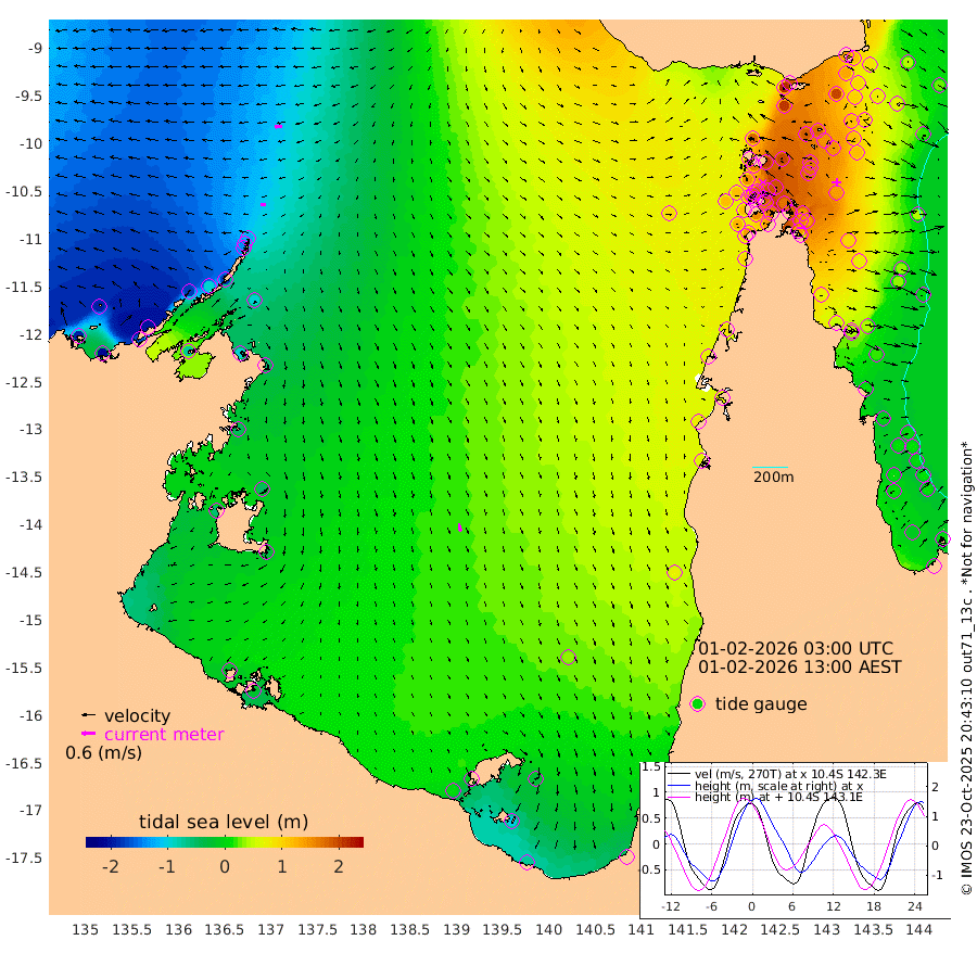 24cm/s -95T +3cm/s rms + 7cm/s -42T. ARA-GOC87 57m 36cm/s 170T +3cm/s rms + 2cm/s -2T. ARA-GOC87 60m 36cm/s -96T +2cm/s rms + 3cm/s 61T. ARA-GOC87 47m 139cm Daru 114cm Bobo Island 22cm Meer Island Barge 45cm Bramble Cay 94cm Unnamed Cay 99cm Pearce Cay 80cm Stephens Island 84cm Merrie England Shoals 131cm Mutacomal Reef 69cm Darnley Island Barge 25cm East Cay 103cm Yorke Island Barge 118cm Rennel Island 113cm Aureed Island 149cm Dungeness Reef 178cm Zagai Island 187cm Yam Island 210cm Dauan Island 192cm Saibai Island 203cm Phipi Reef 200cm Warrior Reef - West 176cm Mabuiag Island Barge 115cm Half Way Island 145cm Coconut Island 140cm Dugong Islet 168cm Poll Island 171cm Kirkcaldie Reef 198cm Suarji Island 167cm Sue Islet 145cm Hawkesbury Island 195cm Alert Patches 191cm Twin Island 155cm Badu Island 207cm St Pauls (Moa Island) 159cm Kubin (Moa Island) 185cm Ince Point 177cm Thursday Island 180cm Nardana Patches 165cm Turtle Head 140cm Round Island 133cm Goods Island 119cm Booby Island 118cm White Rocks Area 95cm Carpentaria 172cm Papou Point 118cm Bampfield Head 103cm Crab Island 126cm Red Wallis Island 152cm Packe Island 152cm Harrington Reef 141cm Herald Camp 67cm Sharp Point 141cm Red Island Point 160cm Possession Island 170cm Alpha Rock 175cm Frederick Point 138cm Wyborn Reef Light 149cm Tetley Island 45cm Triangle Reef 136cm Turtle Head Island 36cm Maclennan Cay 2cm Raine Island 93cm Mcsweeny Reef 74cm Collette Reef 33cm Shadwell Reef 70cm Hannibal Island 46cm Round Point 92cm Vrilya Point 41cm Cape Grenville 35cm Hicks Island 40cm Sir Charles Hardy Island 15cm Harvey Island 15cm Kay Reef 8cm Rocky Island -2cm Chapman Island 1cm Ham Reef 8cm Jubilee Reef 14cm Night Island 3cm Unnamed Reef No. 3 6cm Morris Island 9cm 1st 3 Mile Opening 10cm Creech Reef 13cm Fife Island -14cm Eden Reef 3cm Stanley Island -3cm Normanby River -191cm Yabooma Island -208cm Hutchison River -199cm Elcho Island -189cm North West Crocodile Island -126cm Cape Wessel -177cm Stevens Island -93cm Guluwuru Island -176cm Hopeful Bay -142cm Auster Point -145cm Two Island Bay -168cm Cadell Strait -72cm Mallison Island -92cm Melville Bay (Gove Harbour) -94cm Truant Island -57cm Cape Arnhem -49cm Cape Grey -46cm Hawk Island -56cm Milner Bay (Groote Eylandt) -37cm Cape Beatrice -17cm West Island -22cm Centre Island -1cm Mornington Island 2cm West Wellesley Islands -25cm Bountiful Island -70cm Albert River Mouth -98cm Sweers Island -49cm Karumba 36cm Nassau River Offshore 69cm Christmas Creek 61cm Archer River 78cm Boyd Point 71cm Weipa (Humbug Point) 68cm Pennefather River 88cm Cullen Point