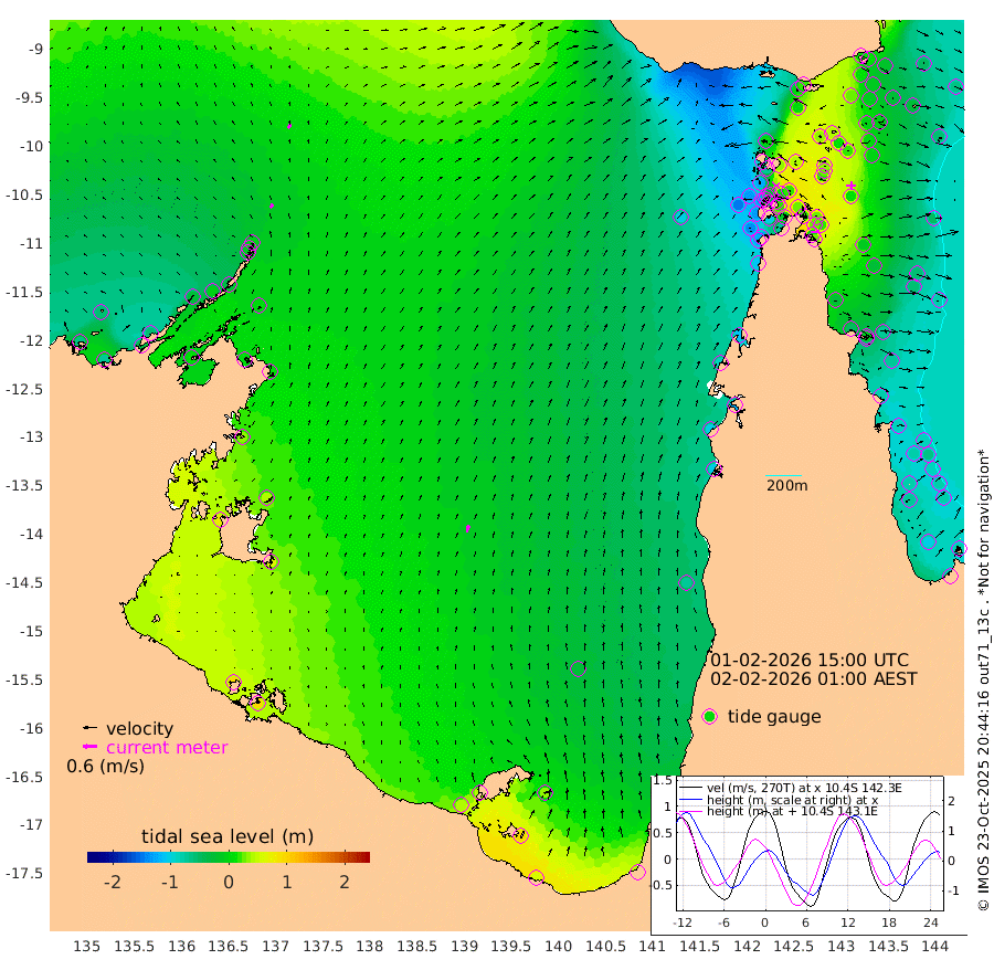 19cm/s 32T +3cm/s rms + 7cm/s -42T. ARA-GOC87 57m 33cm/s 11T +3cm/s rms + 2cm/s -2T. ARA-GOC87 60m 22cm/s 40T +2cm/s rms + 3cm/s 61T. ARA-GOC87 47m 15cm Daru 10cm Bobo Island -59cm Meer Island Barge -46cm Bramble Cay -14cm Unnamed Cay -14cm Pearce Cay -23cm Stephens Island -20cm Merrie England Shoals 9cm Mutacomal Reef -27cm Darnley Island Barge -65cm East Cay -3cm Yorke Island Barge -6cm Rennel Island 4cm Aureed Island 9cm Dungeness Reef 43cm Zagai Island 30cm Yam Island 5cm Dauan Island 15cm Saibai Island 4cm Phipi Reef 29cm Warrior Reef - West 1cm Mabuiag Island Barge -1cm Half Way Island 18cm Coconut Island 8cm Dugong Islet 28cm Poll Island 17cm Kirkcaldie Reef 38cm Suarji Island 31cm Sue Islet -125cm Hawkesbury Island 11cm Alert Patches 19cm Twin Island -97cm Badu Island 33cm St Pauls (Moa Island) -74cm Kubin (Moa Island) -9cm Ince Point -29cm Thursday Island -23cm Nardana Patches -74cm Turtle Head -81cm Round Island -130cm Goods Island -147cm Booby Island -133cm White Rocks Area -103cm Carpentaria 20cm Papou Point -135cm Bampfield Head -123cm Crab Island -136cm Red Wallis Island -104cm Packe Island 24cm Harrington Reef -128cm Herald Camp 25cm Sharp Point -69cm Red Island Point -13cm Possession Island 29cm Alpha Rock 22cm Frederick Point 21cm Wyborn Reef Light 26cm Tetley Island -48cm Triangle Reef 14cm Turtle Head Island -59cm Maclennan Cay -80cm Raine Island -13cm Mcsweeny Reef -25cm Collette Reef -56cm Shadwell Reef -29cm Hannibal Island -50cm Round Point -112cm Vrilya Point -52cm Cape Grenville -57cm Hicks Island -74cm Sir Charles Hardy Island -14cm Harvey Island -72cm Kay Reef -77cm Rocky Island -89cm Chapman Island -83cm Ham Reef -76cm Jubilee Reef -64cm Night Island -85cm Unnamed Reef No. 3 -79cm Morris Island -80cm 1st 3 Mile Opening -79cm Creech Reef -69cm Fife Island -101cm Eden Reef -82cm Stanley Island -83cm Normanby River -61cm Yabooma Island -71cm Hutchison River -57cm Elcho Island -53cm North West Crocodile Island -5cm Cape Wessel -24cm Stevens Island -3cm Guluwuru Island -36cm Hopeful Bay -13cm Auster Point -13cm Two Island Bay -37cm Cadell Strait 15cm Mallison Island 3cm Melville Bay (Gove Harbour) 5cm Truant Island 14cm Cape Arnhem 34cm Cape Grey 39cm Hawk Island 77cm Milner Bay (Groote Eylandt) 62cm Cape Beatrice 95cm West Island 94cm Centre Island 44cm Mornington Island 45cm West Wellesley Islands 35cm Bountiful Island 53cm Albert River Mouth 95cm Sweers Island 43cm Karumba -24cm Nassau River Offshore -71cm Christmas Creek -104cm Archer River -100cm Boyd Point -124cm Weipa (Humbug Point) -85cm Pennefather River -111cm Cullen Point