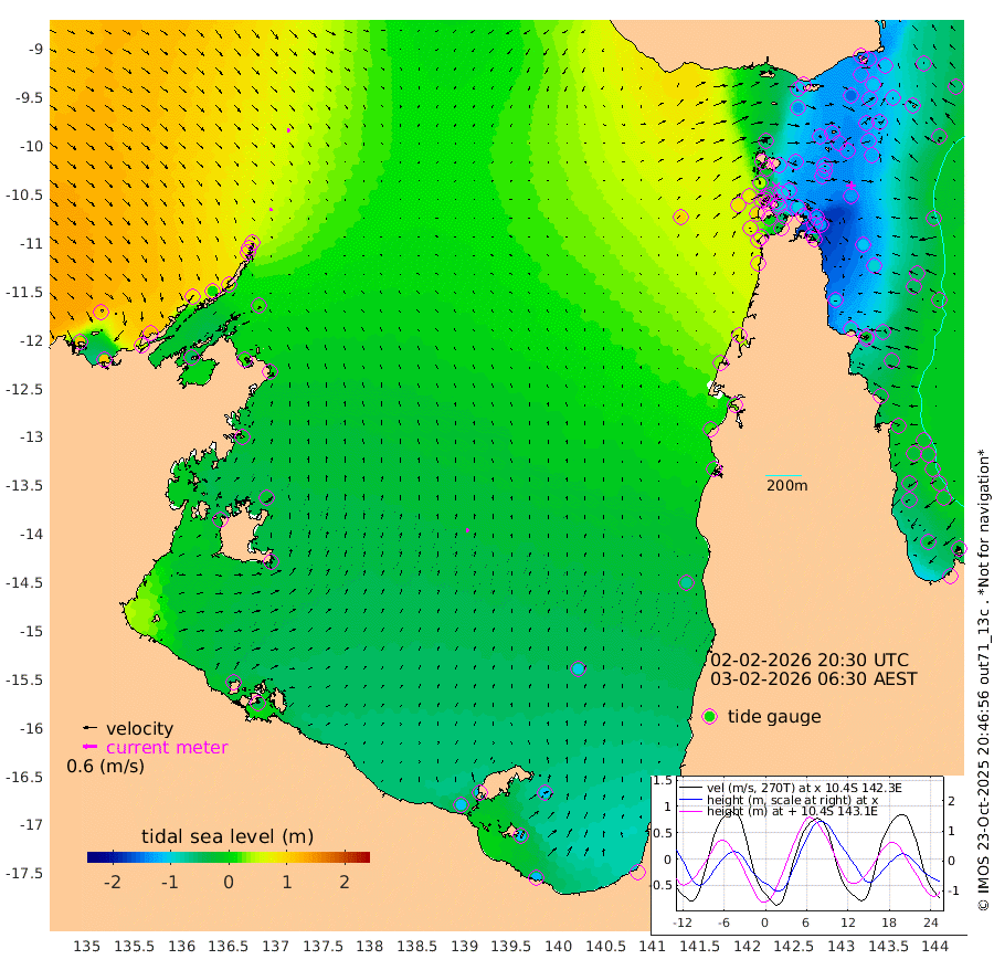 11cm/s 165T +3cm/s rms + 7cm/s -42T. ARA-GOC87 57m 17cm/s 18T +3cm/s rms + 2cm/s -2T. ARA-GOC87 60m 17cm/s 151T +2cm/s rms + 3cm/s 61T. ARA-GOC87 47m -144cm Daru -137cm Bobo Island -48cm Meer Island Barge -77cm Bramble Cay -110cm Unnamed Cay -125cm Pearce Cay -107cm Stephens Island -106cm Merrie England Shoals -133cm Mutacomal Reef -95cm Darnley Island Barge -56cm East Cay -116cm Yorke Island Barge -124cm Rennel Island -130cm Aureed Island -138cm Dungeness Reef -136cm Zagai Island -133cm Yam Island -115cm Dauan Island -100cm Saibai Island -137cm Phipi Reef -154cm Warrior Reef - West -57cm Mabuiag Island Barge -122cm Half Way Island -134cm Coconut Island -132cm Dugong Islet -134cm Poll Island -136cm Kirkcaldie Reef -132cm Suarji Island -125cm Sue Islet 44cm Hawkesbury Island -103cm Alert Patches -111cm Twin Island 14cm Badu Island -117cm St Pauls (Moa Island) -9cm Kubin (Moa Island) -73cm Ince Point -46cm Thursday Island -54cm Nardana Patches -21cm Turtle Head 18cm Round Island 43cm Goods Island 85cm Booby Island 70cm White Rocks Area 104cm Carpentaria -92cm Papou Point 98cm Bampfield Head 65cm Crab Island 67cm Red Wallis Island 6cm Packe Island -146cm Harrington Reef 48cm Herald Camp -44cm Sharp Point -18cm Red Island Point -55cm Possession Island -101cm Alpha Rock -126cm Frederick Point -129cm Wyborn Reef Light -129cm Tetley Island -53cm Triangle Reef -123cm Turtle Head Island -50cm Maclennan Cay -20cm Raine Island -107cm Mcsweeny Reef -93cm Collette Reef -49cm Shadwell Reef -98cm Hannibal Island -78cm Round Point 75cm Vrilya Point -64cm Cape Grenville -61cm Hicks Island -53cm Sir Charles Hardy Island -22cm Harvey Island -40cm Kay Reef -31cm Rocky Island -20cm Chapman Island -17cm Ham Reef -27cm Jubilee Reef -36cm Night Island -21cm Unnamed Reef No. 3 -31cm Morris Island -20cm 1st 3 Mile Opening -29cm Creech Reef -47cm Fife Island -23cm Eden Reef -28cm Stanley Island -36cm Normanby River 115cm Yabooma Island 111cm Hutchison River 113cm Elcho Island 105cm North West Crocodile Island 61cm Cape Wessel 86cm Stevens Island 13cm Guluwuru Island 90cm Hopeful Bay 73cm Auster Point 73cm Two Island Bay 52cm Cadell Strait -51cm Mallison Island 16cm Melville Bay (Gove Harbour) 21cm Truant Island 1cm Cape Arnhem -9cm Cape Grey -19cm Hawk Island -16cm Milner Bay (Groote Eylandt) -31cm Cape Beatrice -46cm West Island -41cm Centre Island -109cm Mornington Island -107cm West Wellesley Islands -111cm Bountiful Island -117cm Albert River Mouth -112cm Sweers Island -127cm Karumba -102cm Nassau River Offshore -75cm Christmas Creek -6cm Archer River 16cm Boyd Point 23cm Weipa (Humbug Point) 33cm Pennefather River 61cm Cullen Point