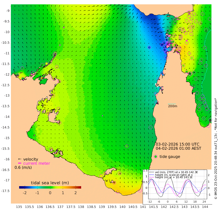 26cm/s 59T +3cm/s rms + 7cm/s -42T. ARA-GOC87 57m 21cm/s 2T +3cm/s rms + 2cm/s -2T. ARA-GOC87 60m 32cm/s 53T +2cm/s rms + 3cm/s 61T. ARA-GOC87 47m 63cm Daru 69cm Bobo Island 5cm Meer Island Barge 21cm Bramble Cay 41cm Unnamed Cay 54cm Pearce Cay 42cm Stephens Island 39cm Merrie England Shoals 52cm Mutacomal Reef 37cm Darnley Island Barge 4cm East Cay 51cm Yorke Island Barge 46cm Rennel Island 63cm Aureed Island 50cm Dungeness Reef 57cm Zagai Island 36cm Yam Island 1cm Dauan Island 4cm Saibai Island 14cm Phipi Reef 50cm Warrior Reef - West -29cm Mabuiag Island Barge 47cm Half Way Island 58cm Coconut Island 49cm Dugong Islet 49cm Poll Island 38cm Kirkcaldie Reef 44cm Suarji Island 45cm Sue Islet -170cm Hawkesbury Island 6cm Alert Patches 17cm Twin Island -127cm Badu Island 23cm St Pauls (Moa Island) -102cm Kubin (Moa Island) -26cm Ince Point -53cm Thursday Island -46cm Nardana Patches -93cm Turtle Head -119cm Round Island -157cm Goods Island -191cm Booby Island -172cm White Rocks Area -160cm Carpentaria 9cm Papou Point -185cm Bampfield Head -162cm Crab Island -177cm Red Wallis Island -127cm Packe Island 65cm Harrington Reef -175cm Herald Camp 16cm Sharp Point -91cm Red Island Point -31cm Possession Island 24cm Alpha Rock 38cm Frederick Point 58cm Wyborn Reef Light 55cm Tetley Island 4cm Triangle Reef 52cm Turtle Head Island -2cm Maclennan Cay -20cm Raine Island 44cm Mcsweeny Reef 33cm Collette Reef 1cm Shadwell Reef 37cm Hannibal Island 19cm Round Point -157cm Vrilya Point 9cm Cape Grenville 7cm Hicks Island -8cm Sir Charles Hardy Island 5cm Harvey Island -8cm Kay Reef -13cm Rocky Island -23cm Chapman Island -24cm Ham Reef -15cm Jubilee Reef -6cm Night Island -22cm Unnamed Reef No. 3 -13cm Morris Island -19cm 1st 3 Mile Opening -16cm Creech Reef 2cm Fife Island -20cm Eden Reef -17cm Stanley Island -10cm Normanby River -31cm Yabooma Island -16cm Hutchison River -18cm Elcho Island -22cm North West Crocodile Island 29cm Cape Wessel 13cm Stevens Island 60cm Guluwuru Island -1cm Hopeful Bay 19cm Auster Point 14cm Two Island Bay 29cm Cadell Strait 121cm Mallison Island 56cm Melville Bay (Gove Harbour) 58cm Truant Island 54cm Cape Arnhem 59cm Cape Grey 59cm Hawk Island 76cm Milner Bay (Groote Eylandt) 66cm Cape Beatrice 78cm West Island 75cm Centre Island 77cm Mornington Island 77cm West Wellesley Islands 79cm Bountiful Island 105cm Albert River Mouth 140cm Sweers Island 90cm Karumba 18cm Nassau River Offshore -34cm Christmas Creek -89cm Archer River -101cm Boyd Point -119cm Weipa (Humbug Point) -102cm Pennefather River -146cm Cullen Point