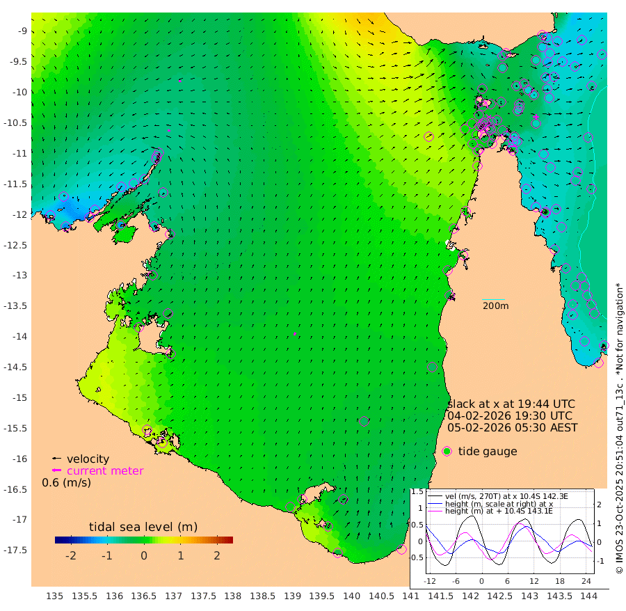 18cm/s -71T +3cm/s rms + 7cm/s -42T. ARA-GOC87 57m 22cm/s 22T +3cm/s rms + 2cm/s -2T. ARA-GOC87 60m 14cm/s -99T +2cm/s rms + 3cm/s 61T. ARA-GOC87 47m -101cm Daru -106cm Bobo Island -72cm Meer Island Barge -96cm Bramble Cay -97cm Unnamed Cay -114cm Pearce Cay -98cm Stephens Island -100cm Merrie England Shoals -102cm Mutacomal Reef -88cm Darnley Island Barge -87cm East Cay -89cm Yorke Island Barge -99cm Rennel Island -96cm Aureed Island -92cm Dungeness Reef -66cm Zagai Island -69cm Yam Island -62cm Dauan Island -47cm Saibai Island -77cm Phipi Reef -85cm Warrior Reef - West -27cm Mabuiag Island Barge -90cm Half Way Island -90cm Coconut Island -89cm Dugong Islet -79cm Poll Island -78cm Kirkcaldie Reef -57cm Suarji Island -65cm Sue Islet -33cm Hawkesbury Island -52cm Alert Patches -58cm Twin Island -33cm Badu Island -51cm St Pauls (Moa Island) -37cm Kubin (Moa Island) -41cm Ince Point -31cm Thursday Island -33cm Nardana Patches -36cm Turtle Head -21cm Round Island -22cm Goods Island 8cm Booby Island -5cm White Rocks Area 65cm Carpentaria -47cm Papou Point 18cm Bampfield Head 4cm Crab Island -4cm Red Wallis Island -37cm Packe Island -92cm Harrington Reef -13cm Herald Camp -8cm Sharp Point -40cm Red Island Point -34cm Possession Island -51cm Alpha Rock -75cm Frederick Point -95cm Wyborn Reef Light -91cm Tetley Island -71cm Triangle Reef -93cm Turtle Head Island -70cm Maclennan Cay -63cm Raine Island -92cm Mcsweeny Reef -88cm Collette Reef -70cm Shadwell Reef -96cm Hannibal Island -103cm Round Point 25cm Vrilya Point -81cm Cape Grenville -84cm Hicks Island -82cm Sir Charles Hardy Island -25cm Harvey Island -77cm Kay Reef -71cm Rocky Island -74cm Chapman Island -63cm Ham Reef -66cm Jubilee Reef -64cm Night Island -67cm Unnamed Reef No. 3 -72cm Morris Island -56cm 1st 3 Mile Opening -66cm Creech Reef -83cm Fife Island -81cm Eden Reef -69cm Stanley Island -85cm Normanby River -112cm Yabooma Island -137cm Hutchison River -104cm Elcho Island -104cm North West Crocodile Island -73cm Cape Wessel -106cm Stevens Island -84cm Guluwuru Island -95cm Hopeful Bay -78cm Auster Point -80cm Two Island Bay -145cm Cadell Strait -128cm Mallison Island -78cm Melville Bay (Gove Harbour) -79cm Truant Island -49cm Cape Arnhem -21cm Cape Grey -19cm Hawk Island 28cm Milner Bay (Groote Eylandt) 20cm Cape Beatrice 62cm West Island 67cm Centre Island -11cm Mornington Island -7cm West Wellesley Islands -24cm Bountiful Island -29cm Albert River Mouth -12cm Sweers Island -40cm Karumba -47cm Nassau River Offshore -50cm Christmas Creek -31cm Archer River -10cm Boyd Point -21cm Weipa (Humbug Point) 6cm Pennefather River 15cm Cullen Point
