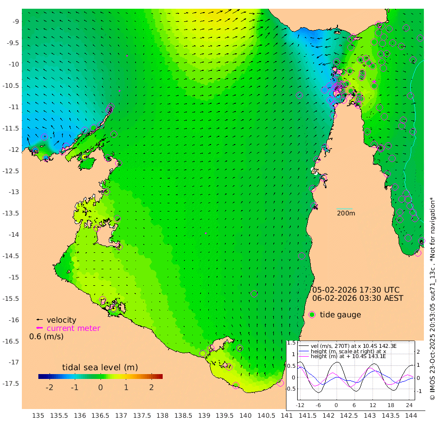 14cm/s 46T +3cm/s rms + 7cm/s -42T. ARA-GOC87 57m 13cm/s 35T +3cm/s rms + 2cm/s -2T. ARA-GOC87 60m 13cm/s 42T +2cm/s rms + 3cm/s 61T. ARA-GOC87 47m 2cm Daru 7cm Bobo Island -17cm Meer Island Barge -24cm Bramble Cay -15cm Unnamed Cay -8cm Pearce Cay -9cm Stephens Island -19cm Merrie England Shoals -13cm Mutacomal Reef -3cm Darnley Island Barge -26cm East Cay 4cm Yorke Island Barge -11cm Rennel Island 10cm Aureed Island -3cm Dungeness Reef 20cm Zagai Island -2cm Yam Island -11cm Dauan Island 3cm Saibai Island -13cm Phipi Reef 10cm Warrior Reef - West -26cm Mabuiag Island Barge -6cm Half Way Island 5cm Coconut Island -4cm Dugong Islet 1cm Poll Island -5cm Kirkcaldie Reef 8cm Suarji Island 9cm Sue Islet -133cm Hawkesbury Island -17cm Alert Patches -11cm Twin Island -97cm Badu Island -4cm St Pauls (Moa Island) -86cm Kubin (Moa Island) -33cm Ince Point -48cm Thursday Island -44cm Nardana Patches -76cm Turtle Head -97cm Round Island -115cm Goods Island -122cm Booby Island -123cm White Rocks Area -63cm Carpentaria -12cm Papou Point -119cm Bampfield Head -101cm Crab Island -118cm Red Wallis Island -102cm Packe Island 5cm Harrington Reef -127cm Herald Camp 10cm Sharp Point -74cm Red Island Point -38cm Possession Island -7cm Alpha Rock -4cm Frederick Point -5cm Wyborn Reef Light -4cm Tetley Island -18cm Triangle Reef -8cm Turtle Head Island -22cm Maclennan Cay -30cm Raine Island -6cm Mcsweeny Reef -11cm Collette Reef -21cm Shadwell Reef -12cm Hannibal Island -30cm Round Point -85cm Vrilya Point -25cm Cape Grenville -25cm Hicks Island -29cm Sir Charles Hardy Island -6cm Harvey Island -32cm Kay Reef -30cm Rocky Island -36cm Chapman Island -31cm Ham Reef -27cm Jubilee Reef -22cm Night Island -31cm Unnamed Reef No. 3 -30cm Morris Island -27cm 1st 3 Mile Opening -27cm Creech Reef -23cm Fife Island -37cm Eden Reef -33cm Stanley Island -37cm Normanby River -137cm Yabooma Island -135cm Hutchison River -117cm Elcho Island -121cm North West Crocodile Island -36cm Cape Wessel -91cm Stevens Island 2cm Guluwuru Island -91cm Hopeful Bay -58cm Auster Point -62cm Two Island Bay -79cm Cadell Strait 72cm Mallison Island -7cm Melville Bay (Gove Harbour) -5cm Truant Island 13cm Cape Arnhem 25cm Cape Grey 21cm Hawk Island 46cm Milner Bay (Groote Eylandt) 39cm Cape Beatrice 66cm West Island 66cm Centre Island 41cm Mornington Island 40cm West Wellesley Islands 26cm Bountiful Island 27cm Albert River Mouth 54cm Sweers Island 16cm Karumba -5cm Nassau River Offshore -31cm Christmas Creek -58cm Archer River -55cm Boyd Point -76cm Weipa (Humbug Point) -53cm Pennefather River -82cm Cullen Point