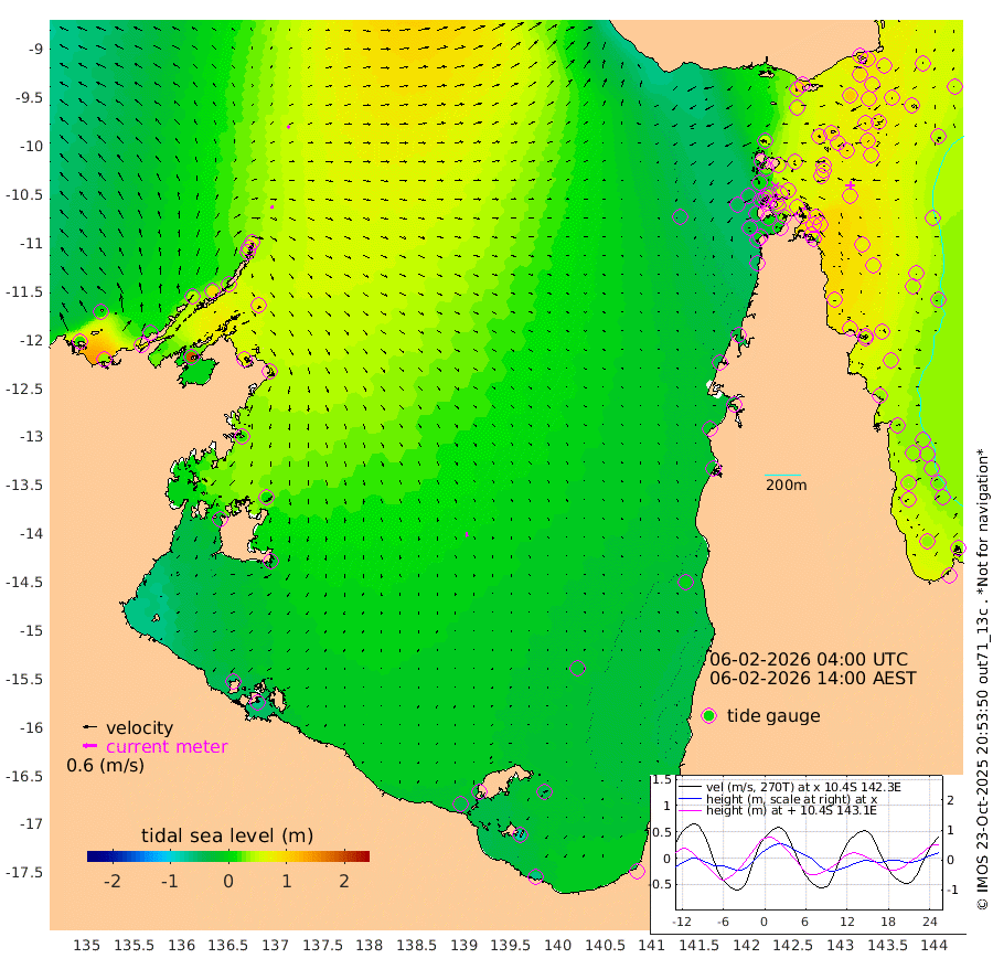 13cm/s 75T +3cm/s rms + 7cm/s -42T. ARA-GOC87 57m 19cm/s 173T +3cm/s rms + 2cm/s -2T. ARA-GOC87 60m 12cm/s 42T +2cm/s rms + 3cm/s 61T. ARA-GOC87 47m 90cm Daru 92cm Bobo Island 44cm Meer Island Barge 59cm Bramble Cay 72cm Unnamed Cay 81cm Pearce Cay 72cm Stephens Island 65cm Merrie England Shoals 83cm Mutacomal Reef 69cm Darnley Island Barge 51cm East Cay 79cm Yorke Island Barge 79cm Rennel Island 85cm Aureed Island 79cm Dungeness Reef 93cm Zagai Island 89cm Yam Island 91cm Dauan Island 91cm Saibai Island 72cm Phipi Reef 105cm Warrior Reef - West 49cm Mabuiag Island Barge 71cm Half Way Island 83cm Coconut Island 80cm Dugong Islet 82cm Poll Island 74cm Kirkcaldie Reef 75cm Suarji Island 81cm Sue Islet 1cm Hawkesbury Island 55cm Alert Patches 67cm Twin Island 4cm Badu Island 71cm St Pauls (Moa Island) 27cm Kubin (Moa Island) 46cm Ince Point 30cm Thursday Island 36cm Nardana Patches 18cm Turtle Head 12cm Round Island -13cm Goods Island -38cm Booby Island -31cm White Rocks Area -39cm Carpentaria 61cm Papou Point -18cm Bampfield Head -37cm Crab Island -24cm Red Wallis Island 12cm Packe Island 83cm Harrington Reef 5cm Herald Camp 21cm Sharp Point 10cm Red Island Point 37cm Possession Island 72cm Alpha Rock 78cm Frederick Point 90cm Wyborn Reef Light 91cm Tetley Island 51cm Triangle Reef 76cm Turtle Head Island 46cm Maclennan Cay 26cm Raine Island 72cm Mcsweeny Reef 63cm Collette Reef 42cm Shadwell Reef 65cm Hannibal Island 60cm Round Point -51cm Vrilya Point 48cm Cape Grenville 51cm Hicks Island 60cm Sir Charles Hardy Island 16cm Harvey Island 39cm Kay Reef 36cm Rocky Island 34cm Chapman Island 34cm Ham Reef 35cm Jubilee Reef 33cm Night Island 33cm Unnamed Reef No. 3 34cm Morris Island 24cm 1st 3 Mile Opening 32cm Creech Reef 48cm Fife Island 34cm Eden Reef 30cm Stanley Island 39cm Normanby River 19cm Yabooma Island 36cm Hutchison River 17cm Elcho Island 13cm North West Crocodile Island 63cm Cape Wessel 38cm Stevens Island 91cm Guluwuru Island 30cm Hopeful Bay 41cm Auster Point 52cm Two Island Bay 75cm Cadell Strait 194cm Mallison Island 72cm Melville Bay (Gove Harbour) 81cm Truant Island 57cm Cape Arnhem 22cm Cape Grey 15cm Hawk Island -28cm Milner Bay (Groote Eylandt) -28cm Cape Beatrice -57cm West Island -65cm Centre Island -35cm Mornington Island -37cm West Wellesley Islands -45cm Bountiful Island -66cm Albert River Mouth -80cm Sweers Island -62cm Karumba -22cm Nassau River Offshore -7cm Christmas Creek -21cm Archer River -9cm Boyd Point -18cm Weipa (Humbug Point) -42cm Pennefather River -27cm Cullen Point