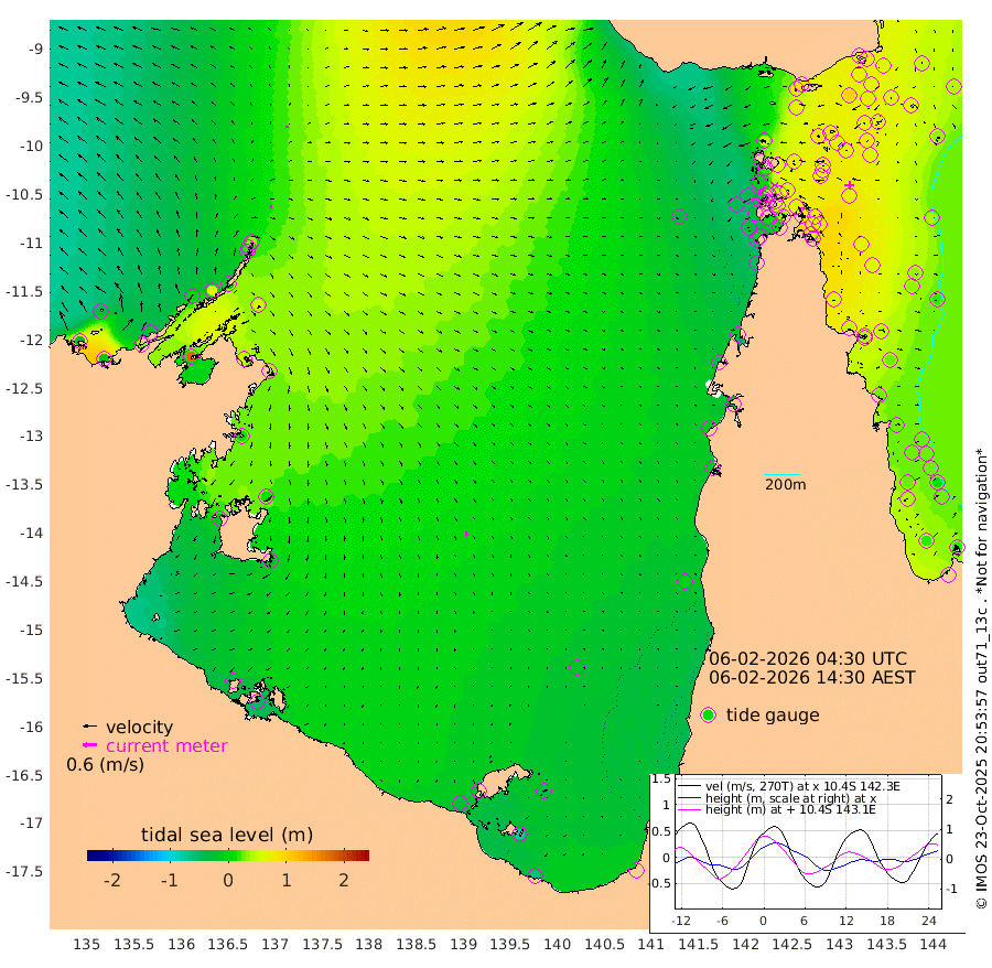 10cm/s 57T +3cm/s rms + 7cm/s -42T. ARA-GOC87 57m 20cm/s 170T +3cm/s rms + 2cm/s -2T. ARA-GOC87 60m 10cm/s 15T +2cm/s rms + 3cm/s 61T. ARA-GOC87 47m 82cm Daru 82cm Bobo Island 35cm Meer Island Barge 46cm Bramble Cay 61cm Unnamed Cay 68cm Pearce Cay 61cm Stephens Island 53cm Merrie England Shoals 72cm Mutacomal Reef 60cm Darnley Island Barge 40cm East Cay 71cm Yorke Island Barge 69cm Rennel Island 77cm Aureed Island 71cm Dungeness Reef 90cm Zagai Island 86cm Yam Island 88cm Dauan Island 90cm Saibai Island 69cm Phipi Reef 101cm Warrior Reef - West 46cm Mabuiag Island Barge 63cm Half Way Island 74cm Coconut Island 72cm Dugong Islet 76cm Poll Island 70cm Kirkcaldie Reef 69cm Suarji Island 78cm Sue Islet -7cm Hawkesbury Island 50cm Alert Patches 62cm Twin Island -5cm Badu Island 68cm St Pauls (Moa Island) 20cm Kubin (Moa Island) 42cm Ince Point 26cm Thursday Island 31cm Nardana Patches 11cm Turtle Head 5cm Round Island -22cm Goods Island -44cm Booby Island -41cm White Rocks Area -35cm Carpentaria 58cm Papou Point -27cm Bampfield Head -39cm Crab Island -29cm Red Wallis Island 6cm Packe Island 75cm Harrington Reef 2cm Herald Camp 23cm Sharp Point 7cm Red Island Point 33cm Possession Island 67cm Alpha Rock 72cm Frederick Point 78cm Wyborn Reef Light 81cm Tetley Island 42cm Triangle Reef 65cm Turtle Head Island 37cm Maclennan Cay 17cm Raine Island 61cm Mcsweeny Reef 53cm Collette Reef 33cm Shadwell Reef 54cm Hannibal Island 46cm Round Point -48cm Vrilya Point 38cm Cape Grenville 40cm Hicks Island 50cm Sir Charles Hardy Island 14cm Harvey Island 28cm Kay Reef 26cm Rocky Island 23cm Chapman Island 25cm Ham Reef 25cm Jubilee Reef 25cm Night Island 23cm Unnamed Reef No. 3 24cm Morris Island 15cm 1st 3 Mile Opening 23cm Creech Reef 38cm Fife Island 22cm Eden Reef 20cm Stanley Island 28cm Normanby River -29cm Yabooma Island -19cm Hutchison River -29cm Elcho Island -30cm North West Crocodile Island 33cm Cape Wessel -5cm Stevens Island 65cm Guluwuru Island -9cm Hopeful Bay 7cm Auster Point 20cm Two Island Bay 32cm Cadell Strait 175cm Mallison Island 46cm Melville Bay (Gove Harbour) 54cm Truant Island 41cm Cape Arnhem 12cm Cape Grey 8cm Hawk Island -27cm Milner Bay (Groote Eylandt) -25cm Cape Beatrice -43cm West Island -50cm Centre Island -25cm Mornington Island -28cm West Wellesley Islands -41cm Bountiful Island -64cm Albert River Mouth -77cm Sweers Island -57cm Karumba -15cm Nassau River Offshore -1cm Christmas Creek -20cm Archer River -8cm Boyd Point -20cm Weipa (Humbug Point) -39cm Pennefather River -25cm Cullen Point