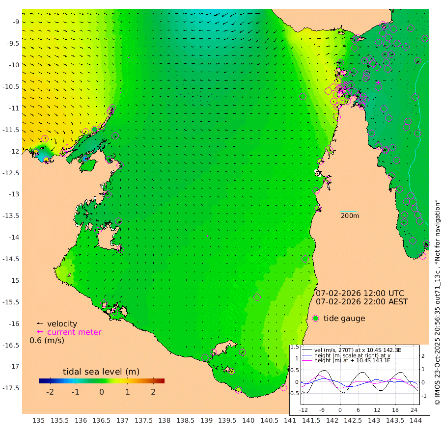 8cm/s 178T +3cm/s rms + 7cm/s -42T. ARA-GOC87 57m 13cm/s -28T +3cm/s rms + 2cm/s -2T. ARA-GOC87 60m 9cm/s 152T +2cm/s rms + 3cm/s 61T. ARA-GOC87 47m -36cm Daru -41cm Bobo Island -27cm Meer Island Barge -25cm Bramble Cay -30cm Unnamed Cay -30cm Pearce Cay -33cm Stephens Island -24cm Merrie England Shoals -30cm Mutacomal Reef -39cm Darnley Island Barge -26cm East Cay -42cm Yorke Island Barge -31cm Rennel Island -45cm Aureed Island -30cm Dungeness Reef -45cm Zagai Island -33cm Yam Island -31cm Dauan Island -44cm Saibai Island -11cm Phipi Reef -45cm Warrior Reef - West -8cm Mabuiag Island Barge -28cm Half Way Island -36cm Coconut Island -34cm Dugong Islet -30cm Poll Island -24cm Kirkcaldie Reef -34cm Suarji Island -39cm Sue Islet 55cm Hawkesbury Island -13cm Alert Patches -19cm Twin Island 40cm Badu Island -21cm St Pauls (Moa Island) 25cm Kubin (Moa Island) -4cm Ince Point 8cm Thursday Island 4cm Nardana Patches 21cm Turtle Head 35cm Round Island 44cm Goods Island 53cm Booby Island 53cm White Rocks Area 10cm Carpentaria -15cm Papou Point 36cm Bampfield Head 54cm Crab Island 47cm Red Wallis Island 34cm Packe Island -35cm Harrington Reef 41cm Herald Camp -9cm Sharp Point 31cm Red Island Point 5cm Possession Island -28cm Alpha Rock -27cm Frederick Point -34cm Wyborn Reef Light -34cm Tetley Island -27cm Triangle Reef -20cm Turtle Head Island -27cm Maclennan Cay -16cm Raine Island -34cm Mcsweeny Reef -31cm Collette Reef -24cm Shadwell Reef -32cm Hannibal Island -21cm Round Point 51cm Vrilya Point -24cm Cape Grenville -23cm Hicks Island -39cm Sir Charles Hardy Island -8cm Harvey Island -23cm Kay Reef -22cm Rocky Island -20cm Chapman Island -24cm Ham Reef -23cm Jubilee Reef -20cm Night Island -23cm Unnamed Reef No. 3 -21cm Morris Island -20cm 1st 3 Mile Opening -23cm Creech Reef -26cm Fife Island -23cm Eden Reef -20cm Stanley Island -20cm Normanby River 98cm Yabooma Island 90cm Hutchison River 85cm Elcho Island 92cm North West Crocodile Island 5cm Cape Wessel 66cm Stevens Island -34cm Guluwuru Island 63cm Hopeful Bay 37cm Auster Point 37cm Two Island Bay 51cm Cadell Strait -129cm Mallison Island -14cm Melville Bay (Gove Harbour) -19cm Truant Island -24cm Cape Arnhem -14cm Cape Grey -5cm Hawk Island 2cm Milner Bay (Groote Eylandt) 2cm Cape Beatrice -1cm West Island 3cm Centre Island 7cm Mornington Island 2cm West Wellesley Islands 16cm Bountiful Island 41cm Albert River Mouth 46cm Sweers Island 52cm Karumba 19cm Nassau River Offshore 12cm Christmas Creek 25cm Archer River 10cm Boyd Point 24cm Weipa (Humbug Point) 41cm Pennefather River 33cm Cullen Point