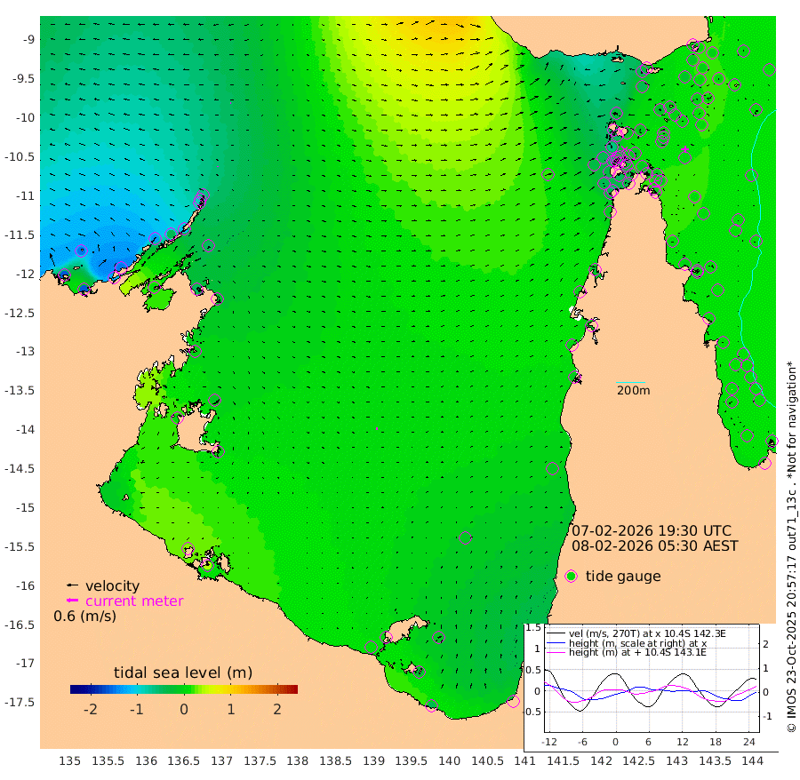 4cm/s -26T +3cm/s rms + 7cm/s -42T. ARA-GOC87 57m 9cm/s 103T +3cm/s rms + 2cm/s -2T. ARA-GOC87 60m 5cm/s -84T +2cm/s rms + 3cm/s 61T. ARA-GOC87 47m -5cm Daru 4cm Bobo Island 13cm Meer Island Barge 2cm Bramble Cay -1cm Unnamed Cay 2cm Pearce Cay 7cm Stephens Island 0cm Merrie England Shoals -9cm Mutacomal Reef 15cm Darnley Island Barge 8cm East Cay 11cm Yorke Island Barge -3cm Rennel Island 12cm Aureed Island -6cm Dungeness Reef -8cm Zagai Island -21cm Yam Island -40cm Dauan Island -22cm Saibai Island -39cm Phipi Reef -19cm Warrior Reef - West -30cm Mabuiag Island Barge 3cm Half Way Island 0cm Coconut Island 1cm Dugong Islet -10cm Poll Island -8cm Kirkcaldie Reef -8cm Suarji Island -1cm Sue Islet -63cm Hawkesbury Island -14cm Alert Patches -14cm Twin Island -52cm Badu Island -17cm St Pauls (Moa Island) -49cm Kubin (Moa Island) -24cm Ince Point -26cm Thursday Island -27cm Nardana Patches -37cm Turtle Head -52cm Round Island -45cm Goods Island -36cm Booby Island -43cm White Rocks Area 19cm Carpentaria -17cm Papou Point -35cm Bampfield Head -32cm Crab Island -38cm Red Wallis Island -47cm Packe Island 5cm Harrington Reef -56cm Herald Camp -1cm Sharp Point -33cm Red Island Point -23cm Possession Island -12cm Alpha Rock -8cm Frederick Point -9cm Wyborn Reef Light -11cm Tetley Island 6cm Triangle Reef -3cm Turtle Head Island 11cm Maclennan Cay 8cm Raine Island 6cm Mcsweeny Reef 7cm Collette Reef 8cm Shadwell Reef 8cm Hannibal Island -1cm Round Point -10cm Vrilya Point 8cm Cape Grenville 5cm Hicks Island 9cm Sir Charles Hardy Island 3cm Harvey Island 11cm Kay Reef 9cm Rocky Island 8cm Chapman Island 12cm Ham Reef 12cm Jubilee Reef 10cm Night Island 13cm Unnamed Reef No. 3 11cm Morris Island 13cm 1st 3 Mile Opening 15cm Creech Reef 8cm Fife Island 14cm Eden Reef 13cm Stanley Island 9cm Normanby River -158cm Yabooma Island -164cm Hutchison River -143cm Elcho Island -146cm North West Crocodile Island -65cm Cape Wessel -128cm Stevens Island -38cm Guluwuru Island -115cm Hopeful Bay -87cm Auster Point -93cm Two Island Bay -124cm Cadell Strait 12cm Mallison Island -47cm Melville Bay (Gove Harbour) -47cm Truant Island -21cm Cape Arnhem -7cm Cape Grey -11cm Hawk Island 7cm Milner Bay (Groote Eylandt) 7cm Cape Beatrice 35cm West Island 39cm Centre Island 7cm Mornington Island 10cm West Wellesley Islands -12cm Bountiful Island -38cm Albert River Mouth -23cm Sweers Island -41cm Karumba -10cm Nassau River Offshore -9cm Christmas Creek -9cm Archer River -3cm Boyd Point -17cm Weipa (Humbug Point) -1cm Pennefather River -15cm Cullen Point